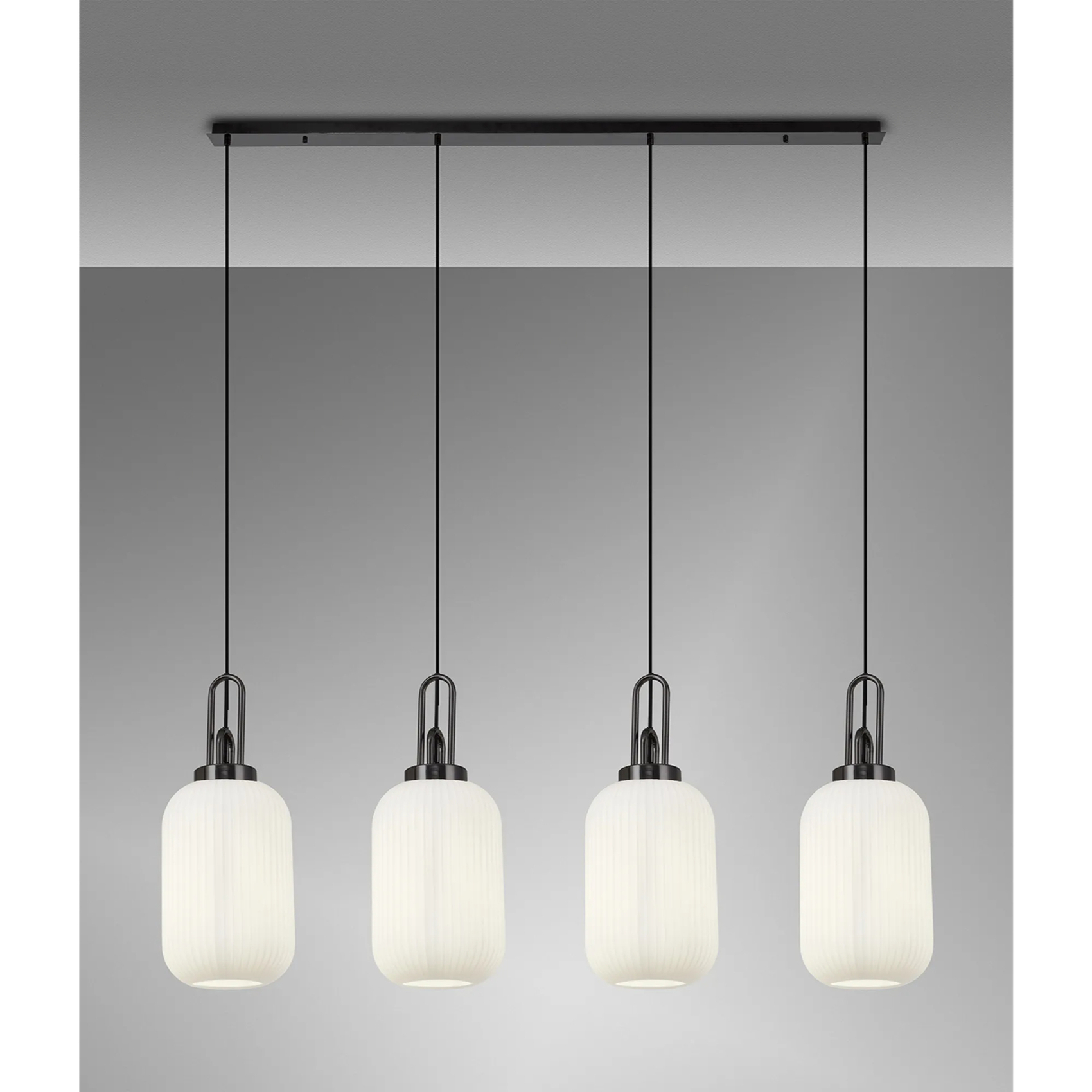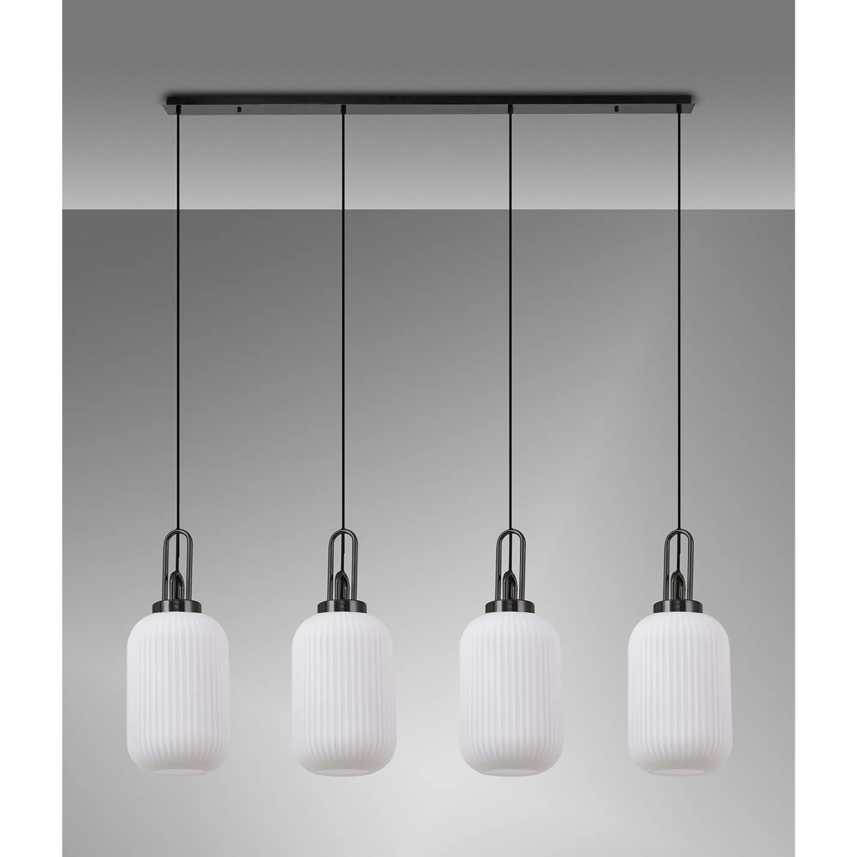 Idolite Camille Linear 4 Light Pendant With 20cm Tubular Ribbed Glass, Black Chrome/Matt Black Opal | IDOK9270