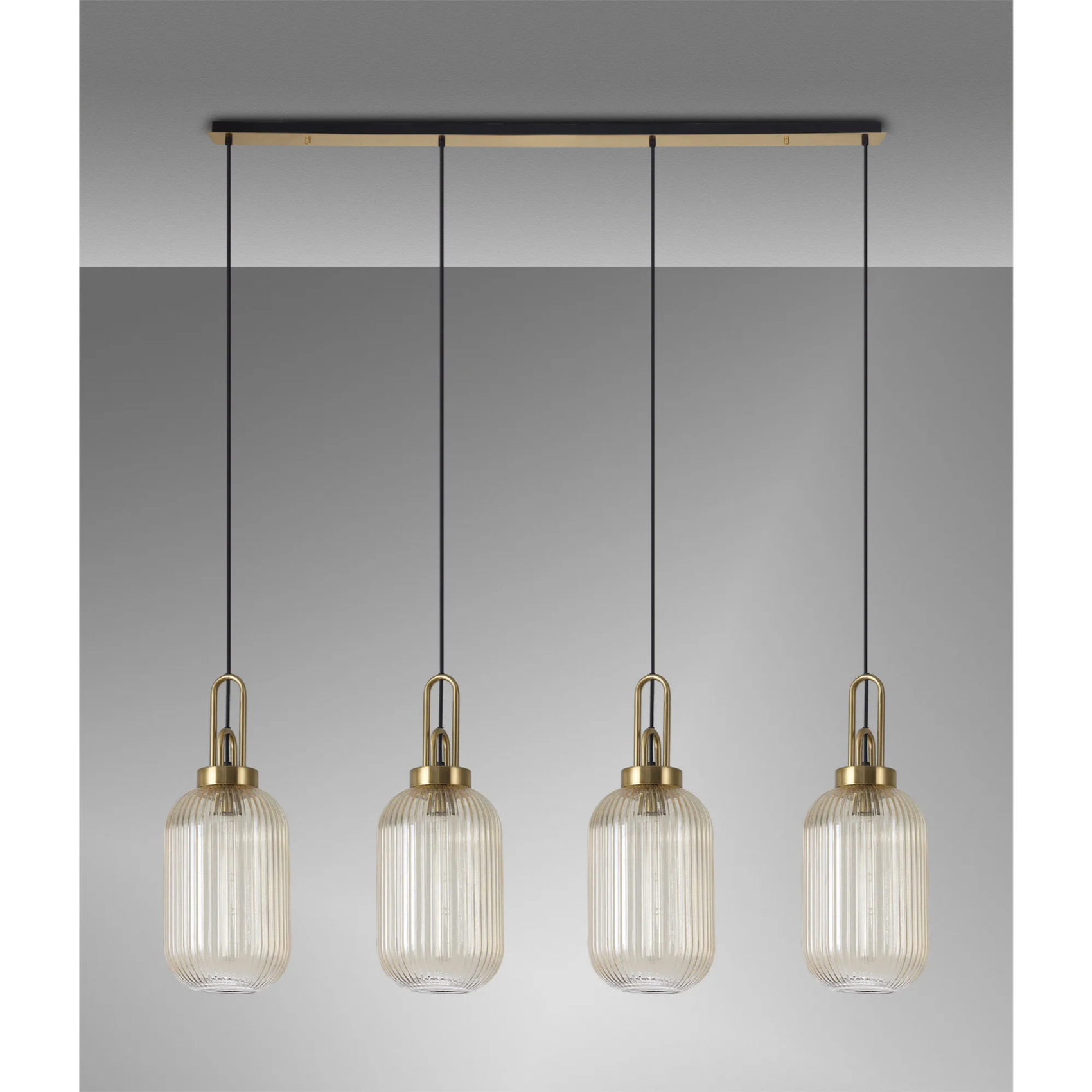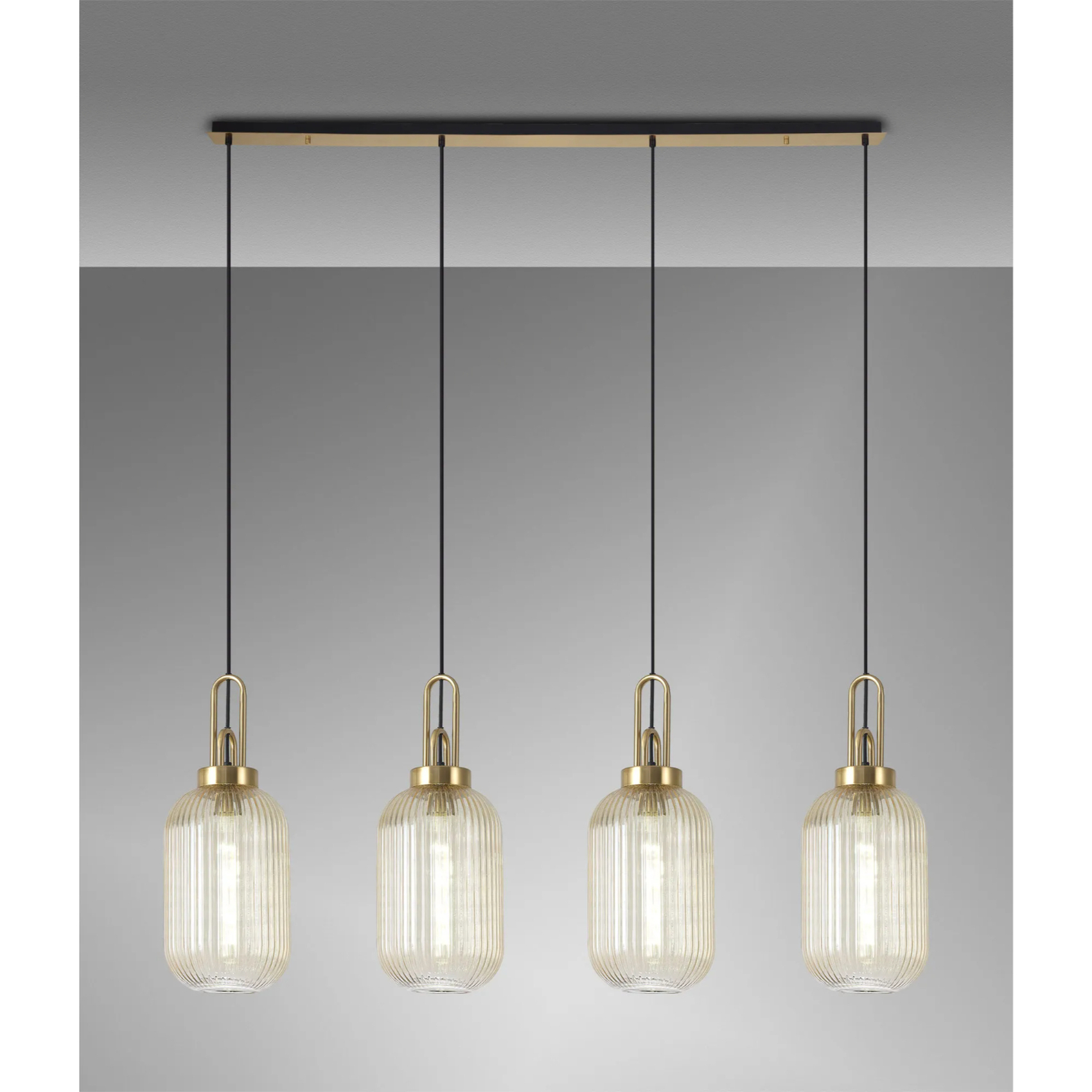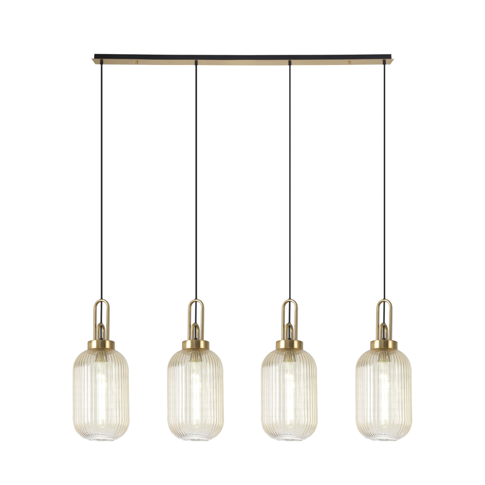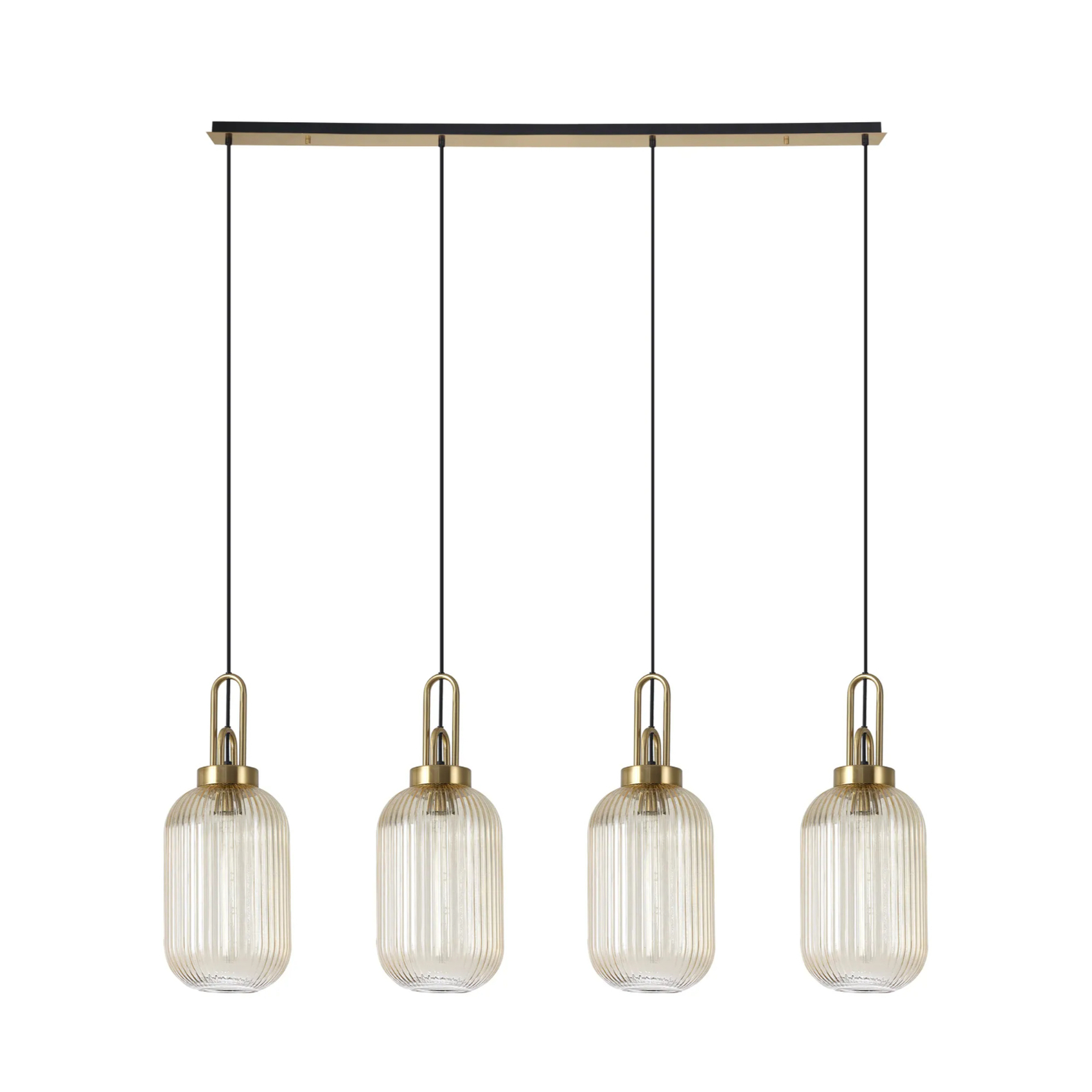 Idolite Camille Linear 4 Light Pendant With 20cm Tubular Ribbed Glass, Brass Gold/Matt Black Champagne | IDOK4970