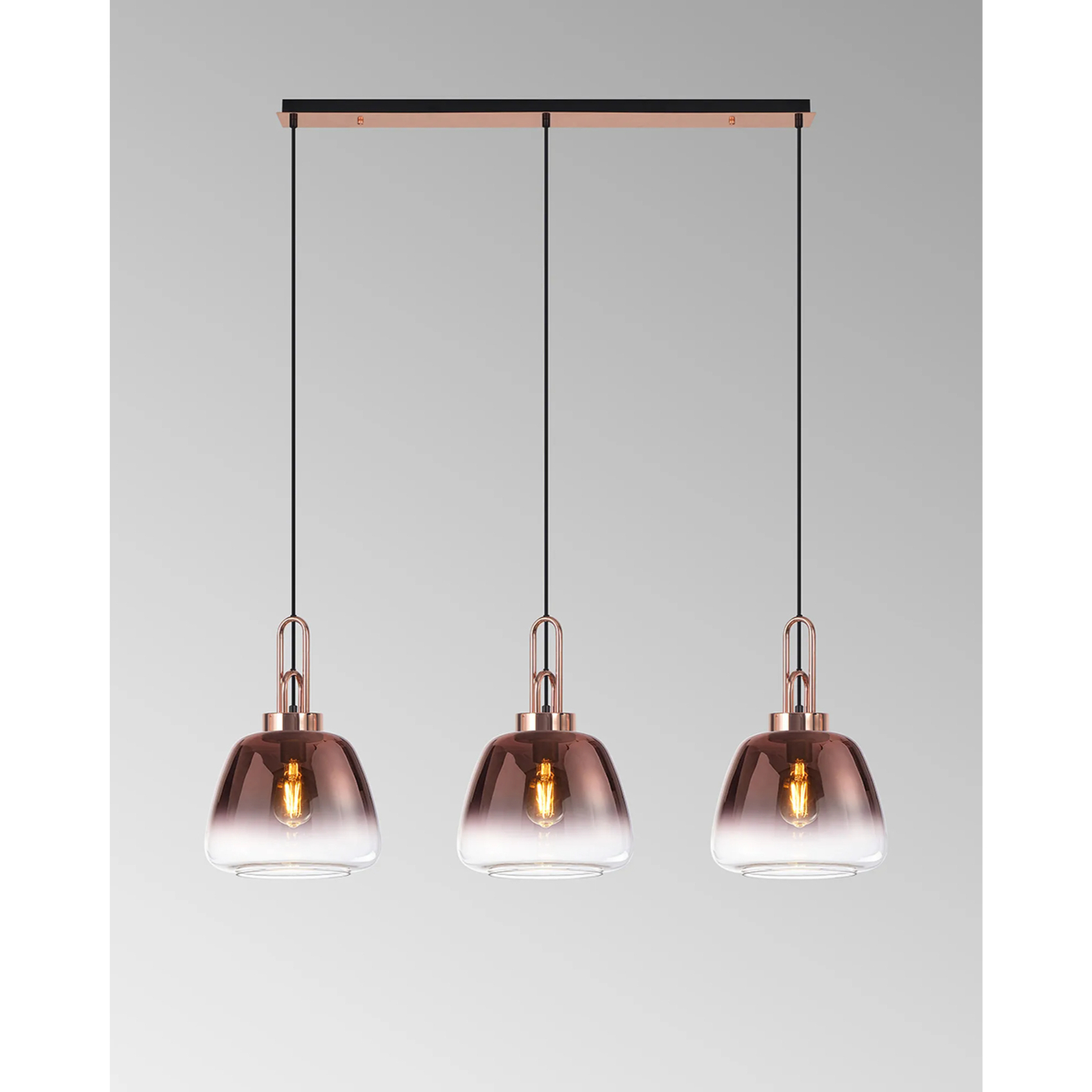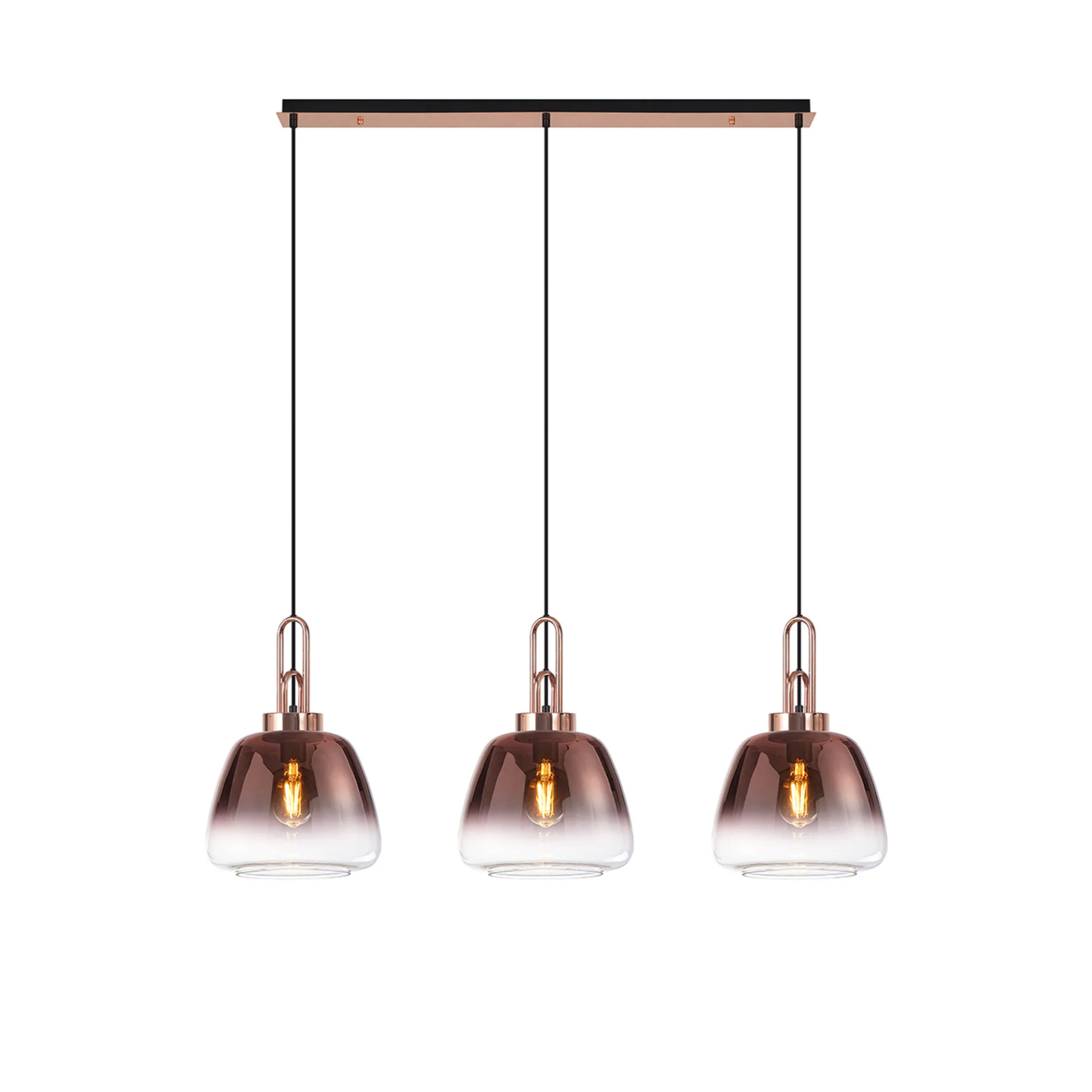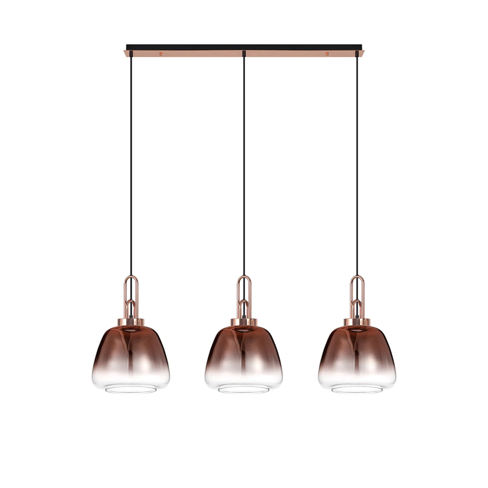 Idolite Camille Linear Pendant 3 x E27 With 28cm Trapezium Glass, Copper/Clear/Matt Black | IDOK4551