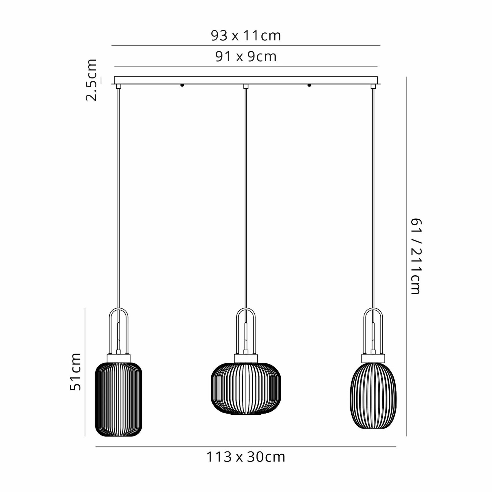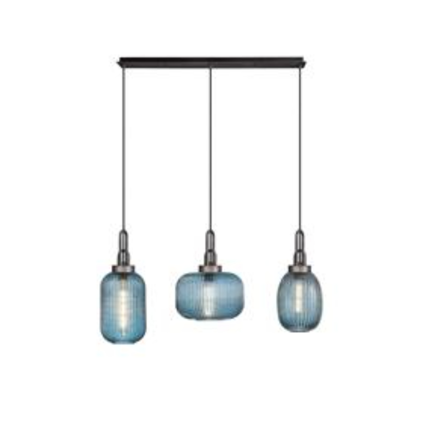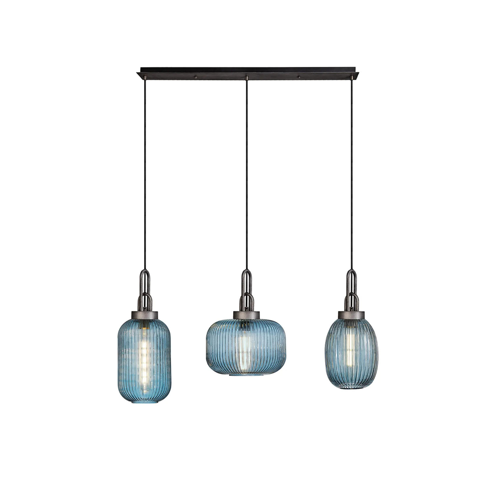 Idolite Camille Linear Pendant 3 x E27 With Various Glasses, Aged Pewter/Petrol Blue/Matt Black | IDOK5551