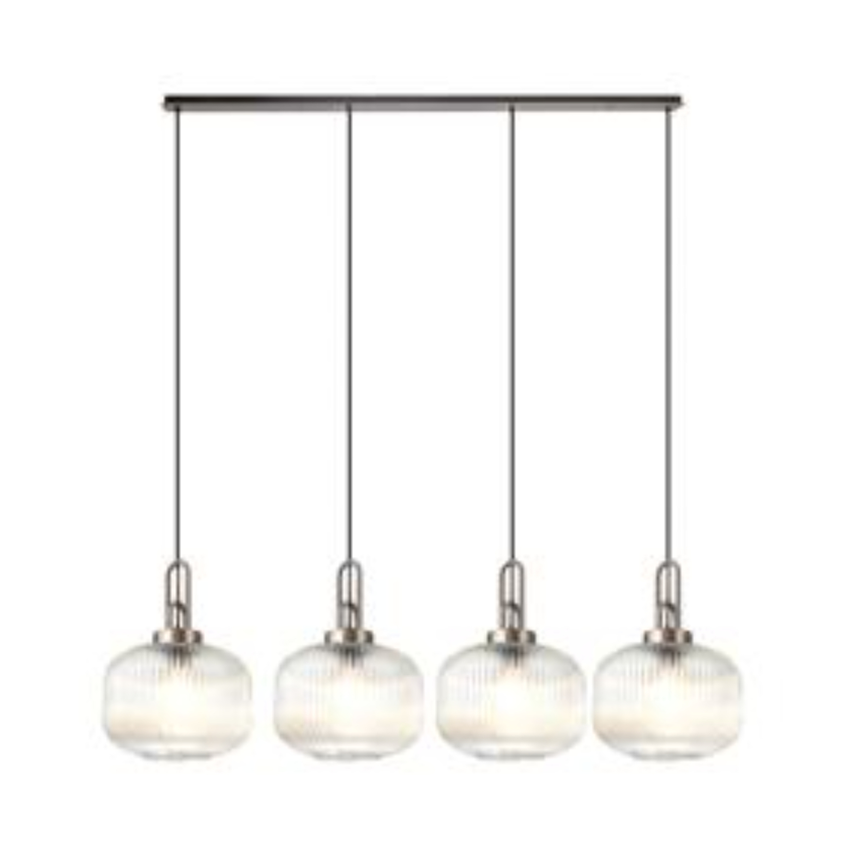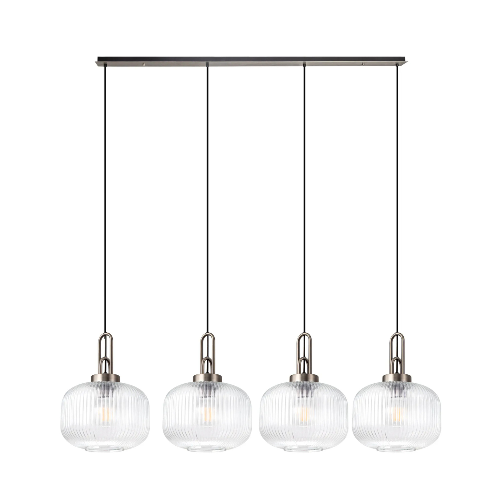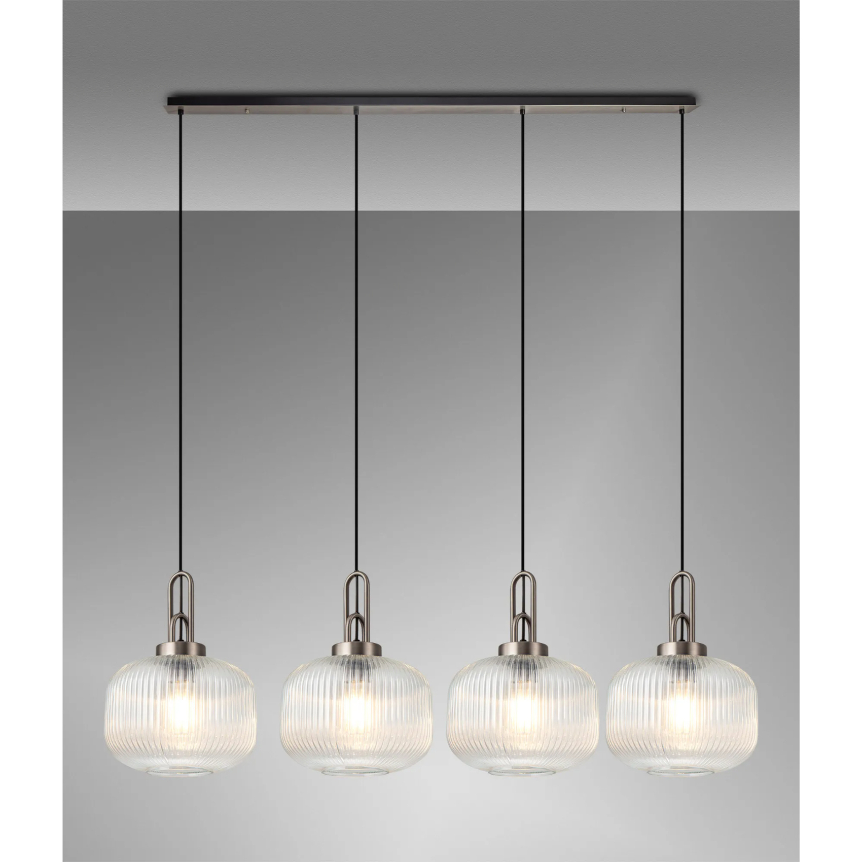 Idolite Camille Linear Pendant, 4 x E27, Antique Silver/Matt Black With 30cm Pumpkin Shaped Ribbed Clear Glass | IDOK5760