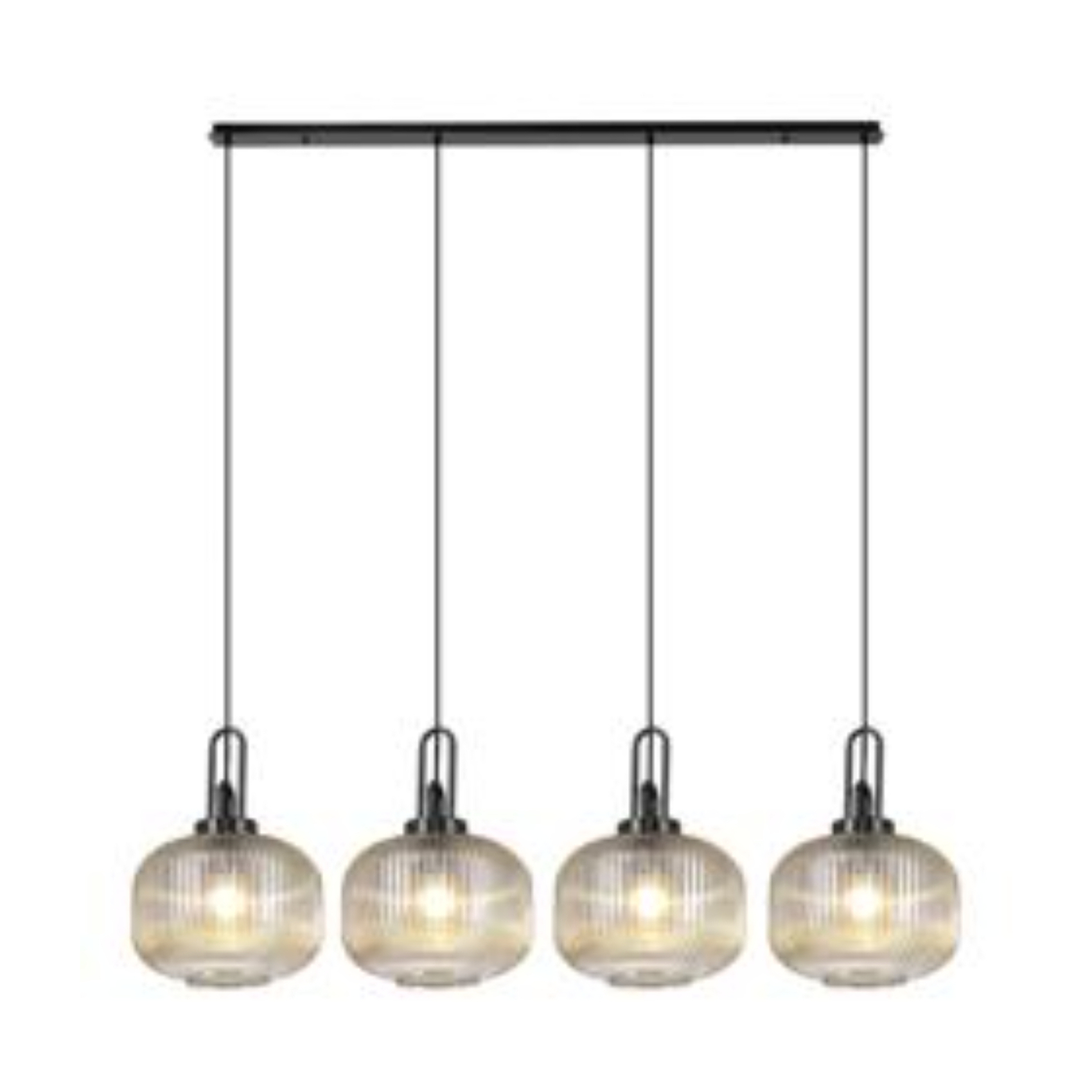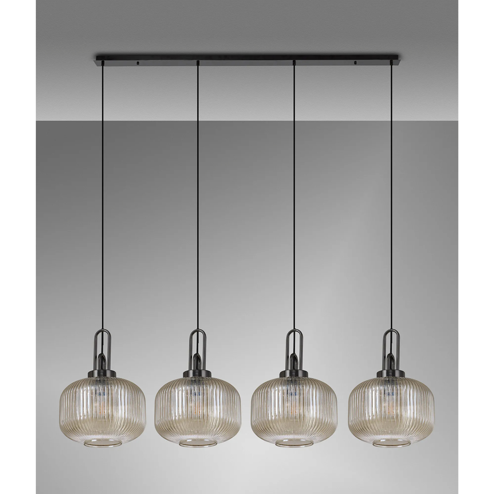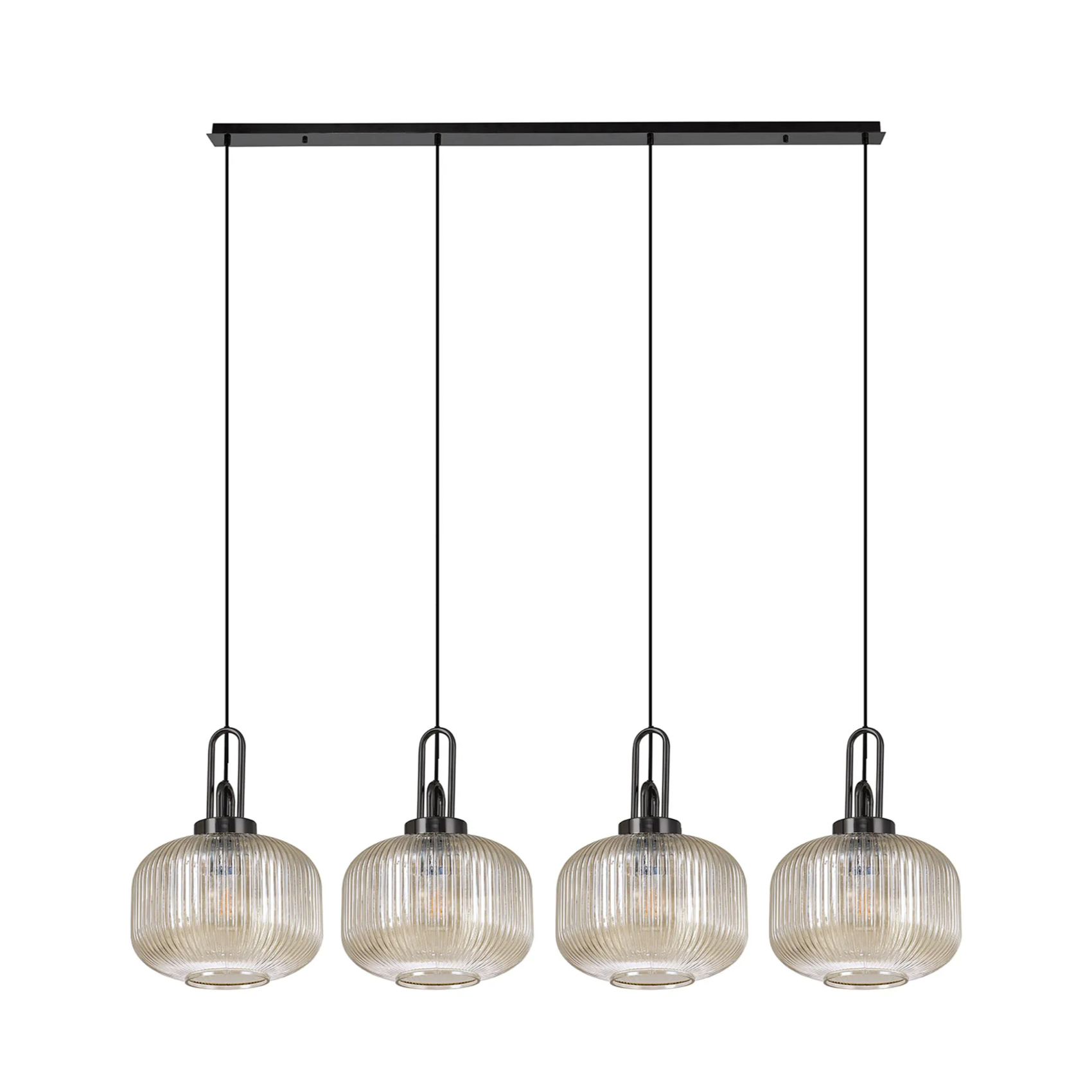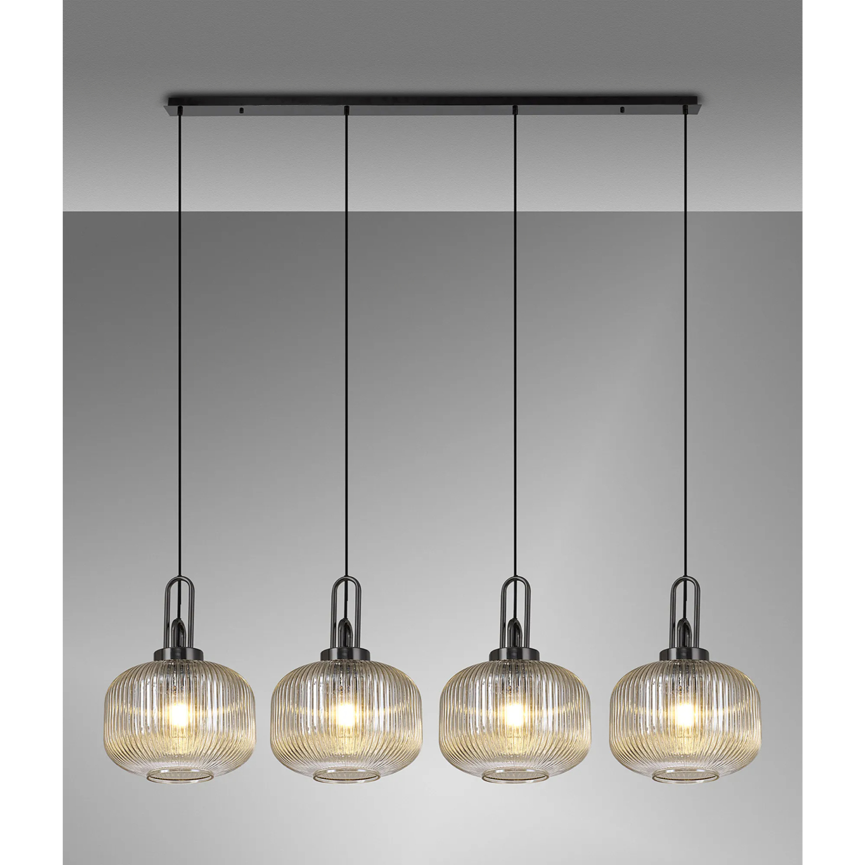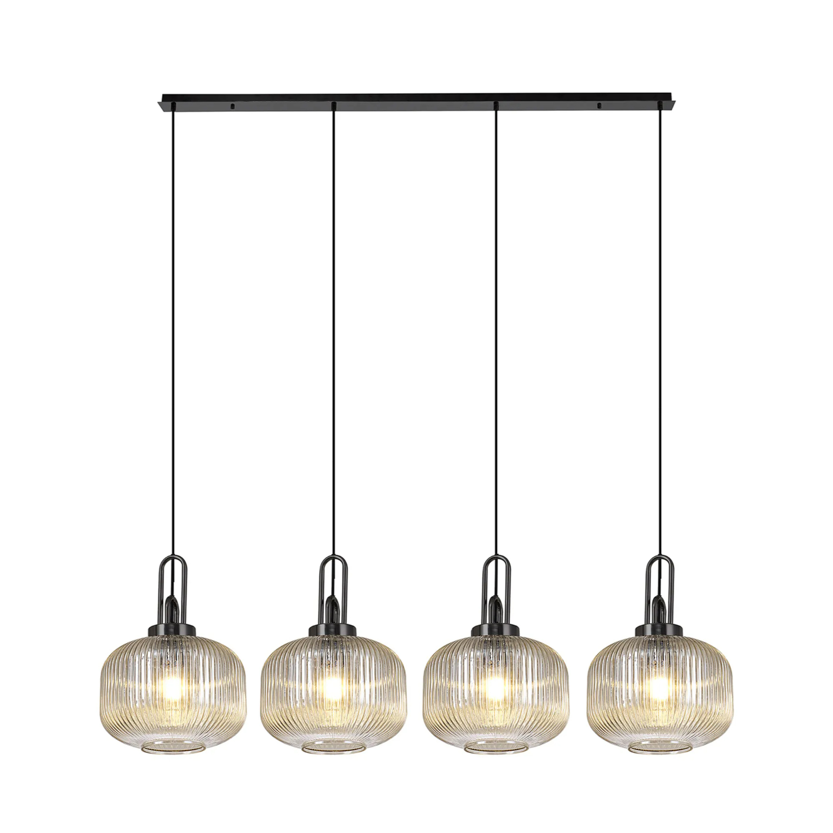 Idolite Camille Linear Pendant, 4 x E27, Black Chrome/Matt Black With 30cm Pumpkin Shaped Ribbed Champagne Glass | IDOK8070