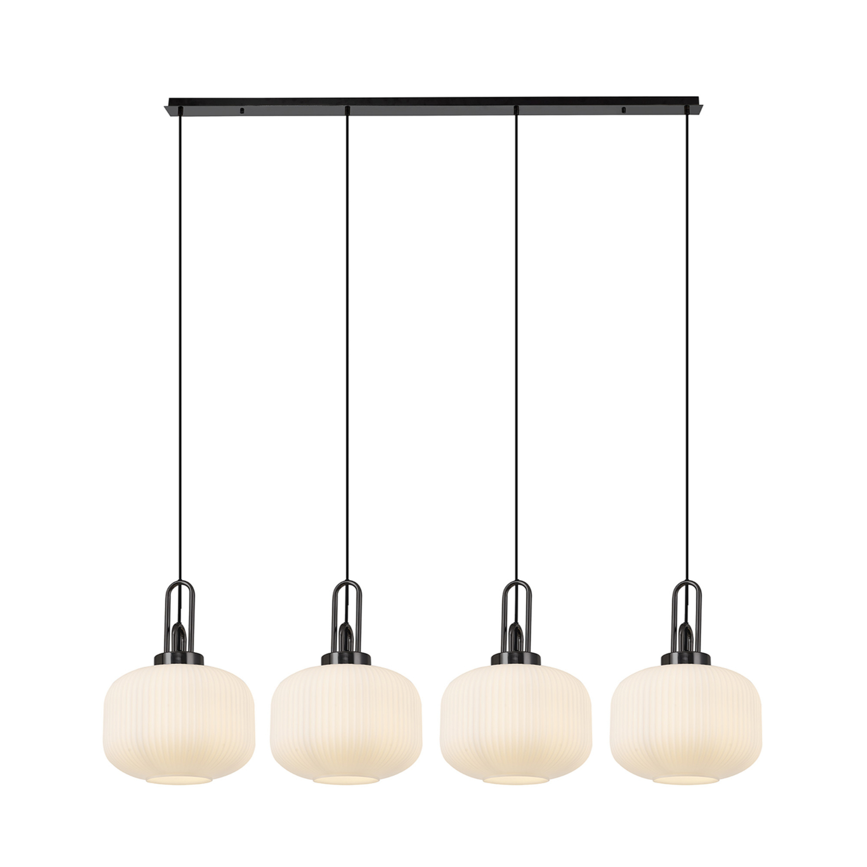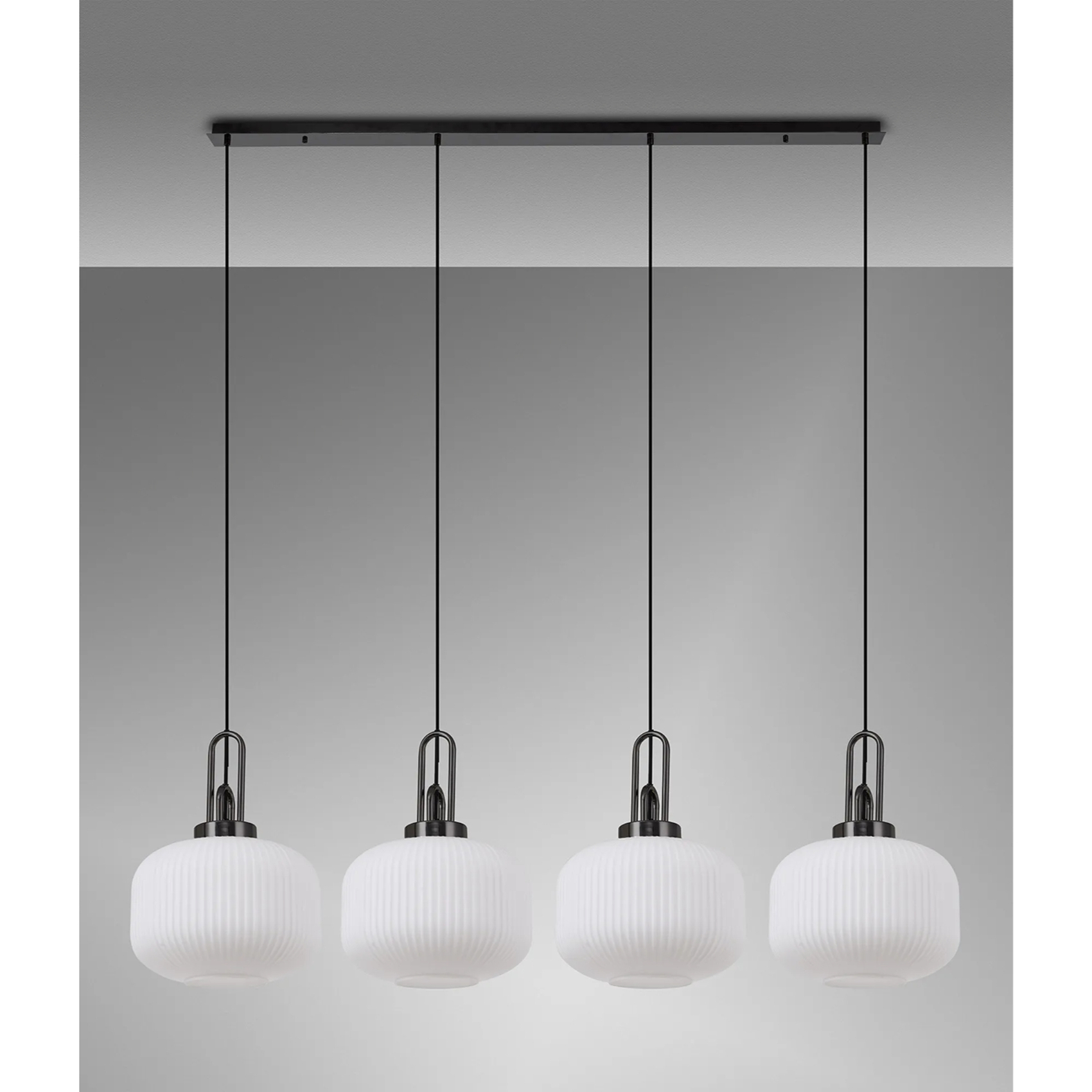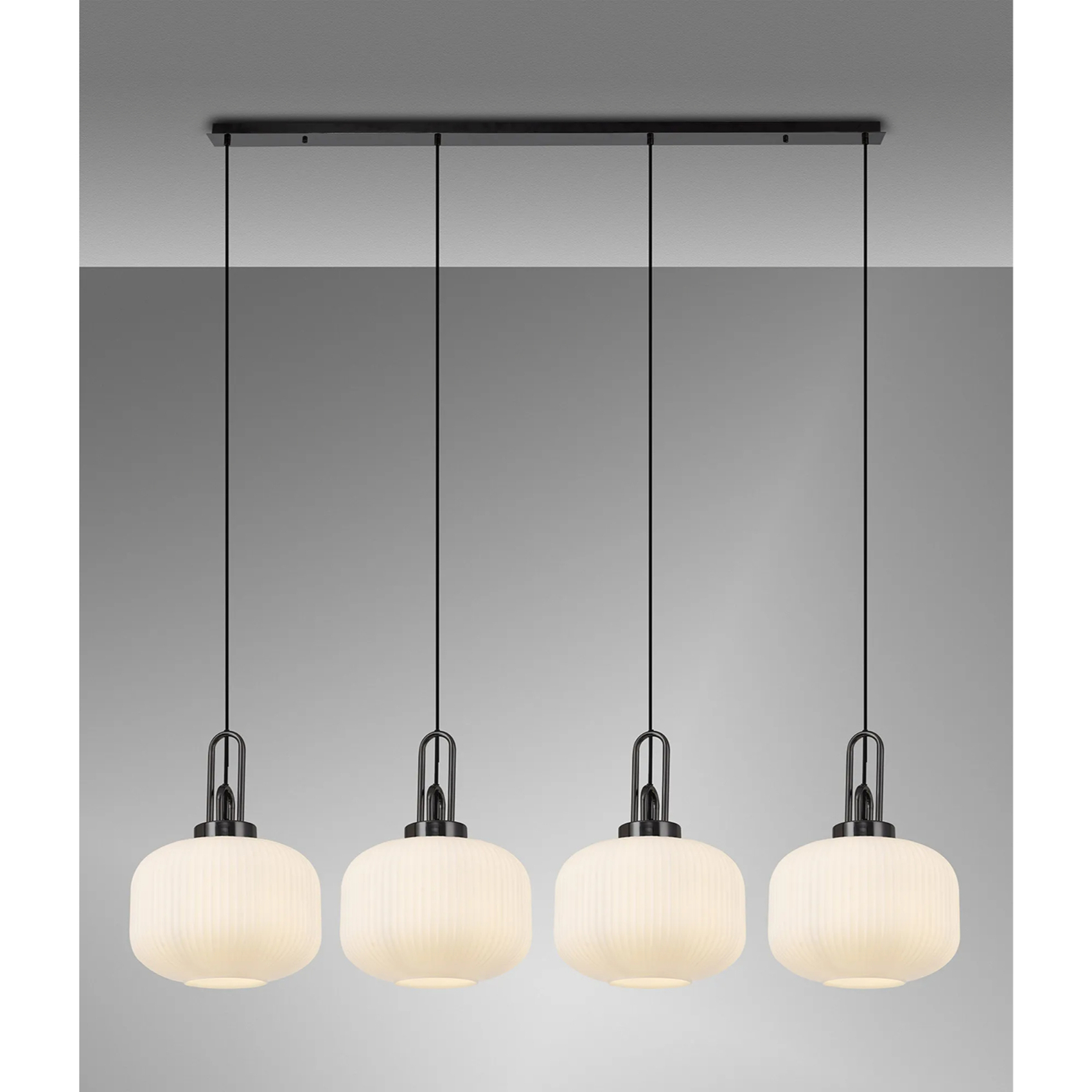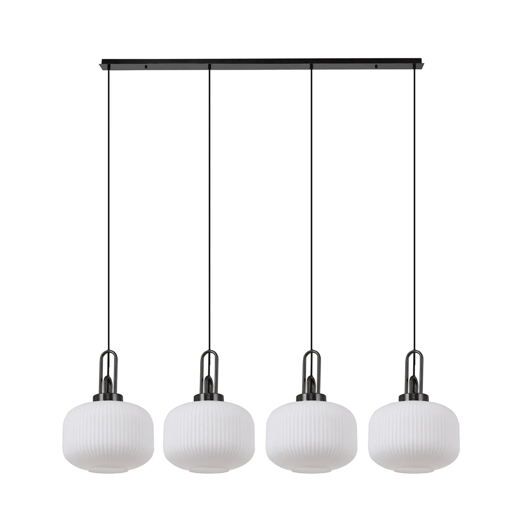 Idolite Camille Linear Pendant, 4 x E27, Black Chrome/Matt Black With 30cm Pumpkin Shaped Ribbed Opal Glass | IDOK8560