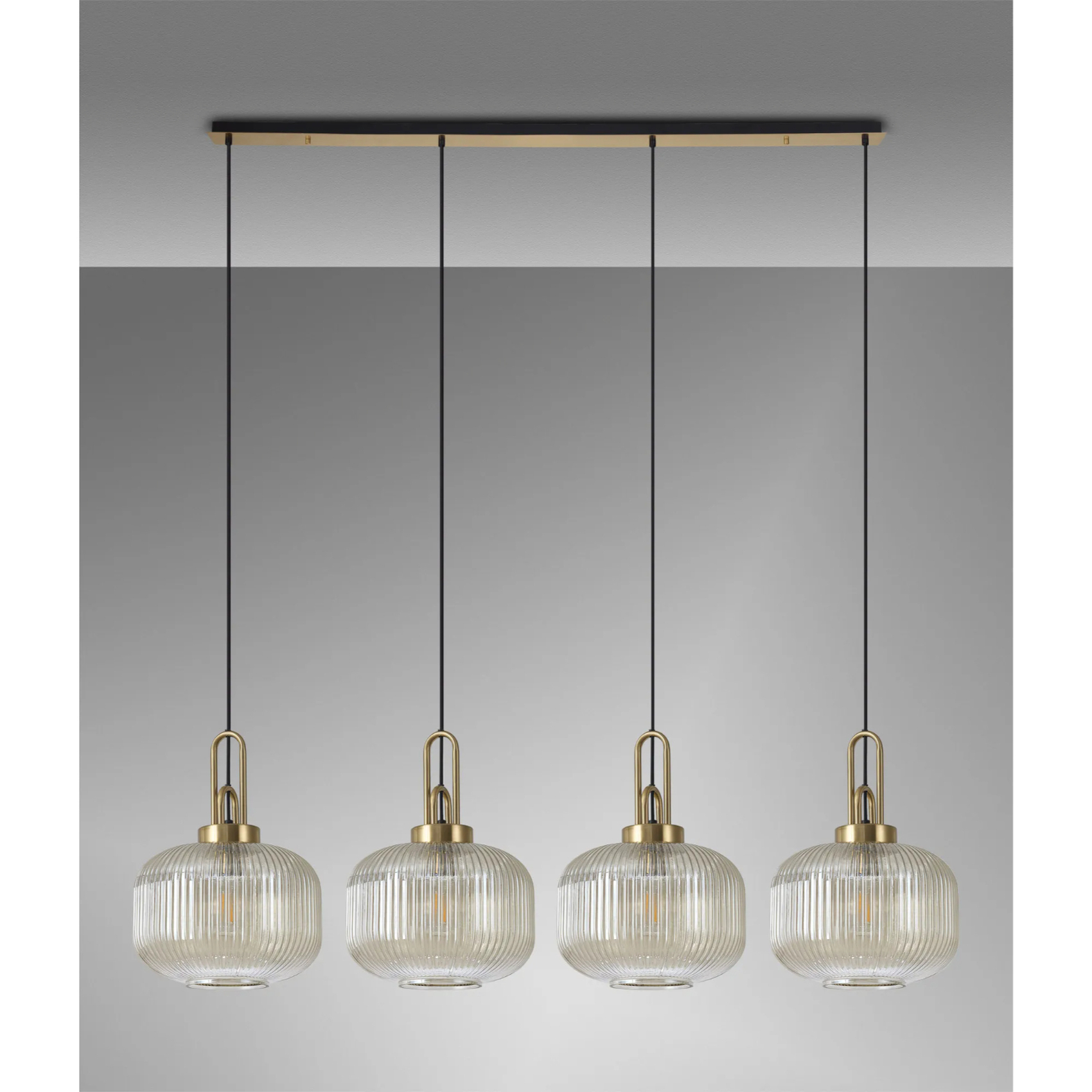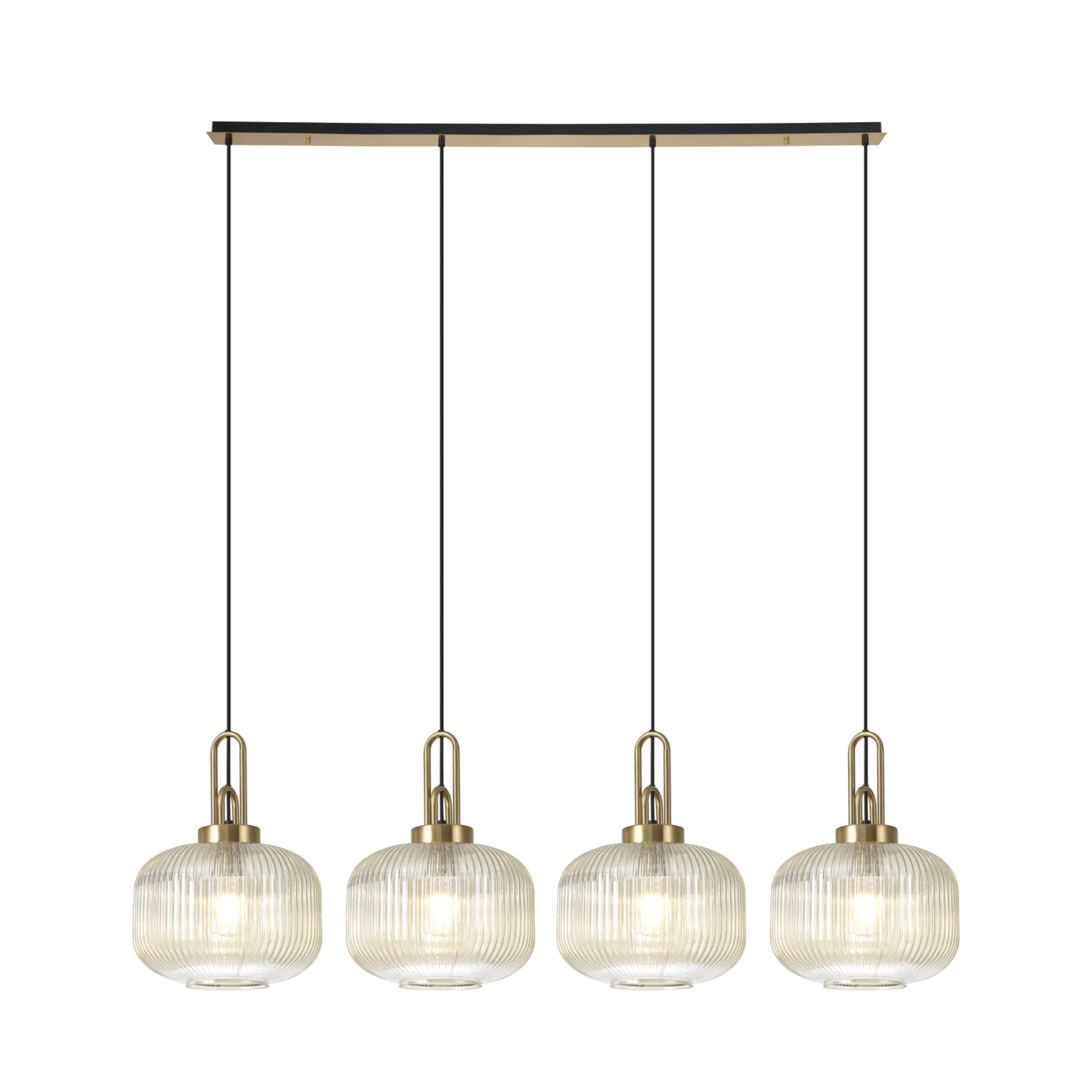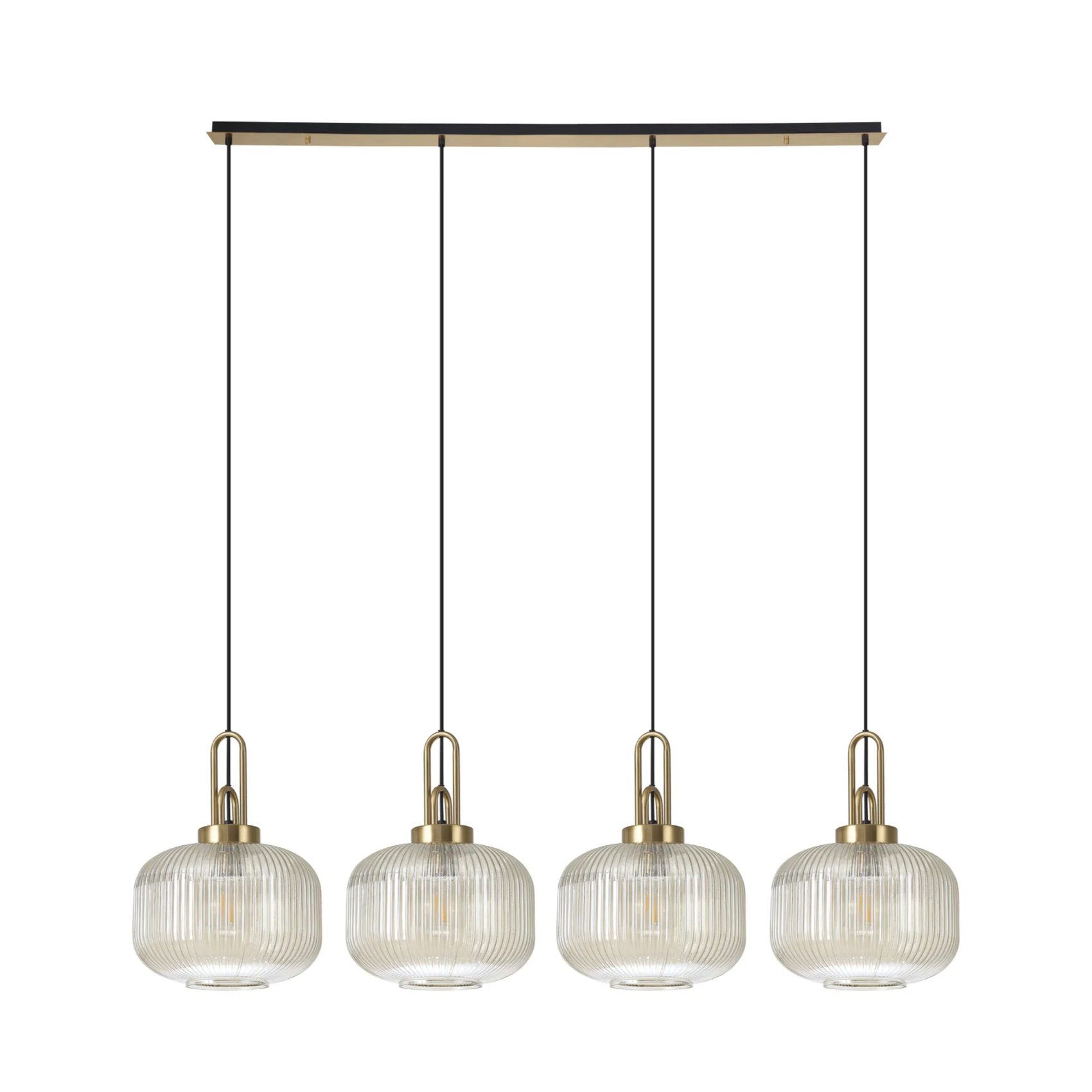Idolite Camille Linear Pendant, 4 x E27, Brass Gold/Matt Black With 30cm Pumpkin Shaped Ribbed Champagne Glass | IDOK1170