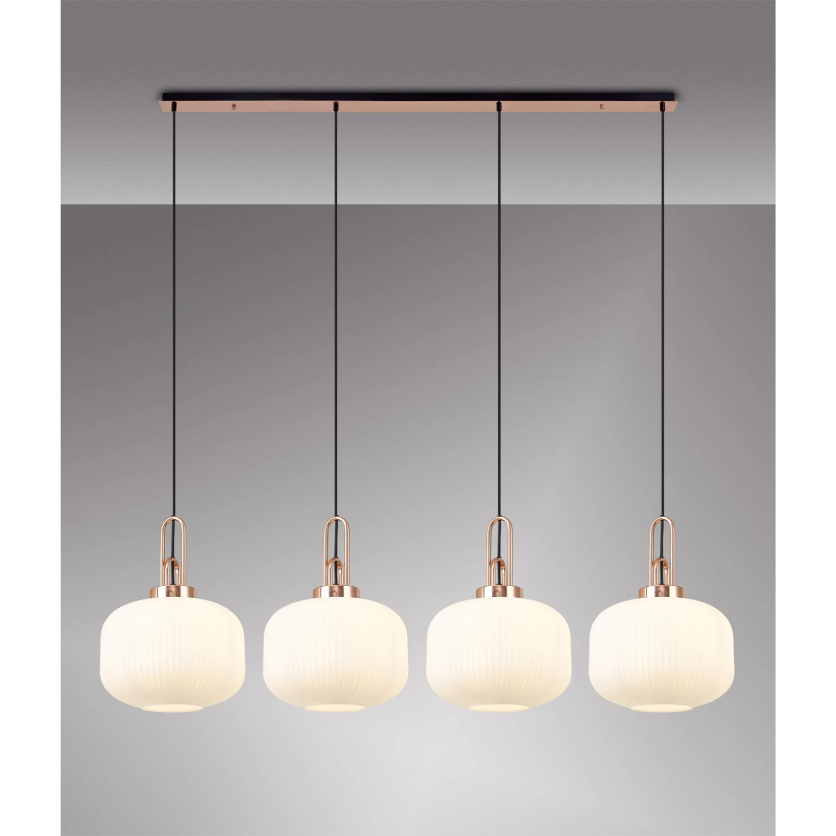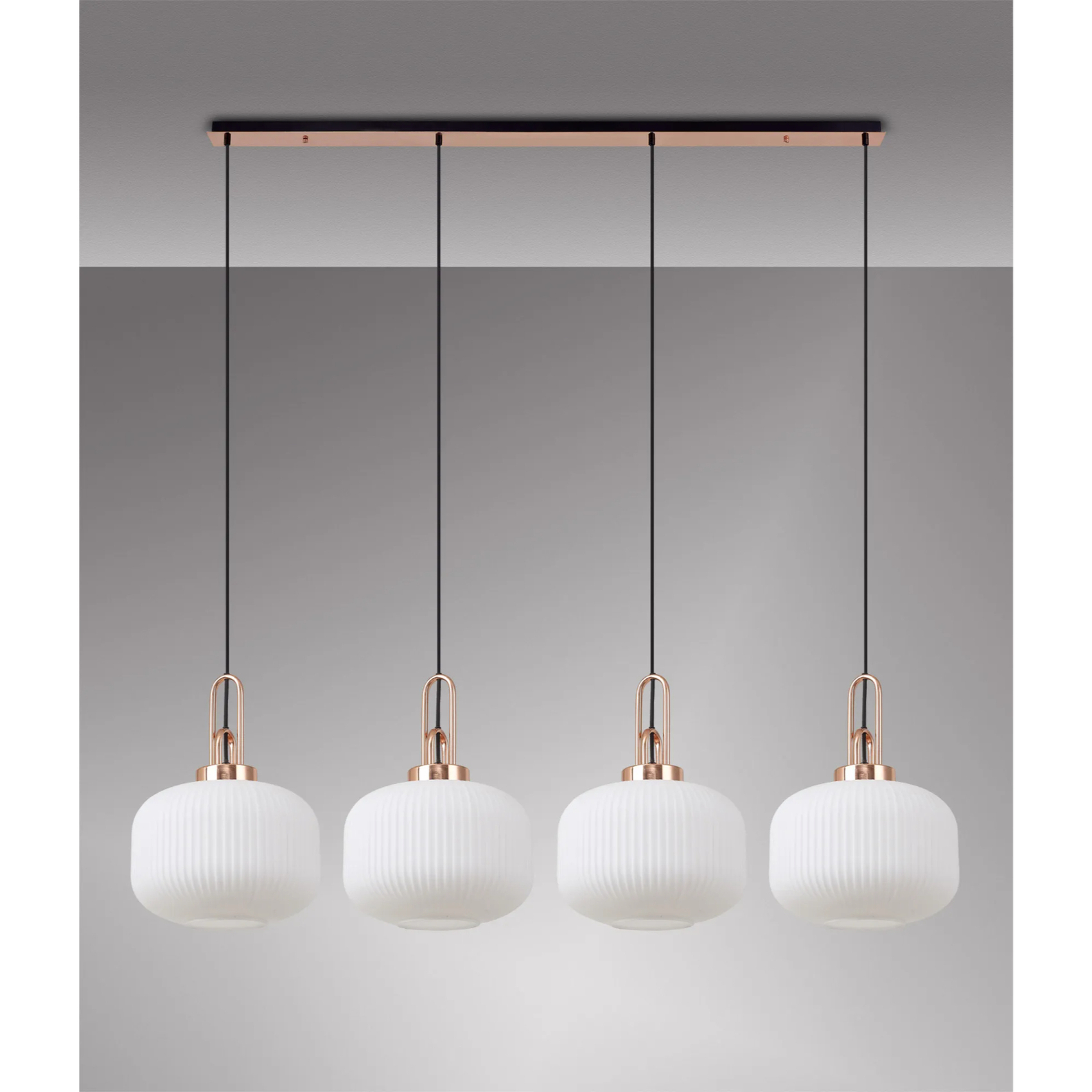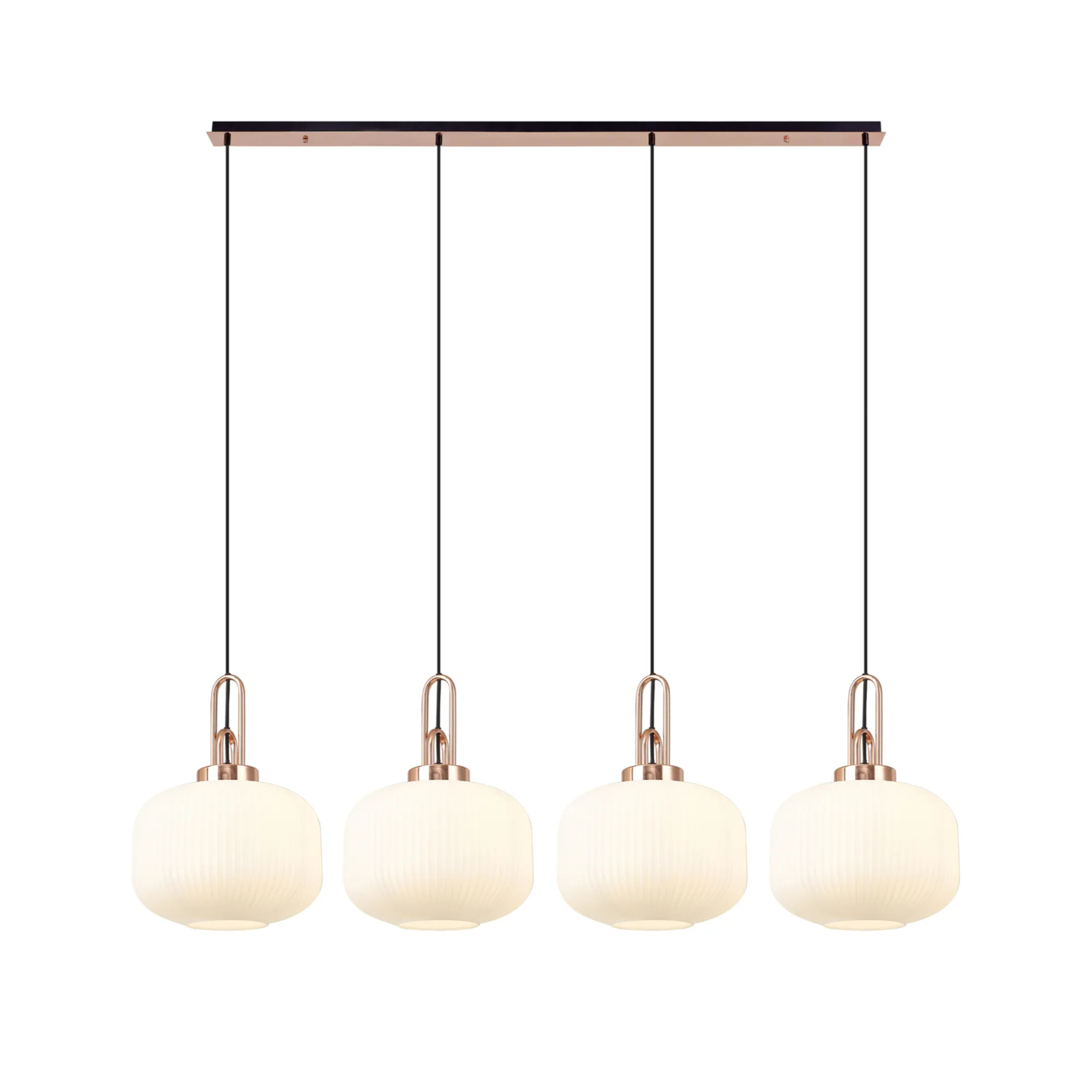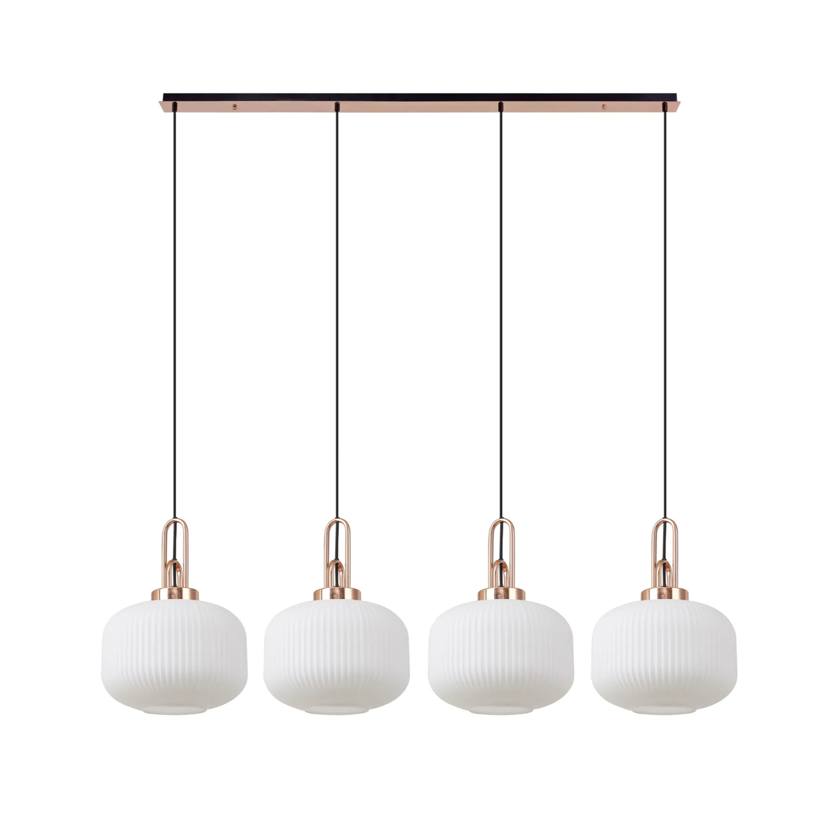 Idolite Camille Linear Pendant, 4 x E27, Copper/Matt Black With 30cm Pumpkin Shaped Ribbed Opal Glass | IDOK4660
