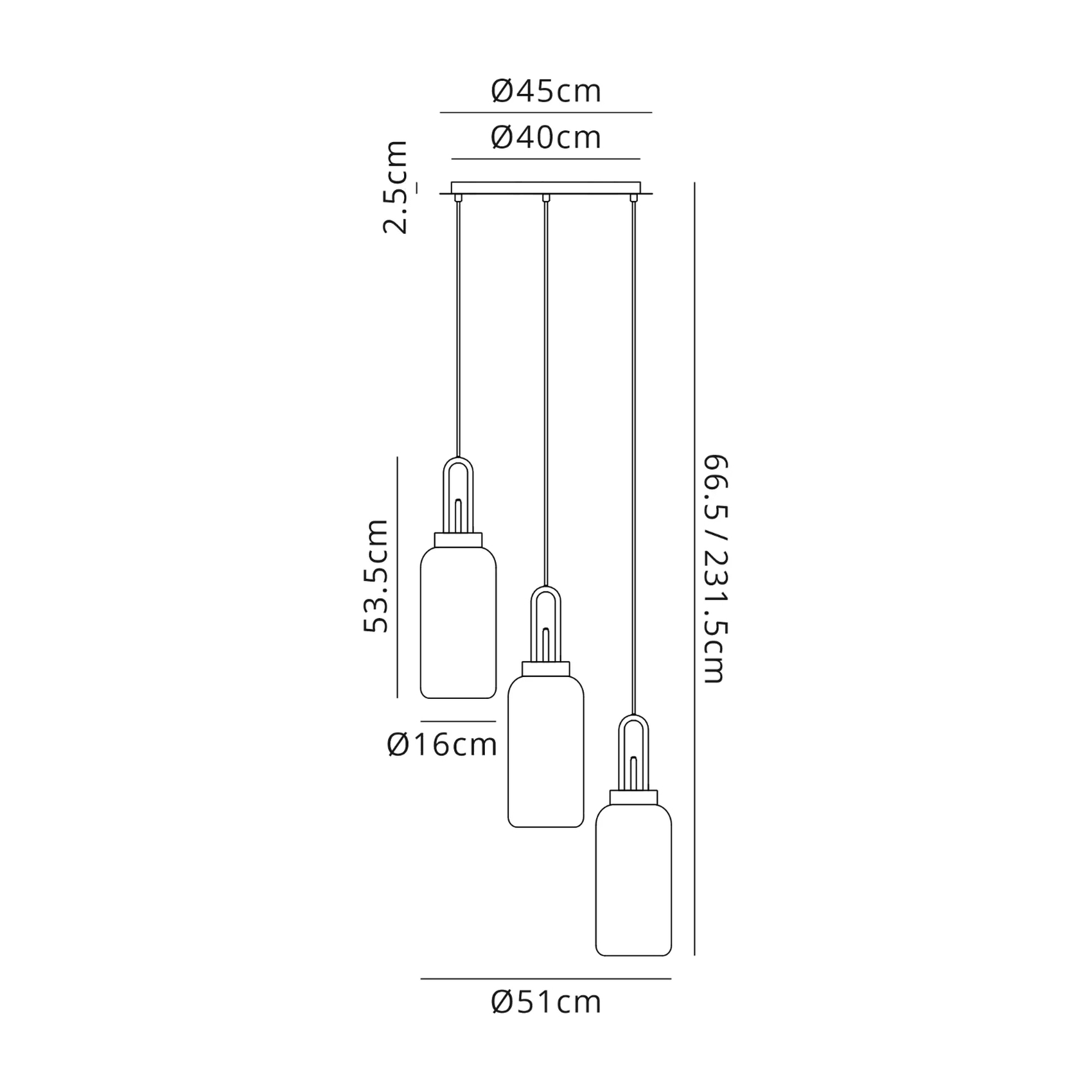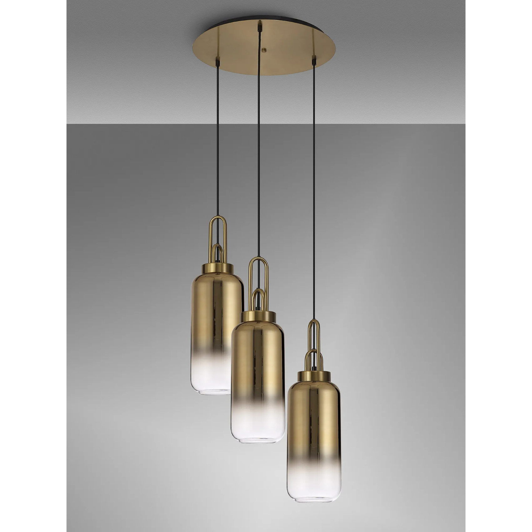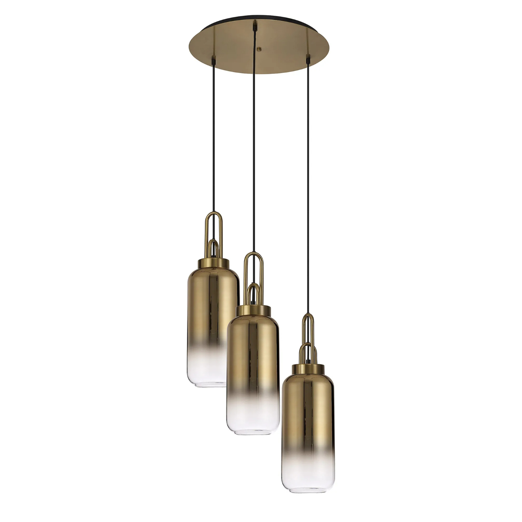 Idolite Camille Round 3 Light Pendant With 16cm Cylinder Glass, Brass Gold/Matt Black Brass Gold/Clear | IDOK1460