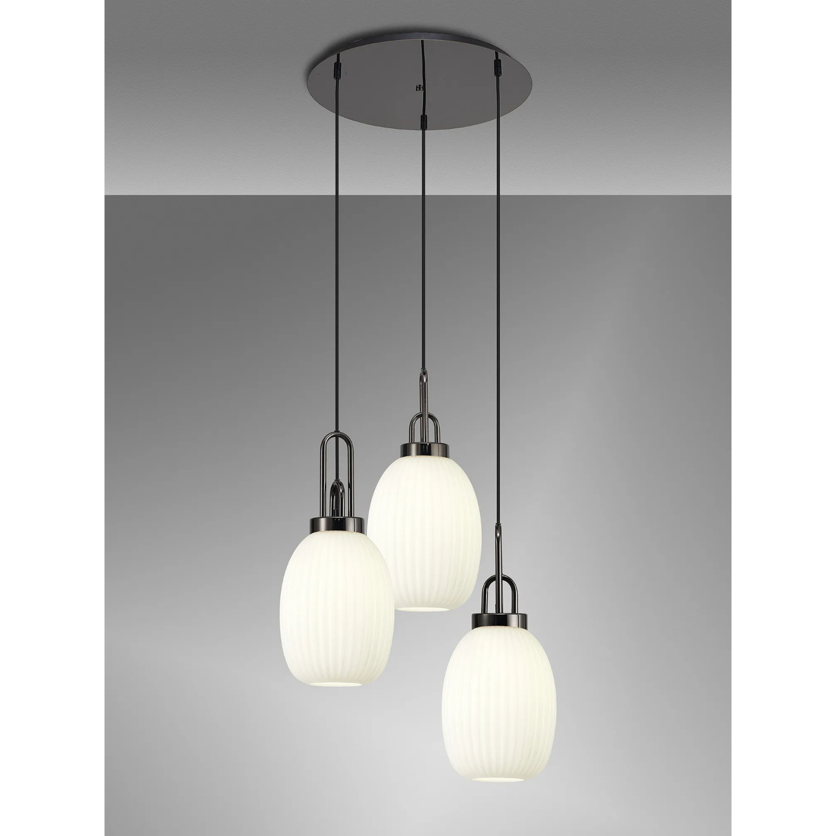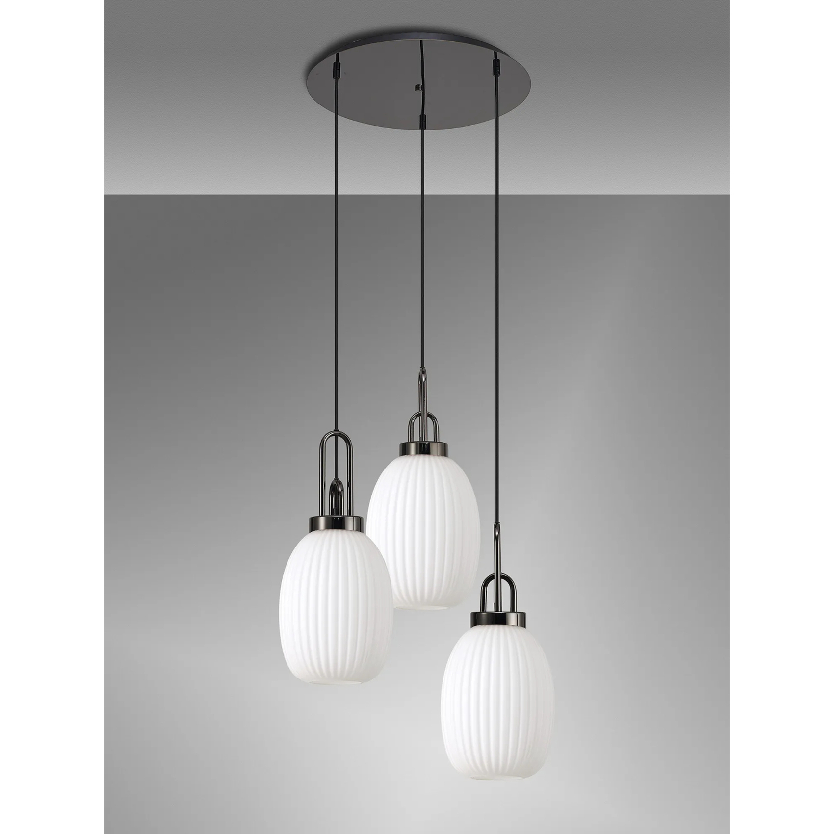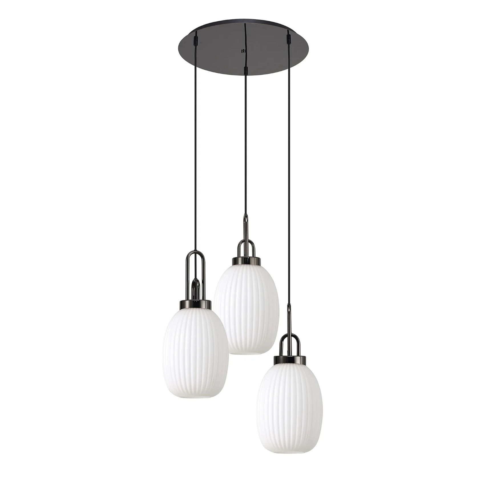 Idolite Camille Round 3 Light Pendant With 20cm Almond Ribbed Glass, Black Chrome/Matt Black Opal | IDOK6780