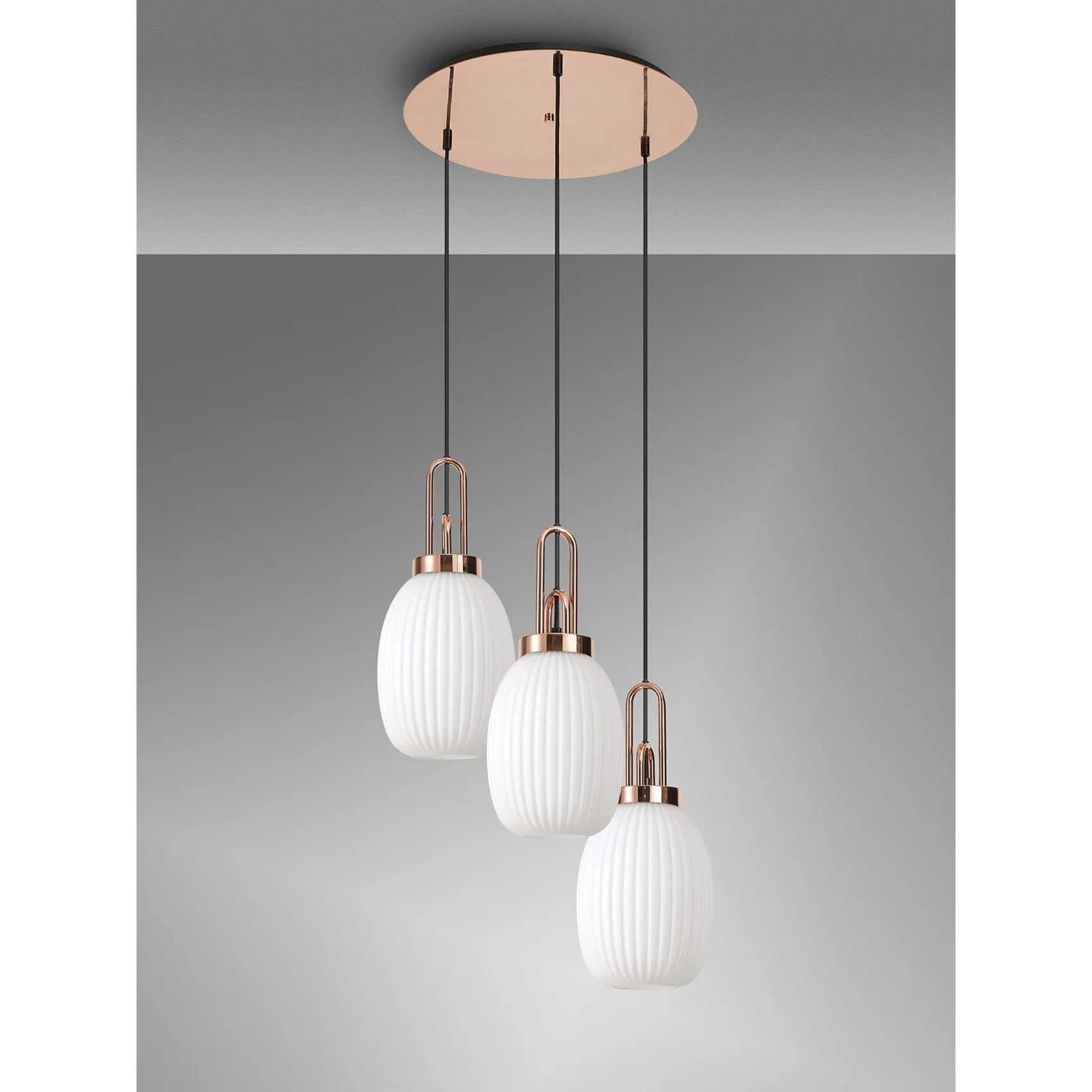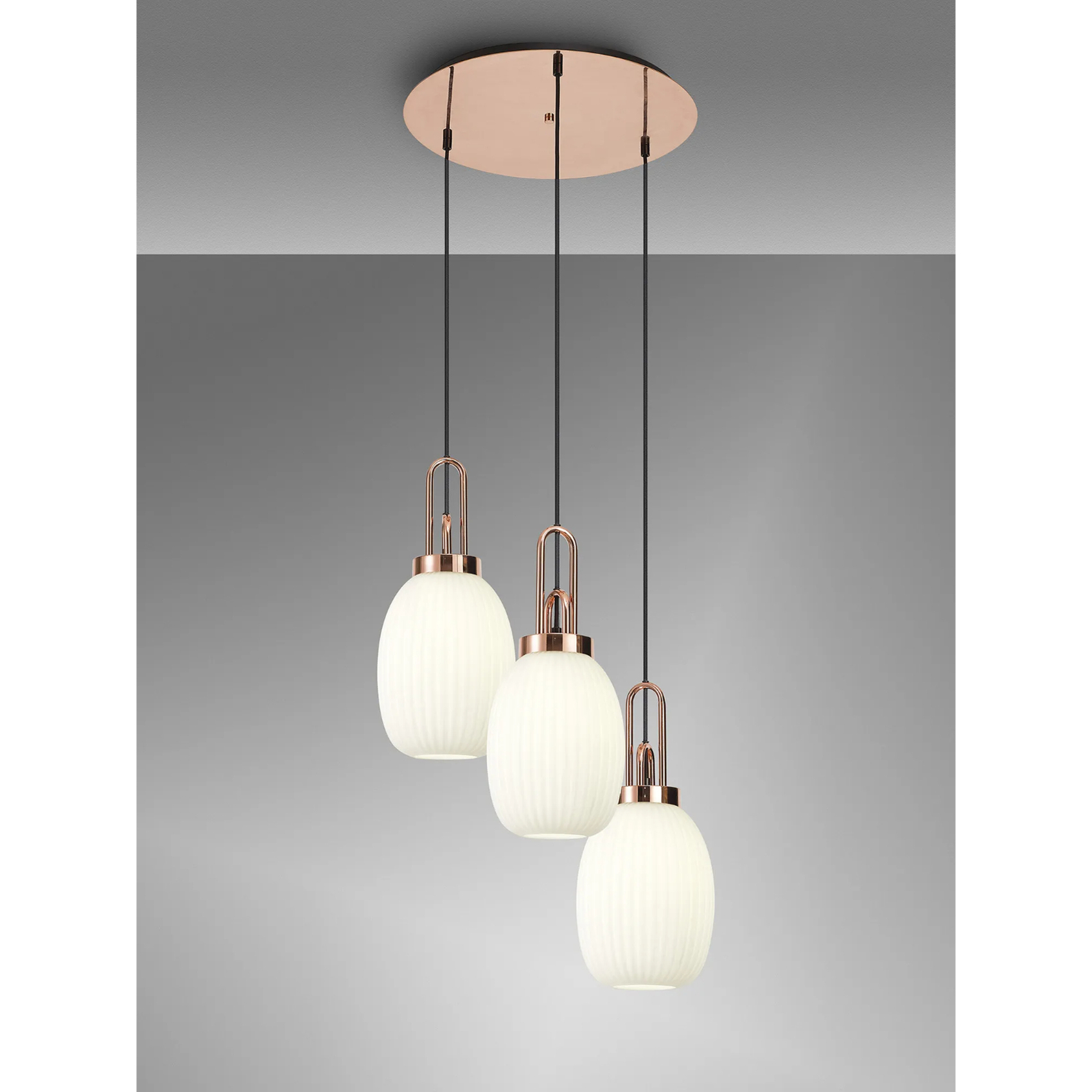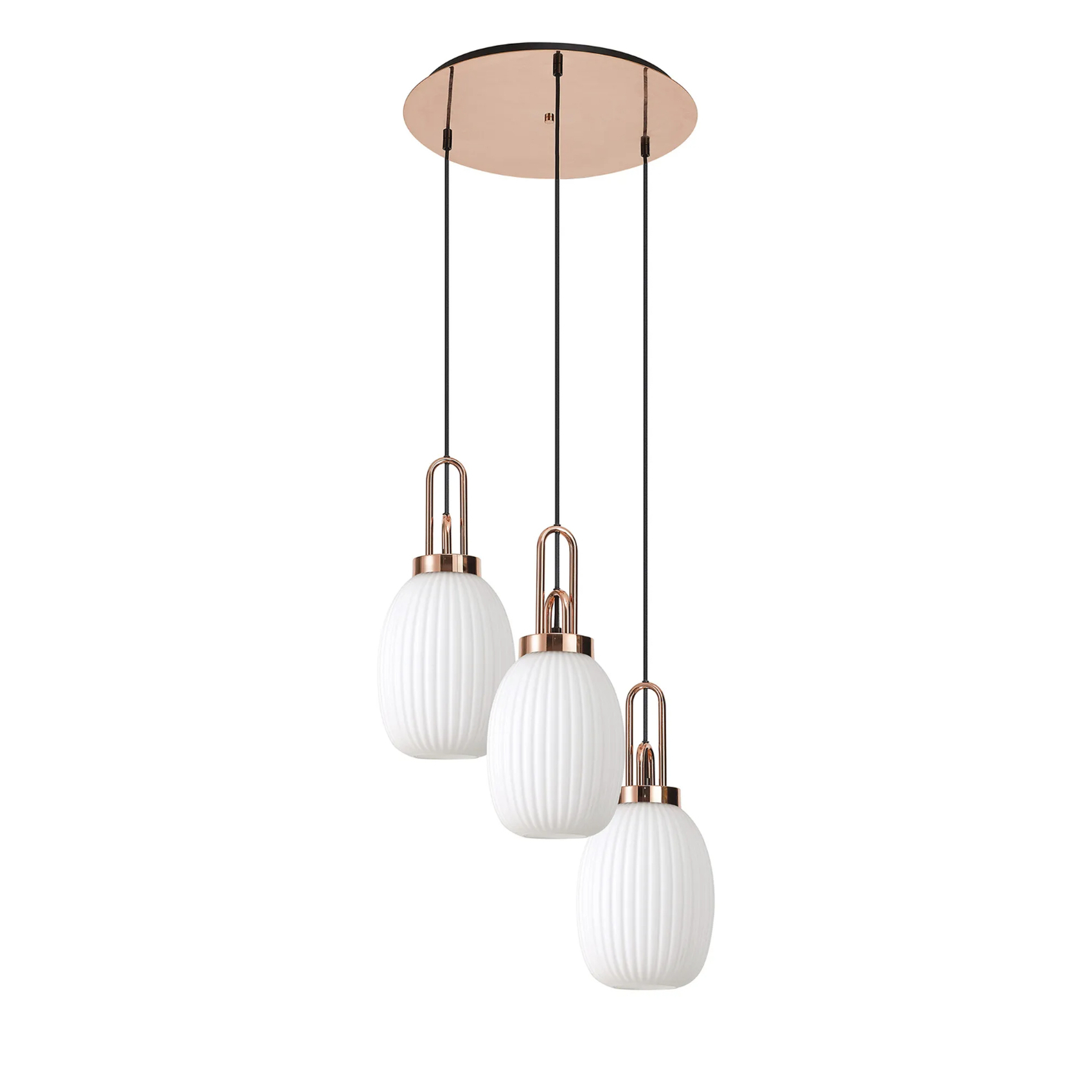 Idolite Camille Round 3 Light Pendant With 20cm Almond Ribbed Glass, Copper/Matt Black Opal | IDOK2880
