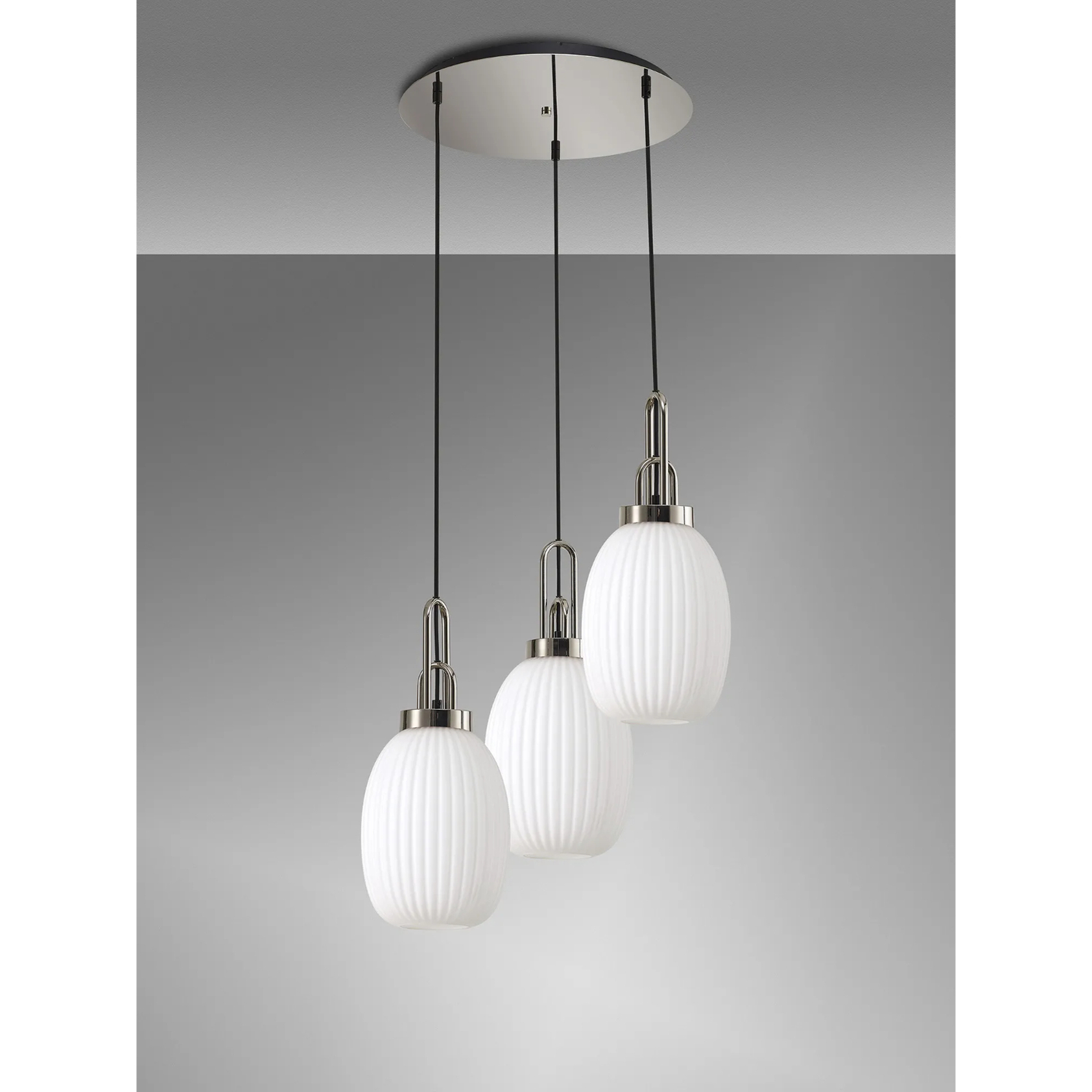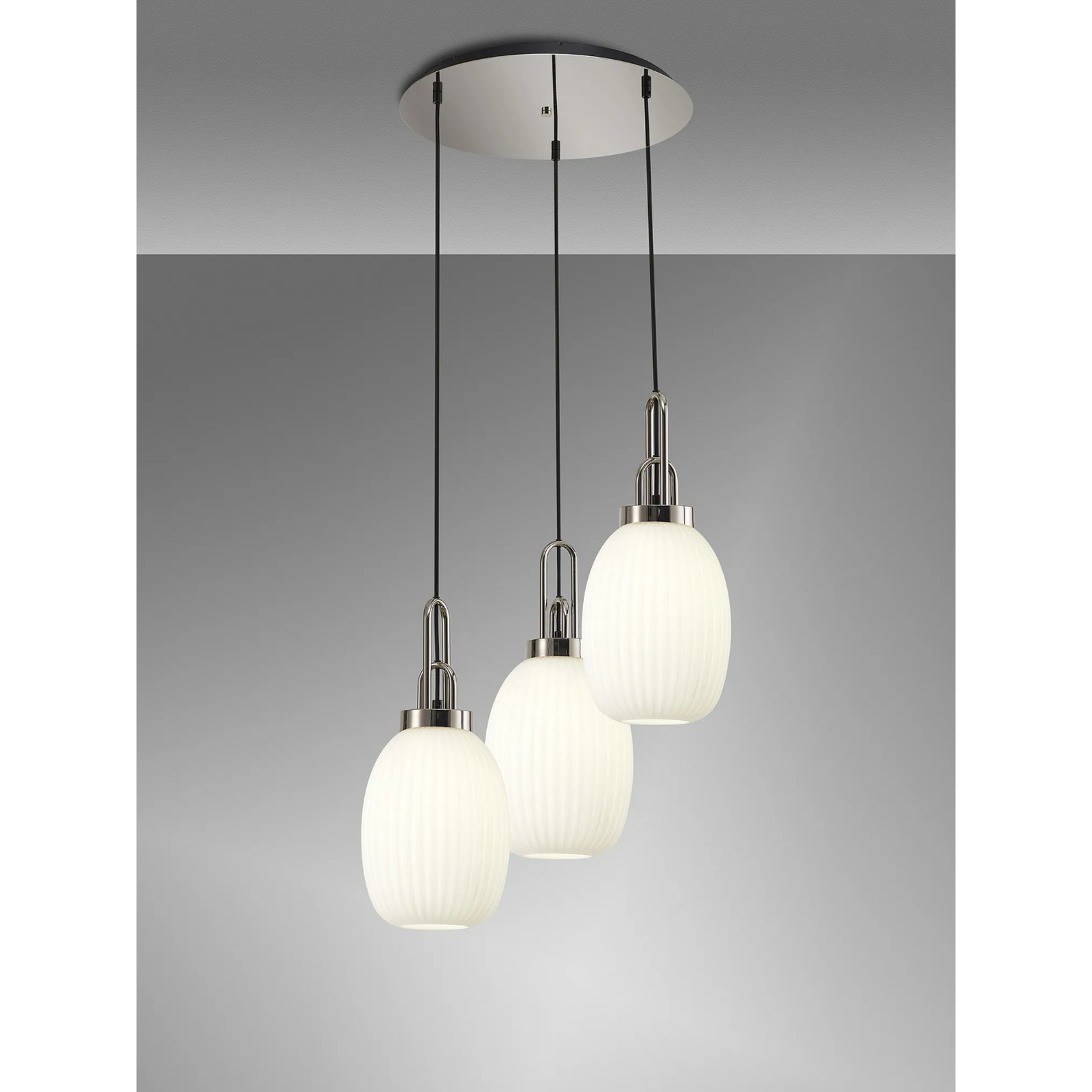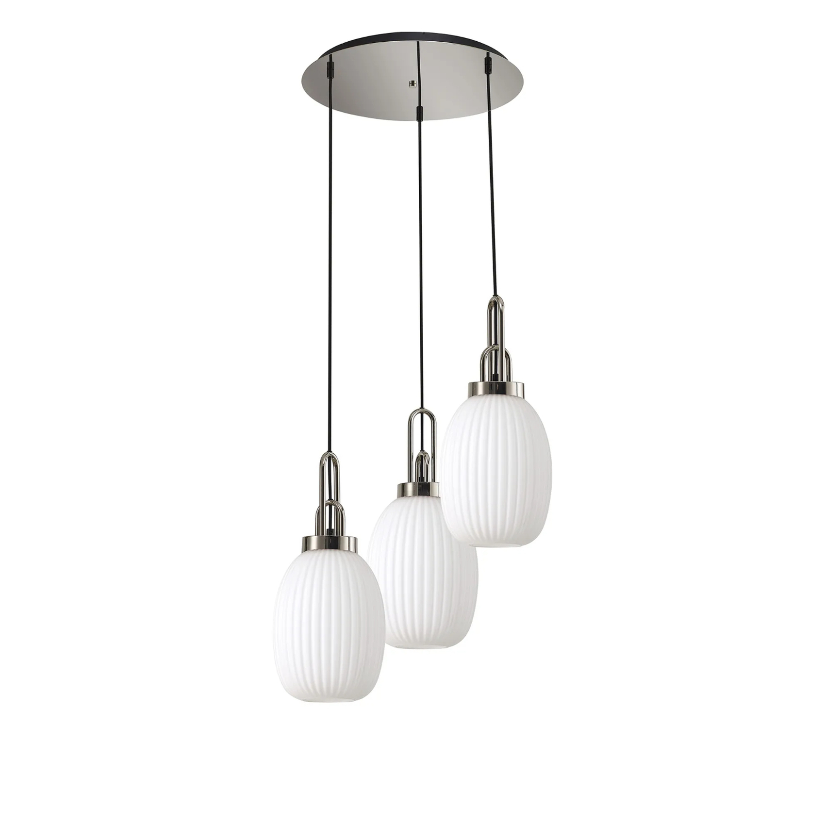 Idolite Camille Round 3 Light Pendant With 20cm Almond Ribbed Glass, Polished Nickel/Matt Black Opal | IDOK5880