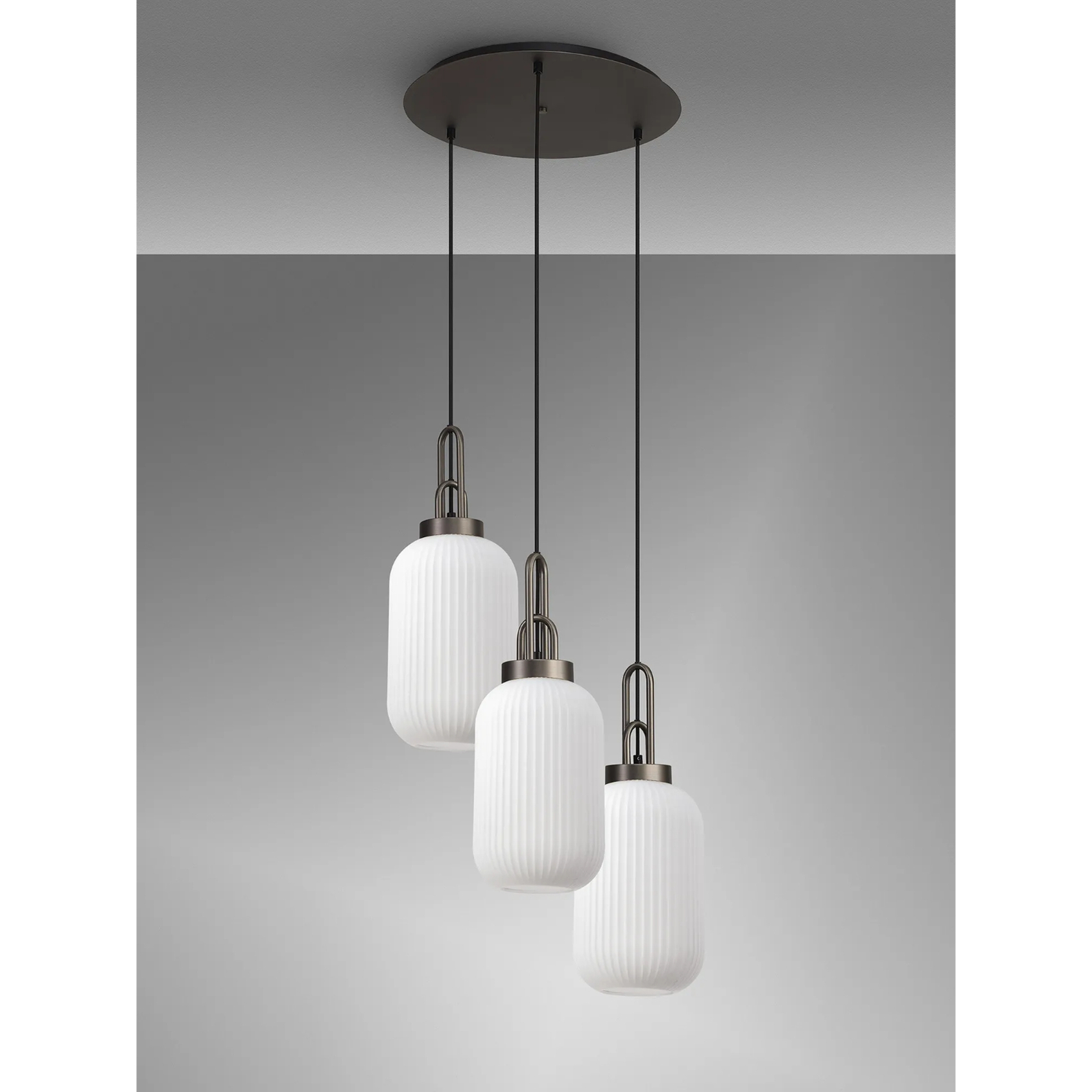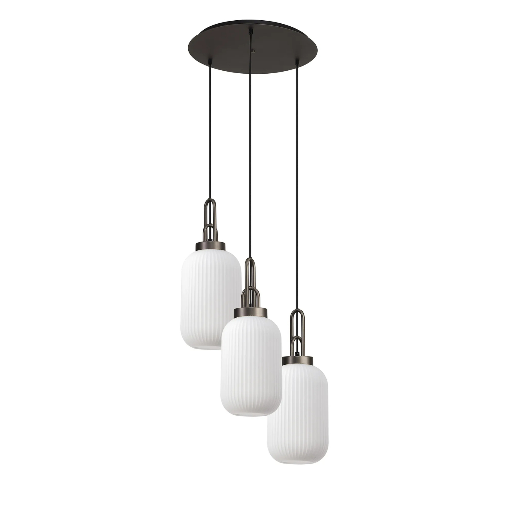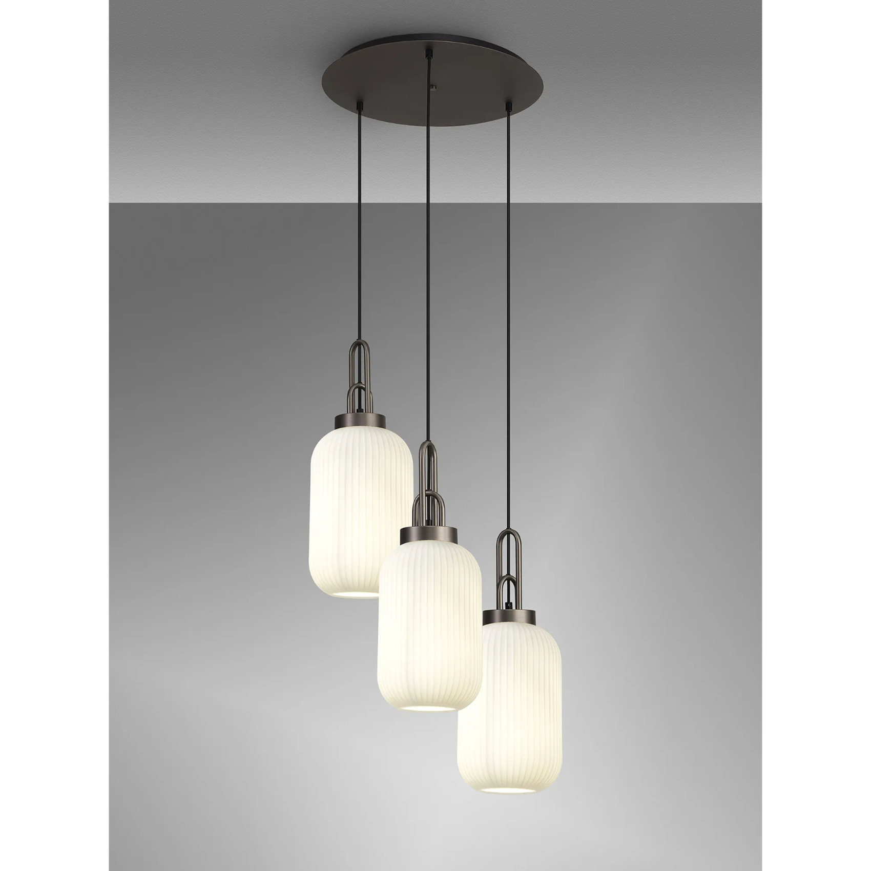 Idolite Camille Round 3 Light Pendant With 20cm Tubular Ribbed Glass, Antique Silver/Matt Black Opal | IDOK6270