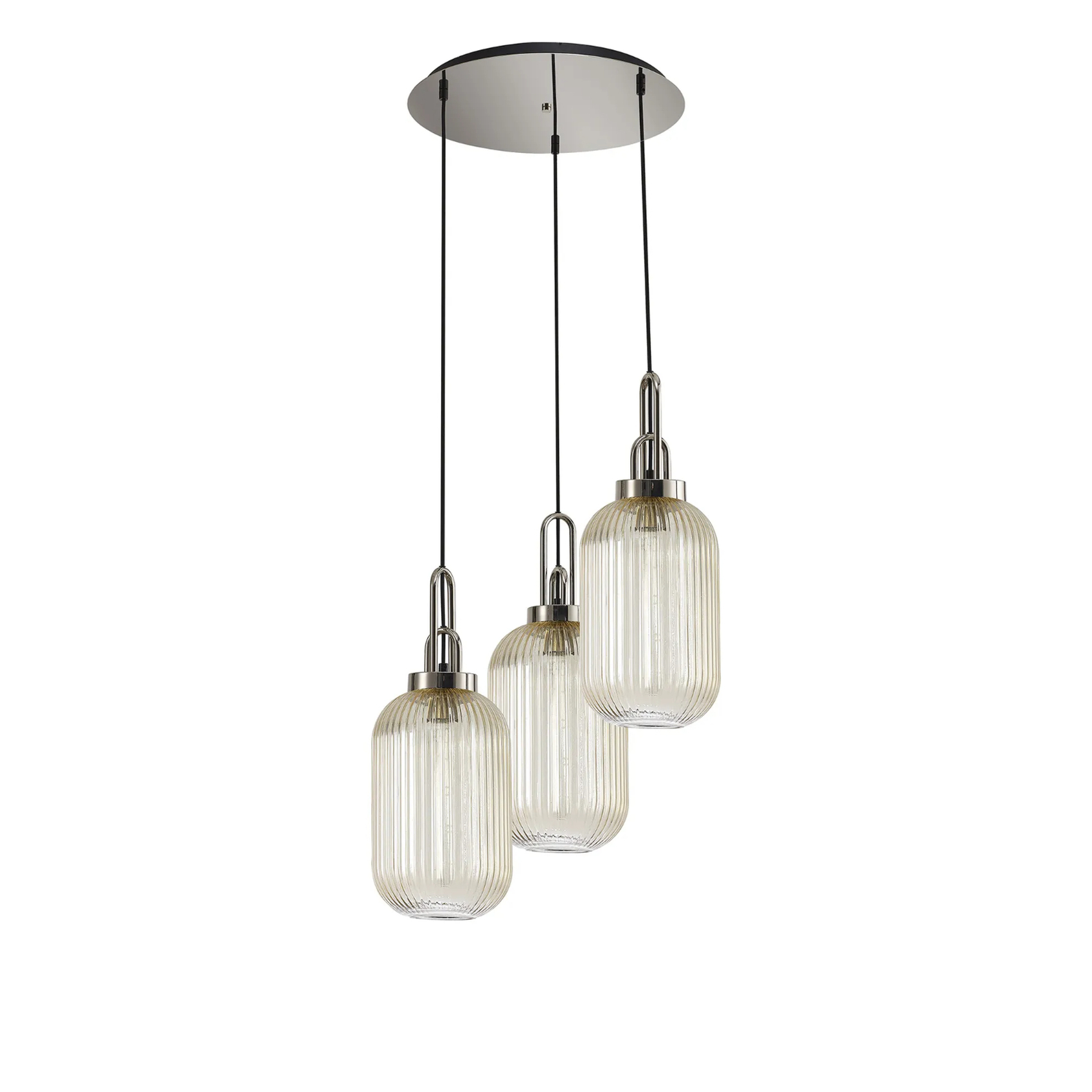 Idolite Camille Round 3 Light Pendant With 20cm Tubular Ribbed Glass, Polished Nickel/Matt Black Champagne | IDOK1080