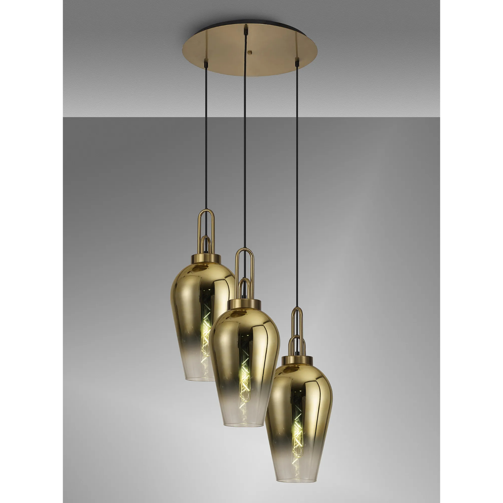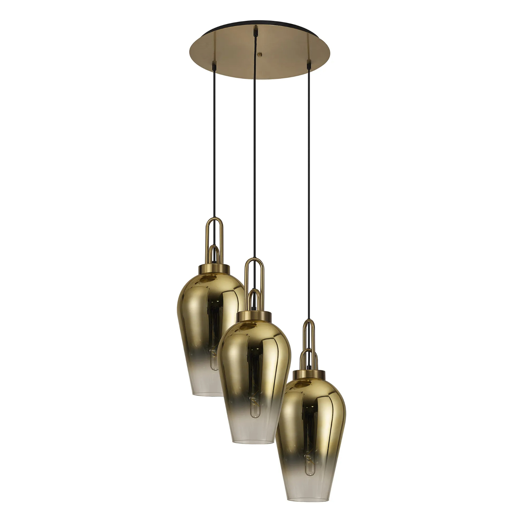 Idolite Camille Round 3 Light Pendant With 23cm Pear Glass, Brass Gold/Matt Black Brass Gold/Clear | IDOK7090