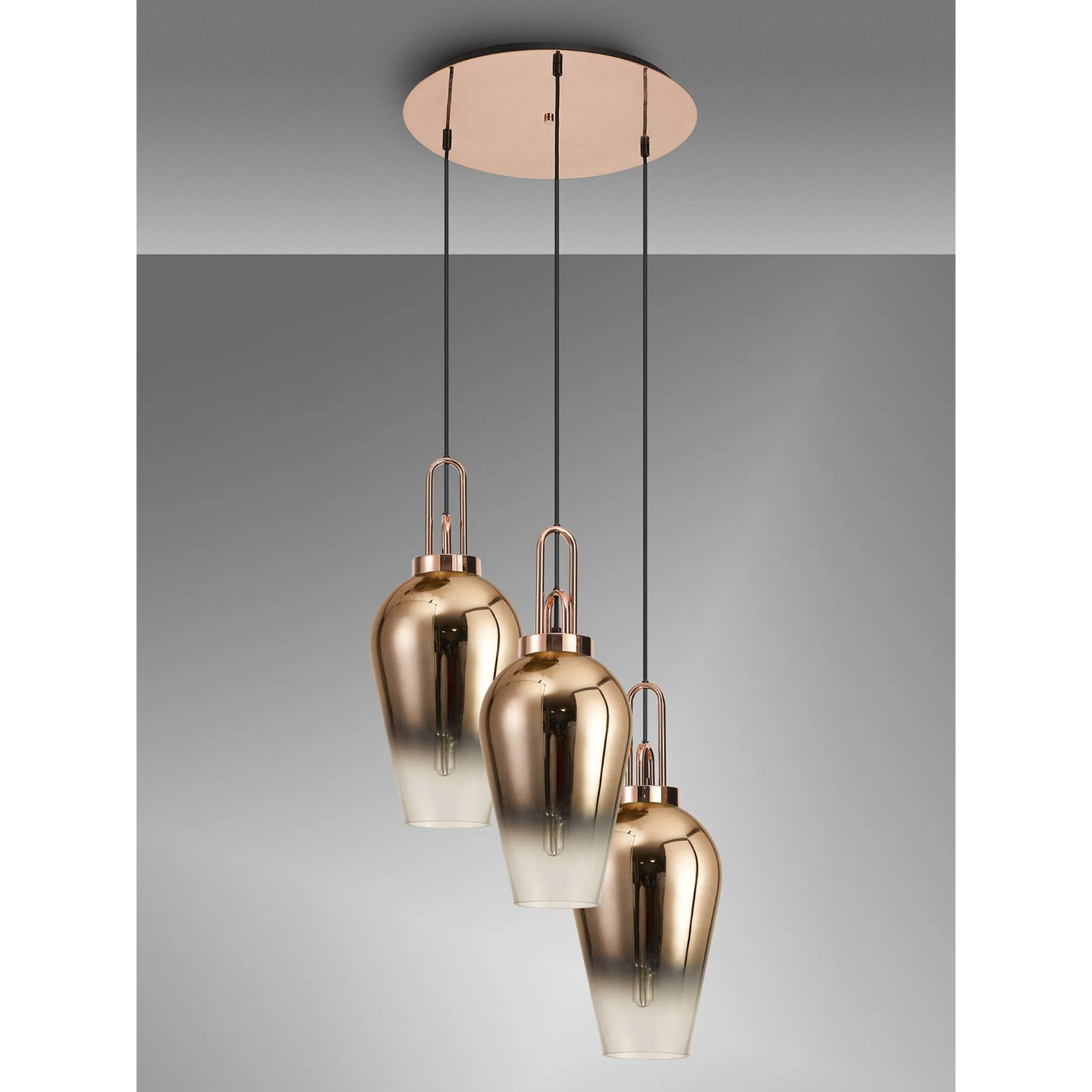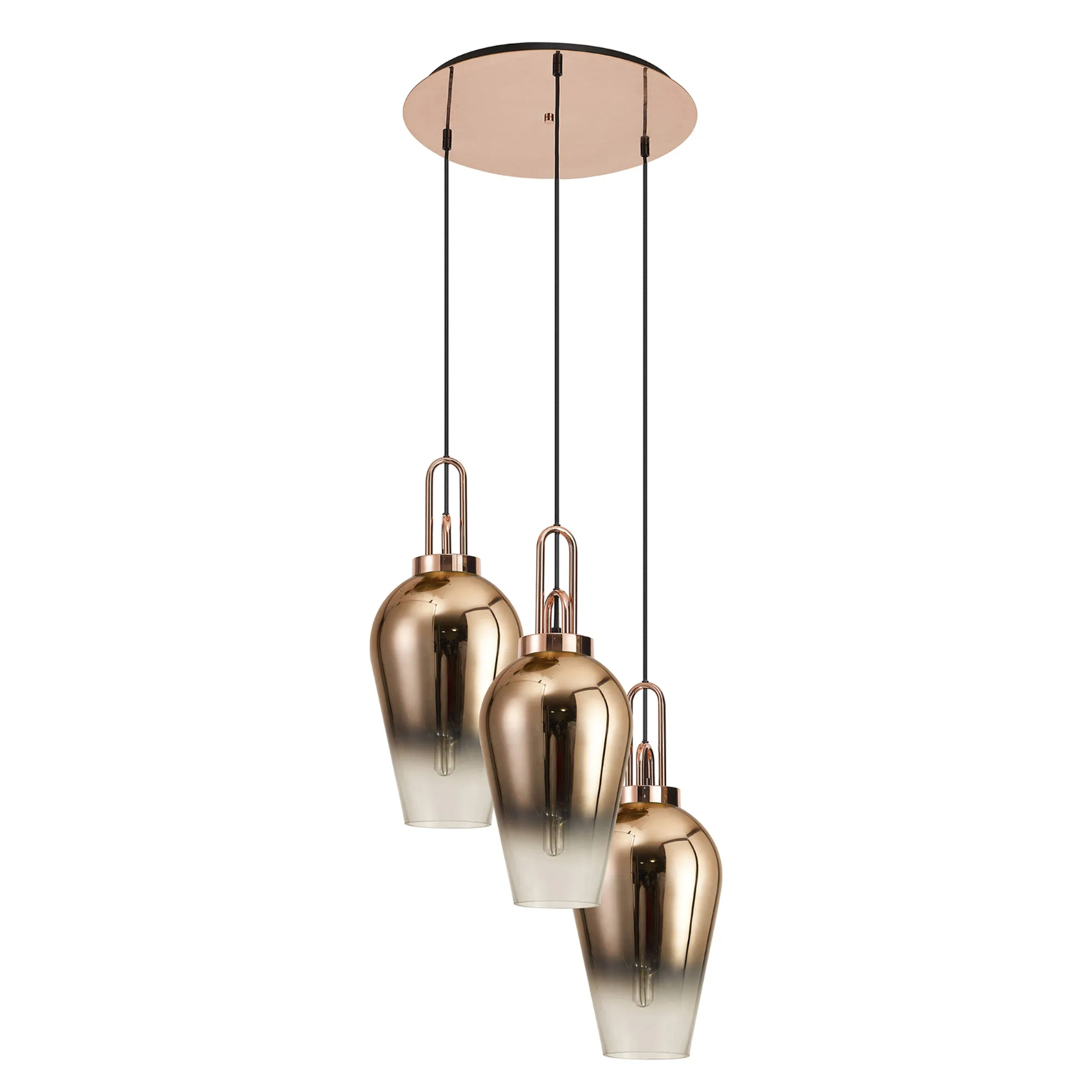 Idolite Camille Round 3 Light Pendant With 23cm Pear Glass, Copper/Matt Black Copper/Clear | IDOK2290