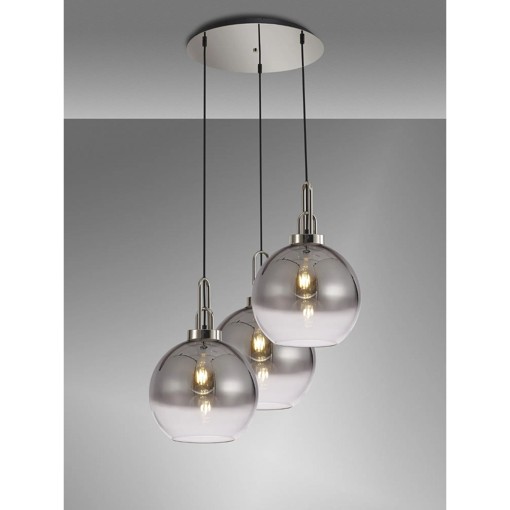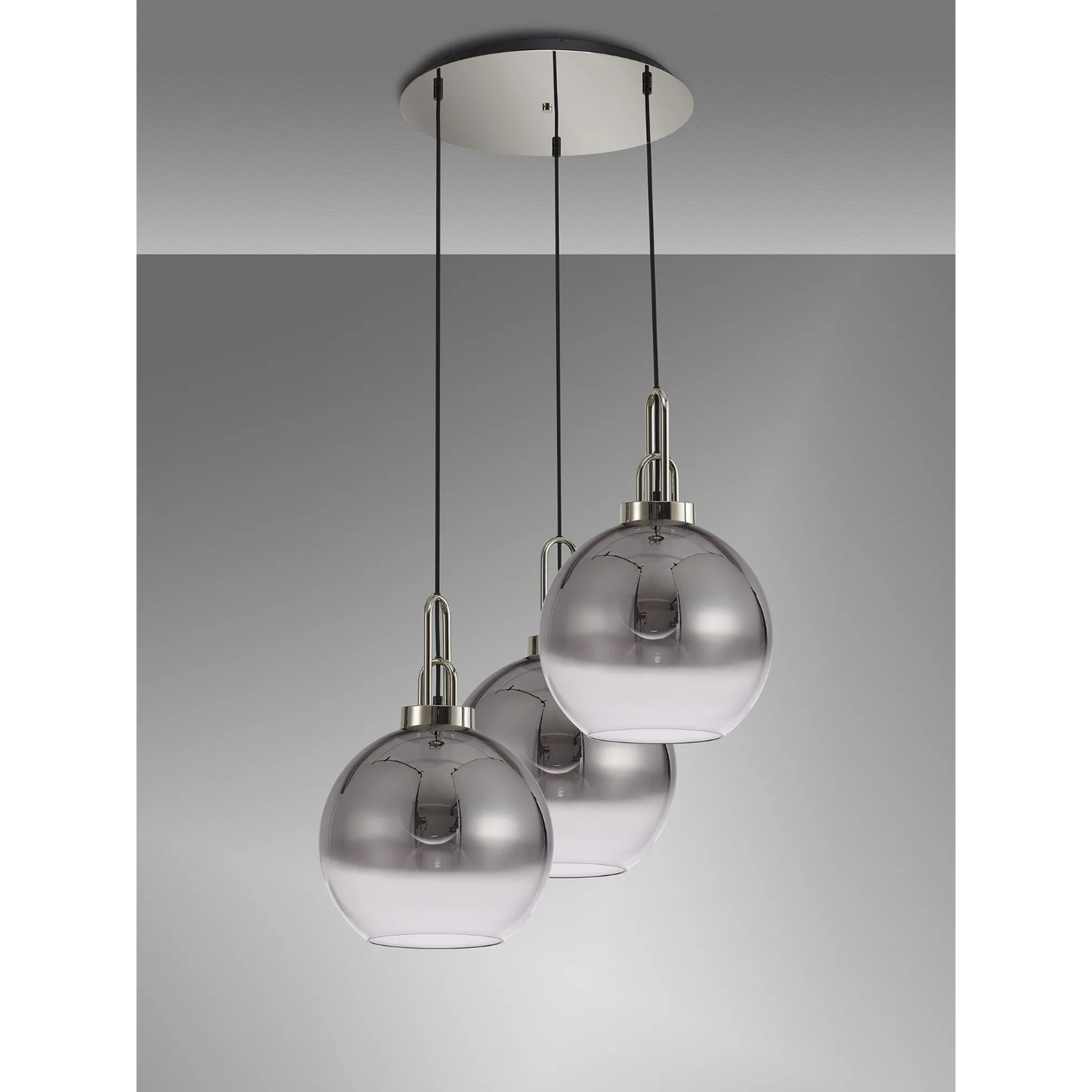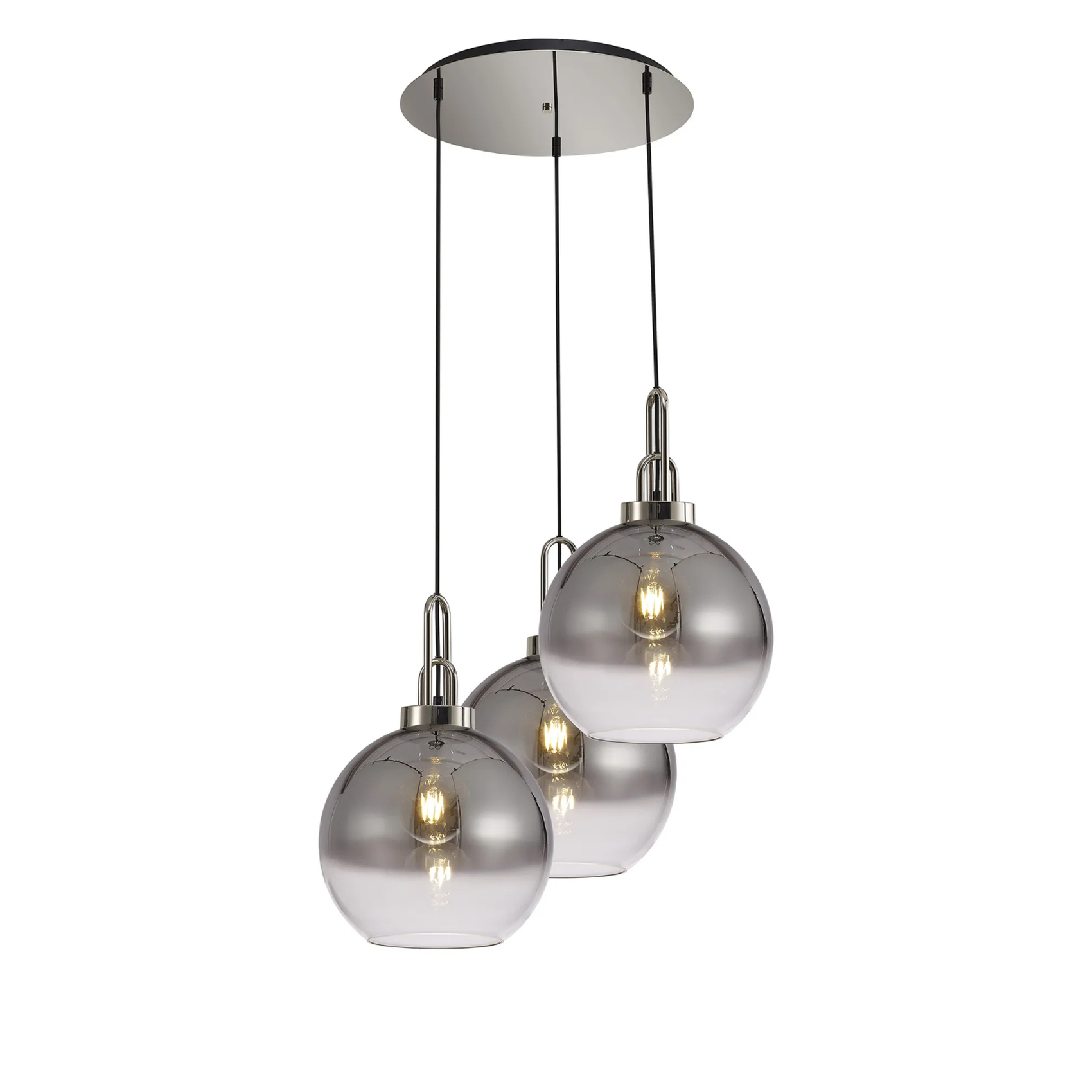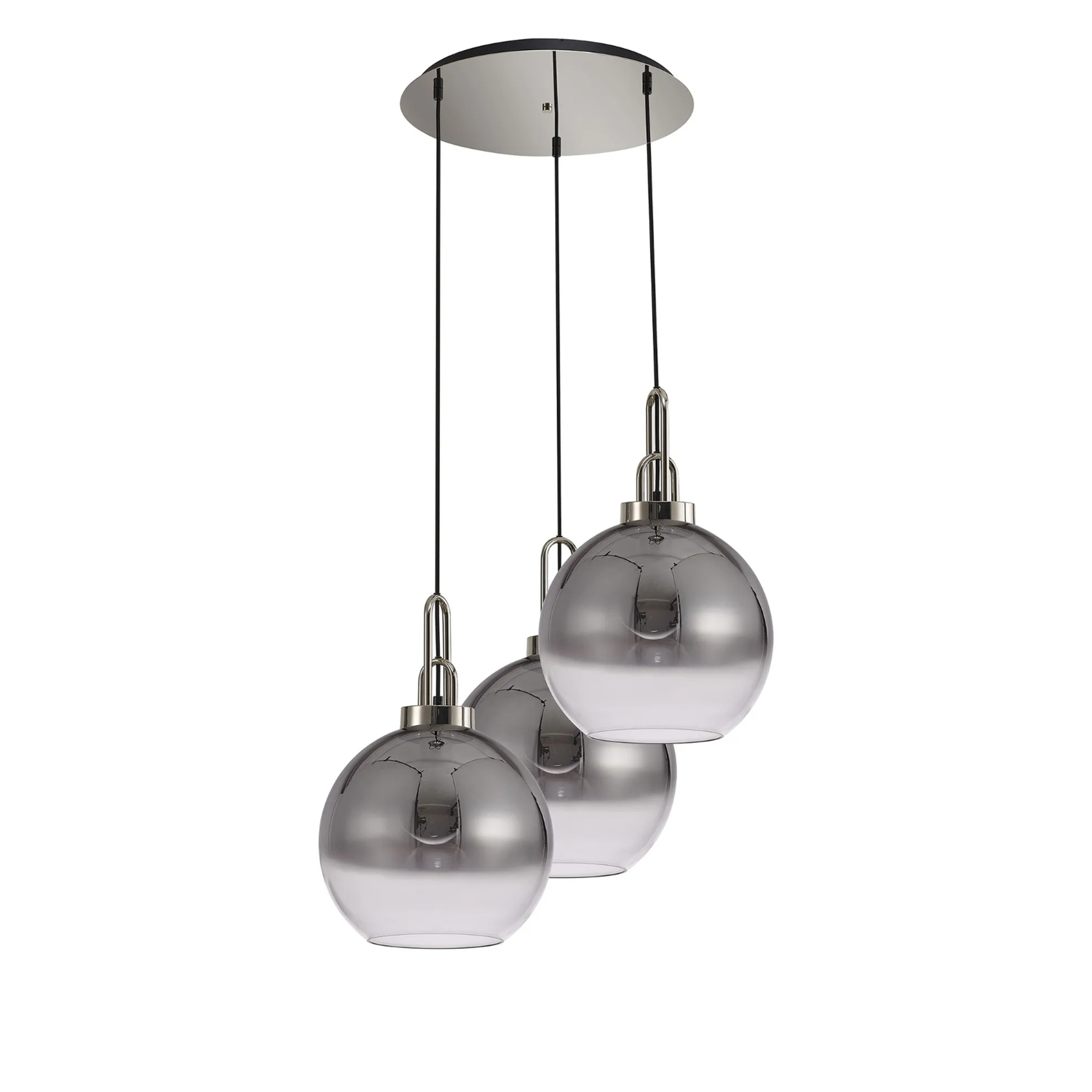 Idolite Camille Round 3 Light Pendant With 30cm Globe Glass, Polished Nickel/Matt Black Smoked/Clear | IDOK7360