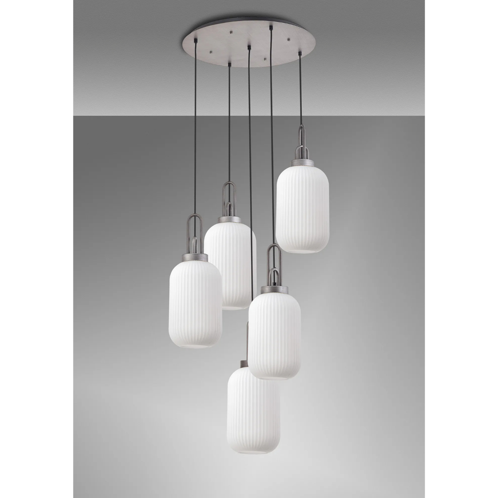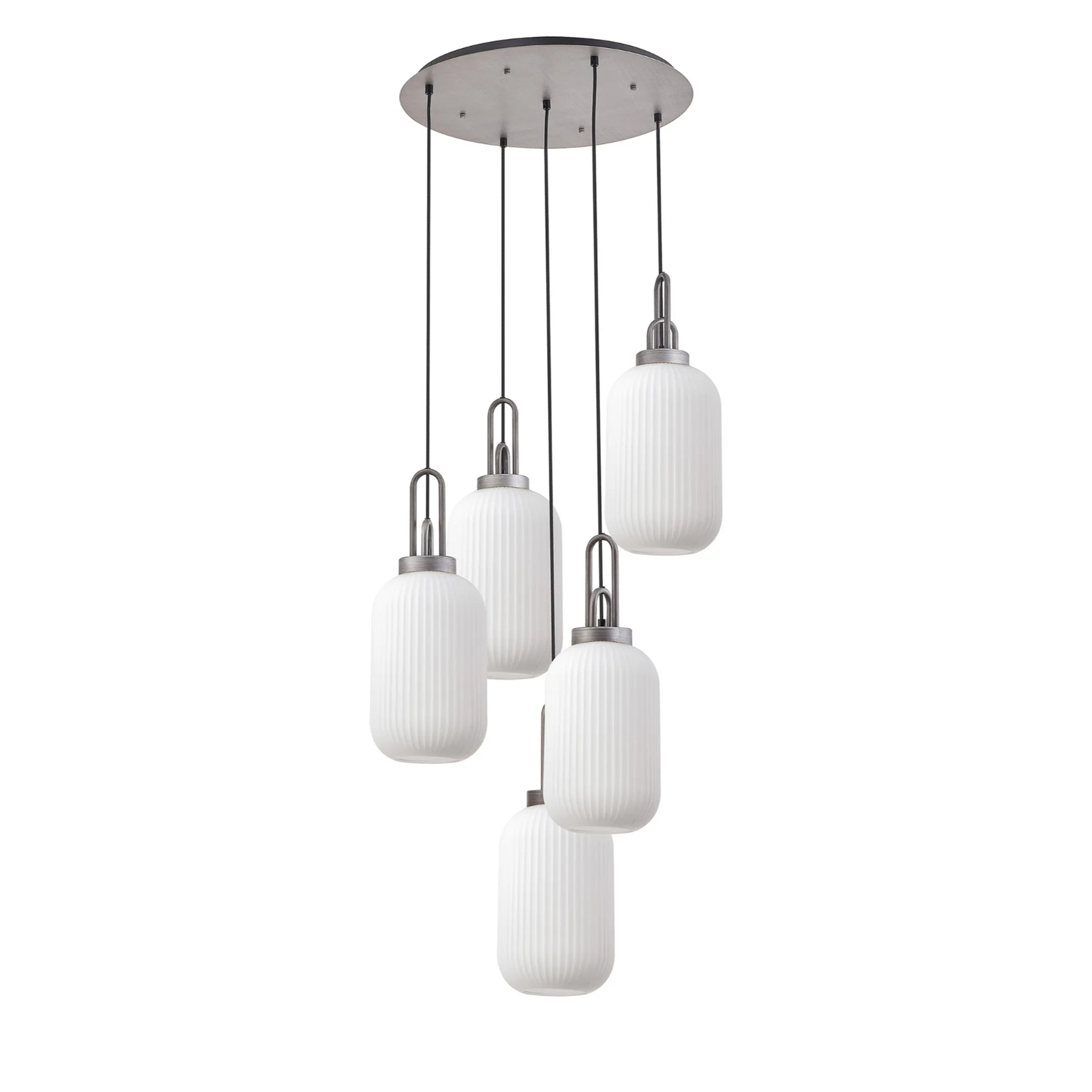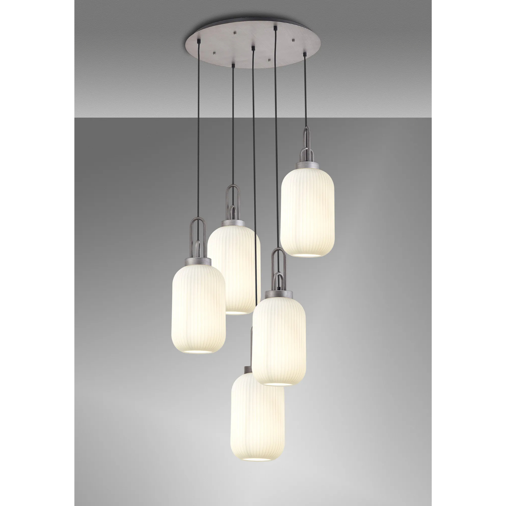 Idolite Camille Round 5 Light Pendant With 20cm Tubular Ribbed Glass, Aged Pewter/Matt Black Opal | IDOK3270