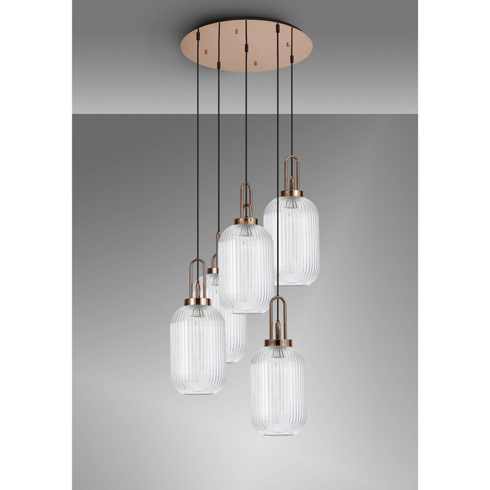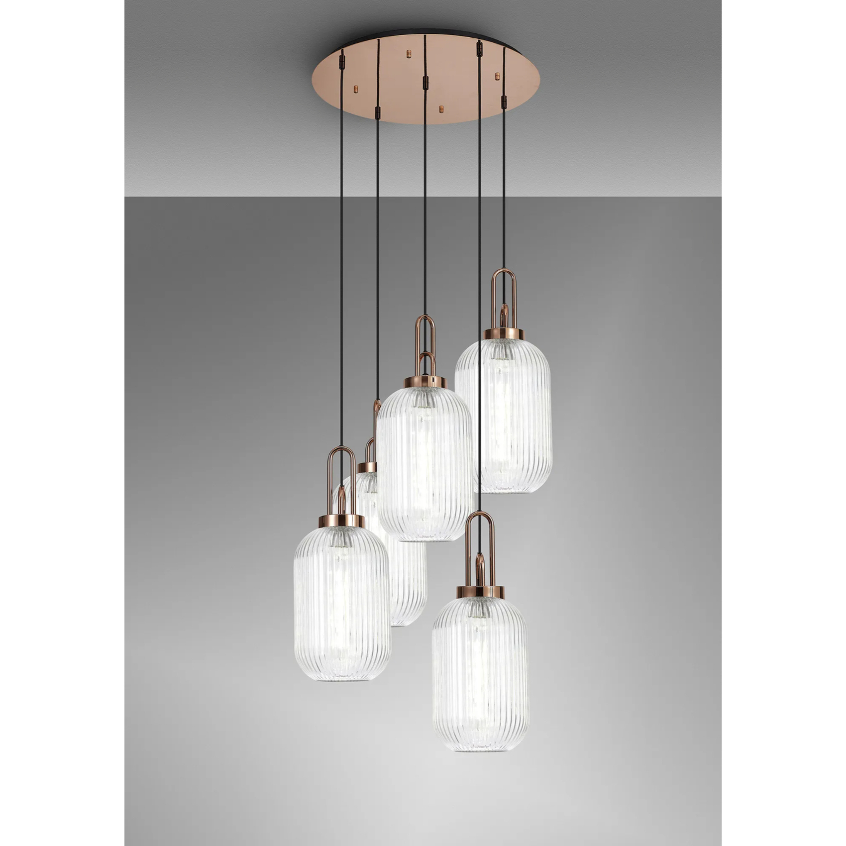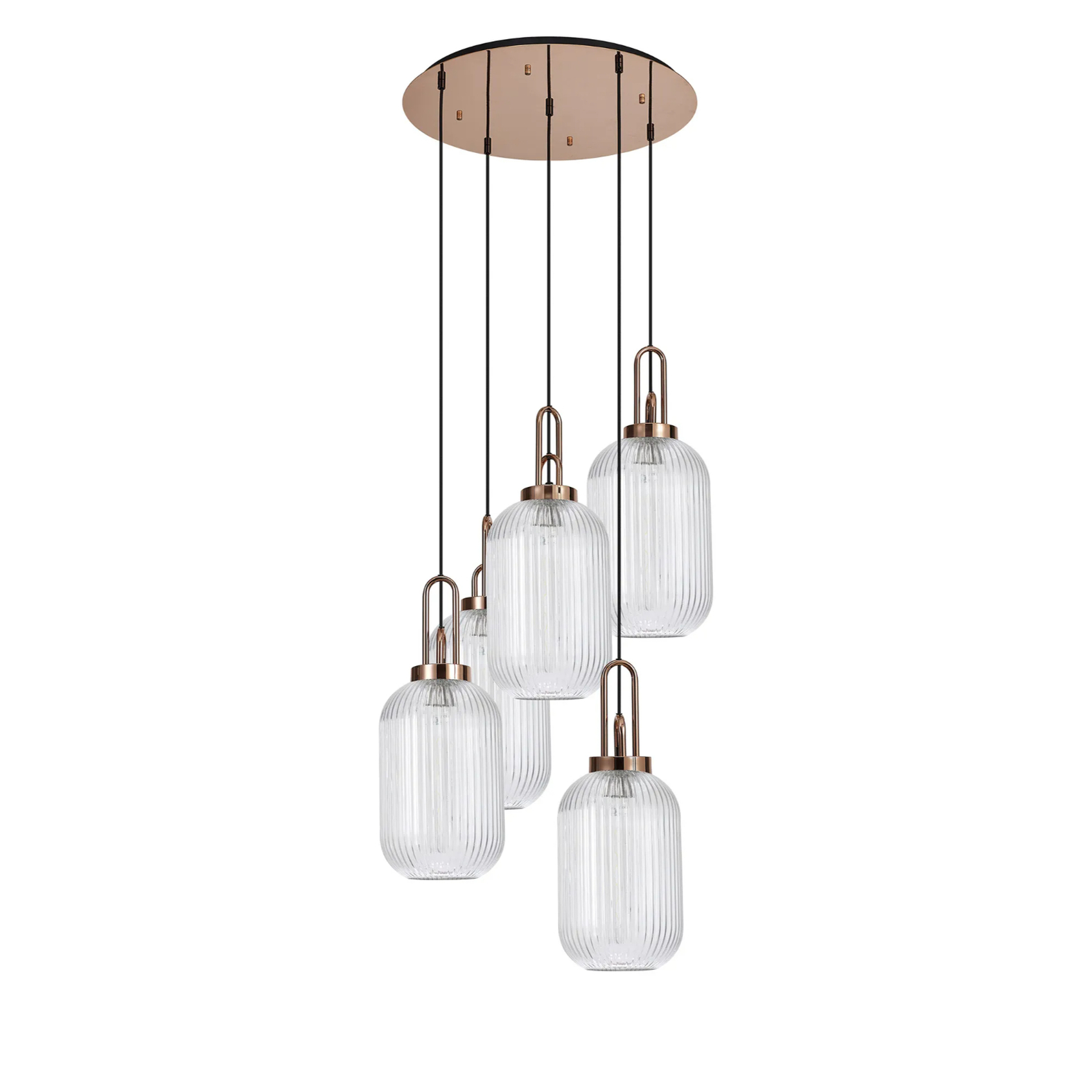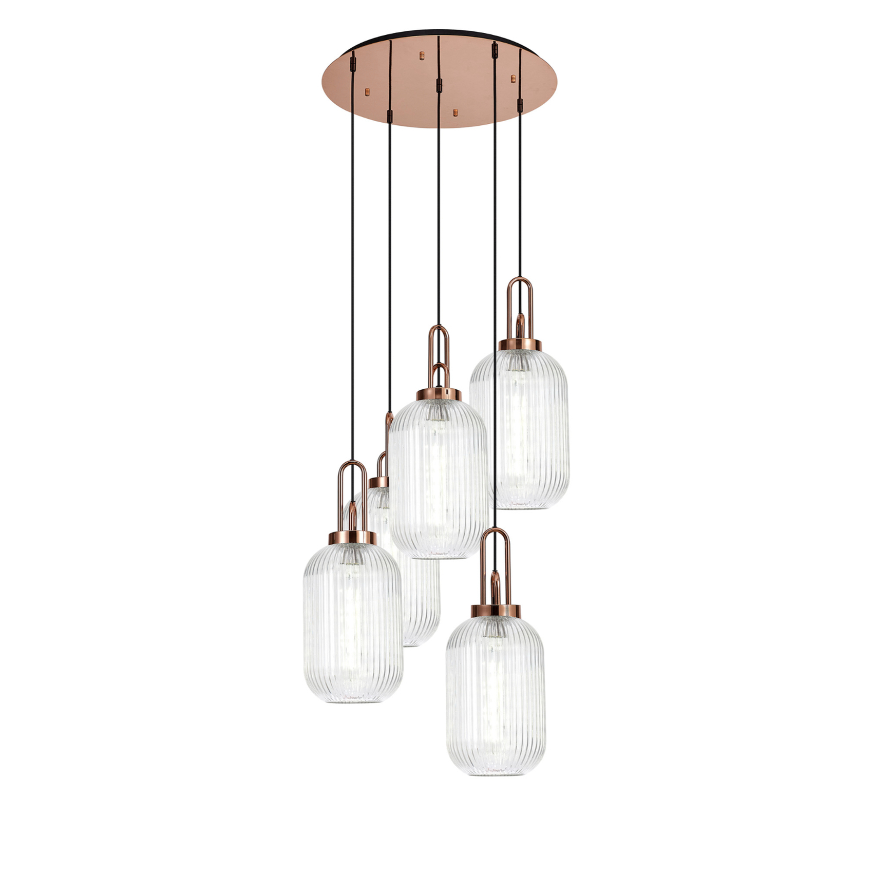 Idolite Camille Round 5 Light Pendant With 20cm Tubular Ribbed Glass, Copper/Matt Black Clear | IDOK8570
