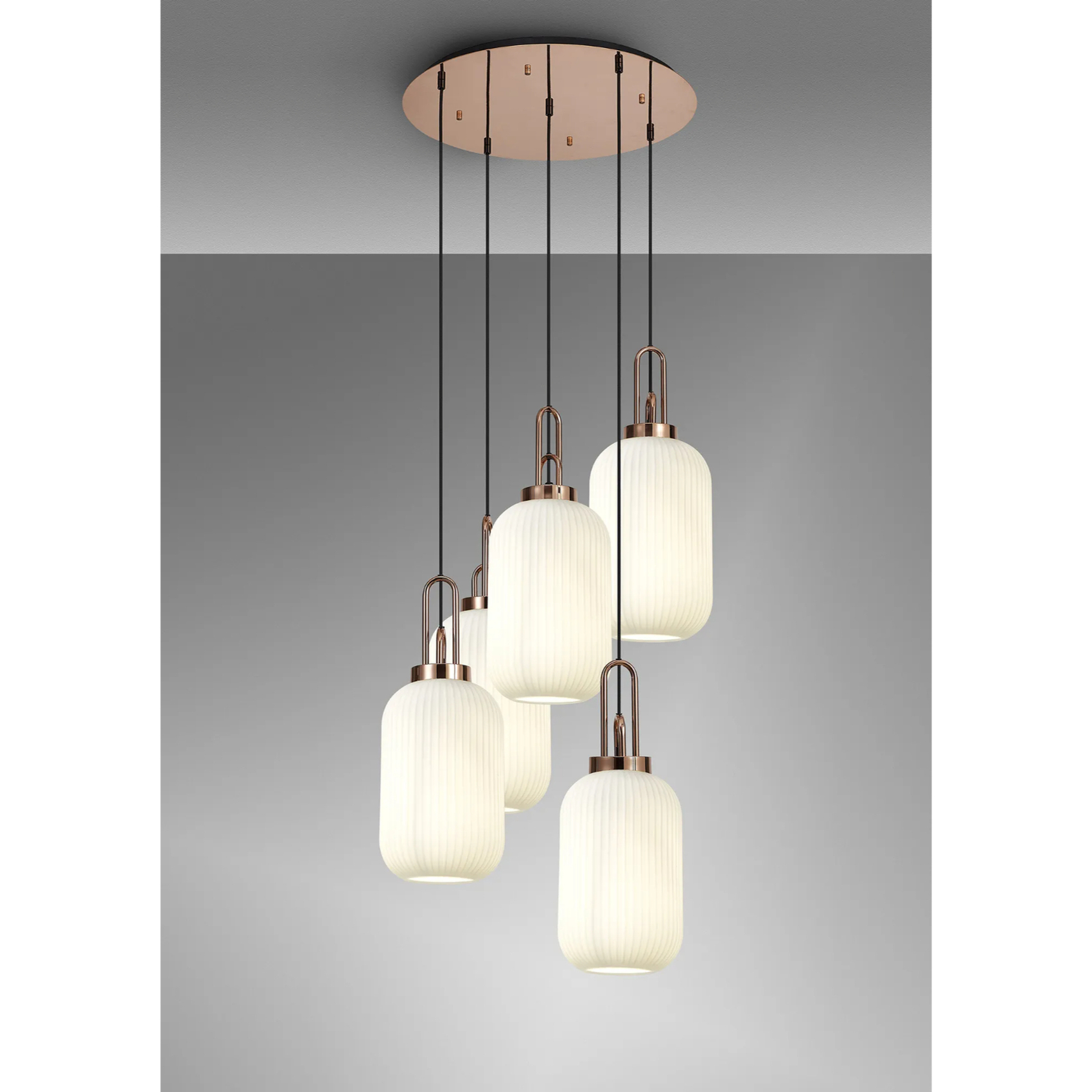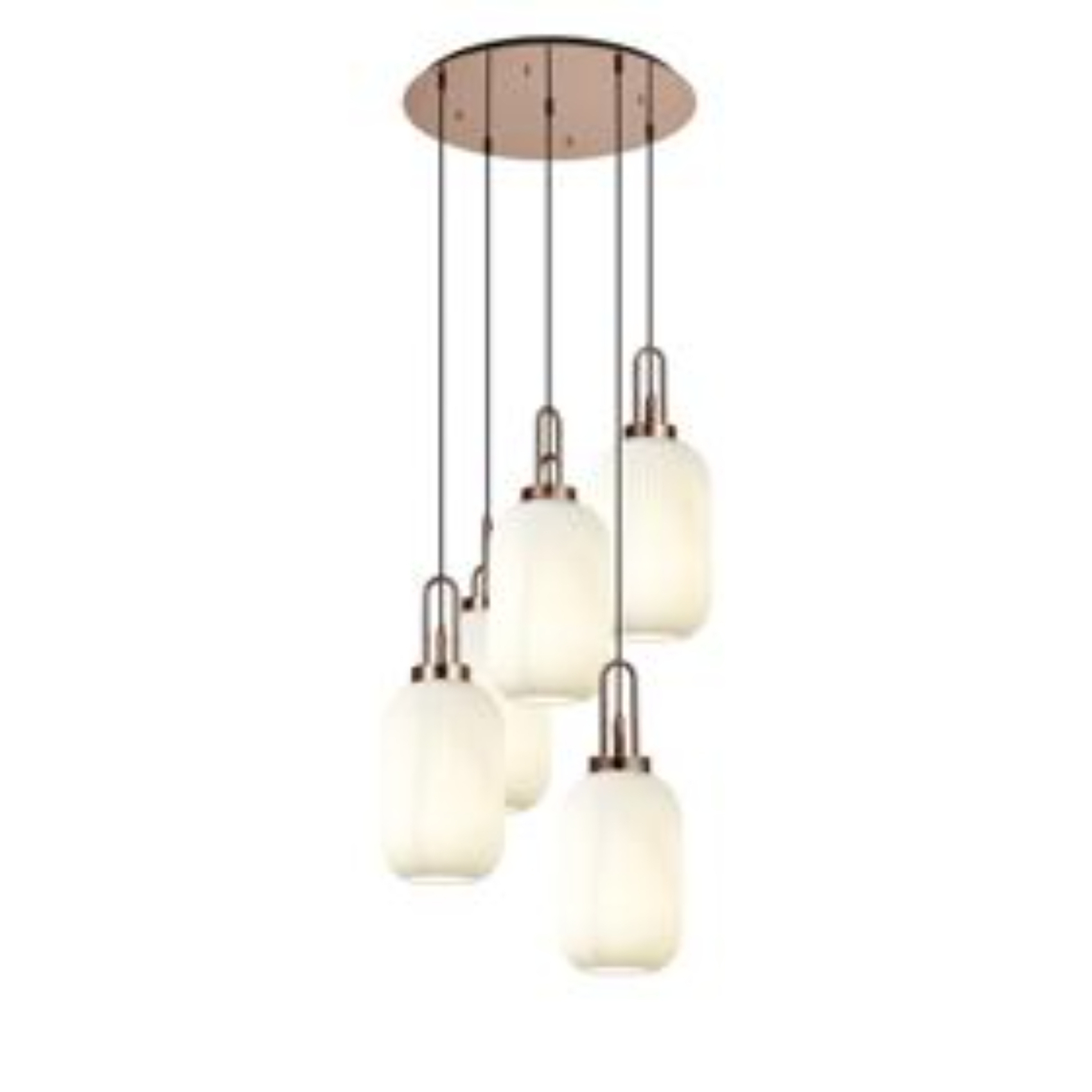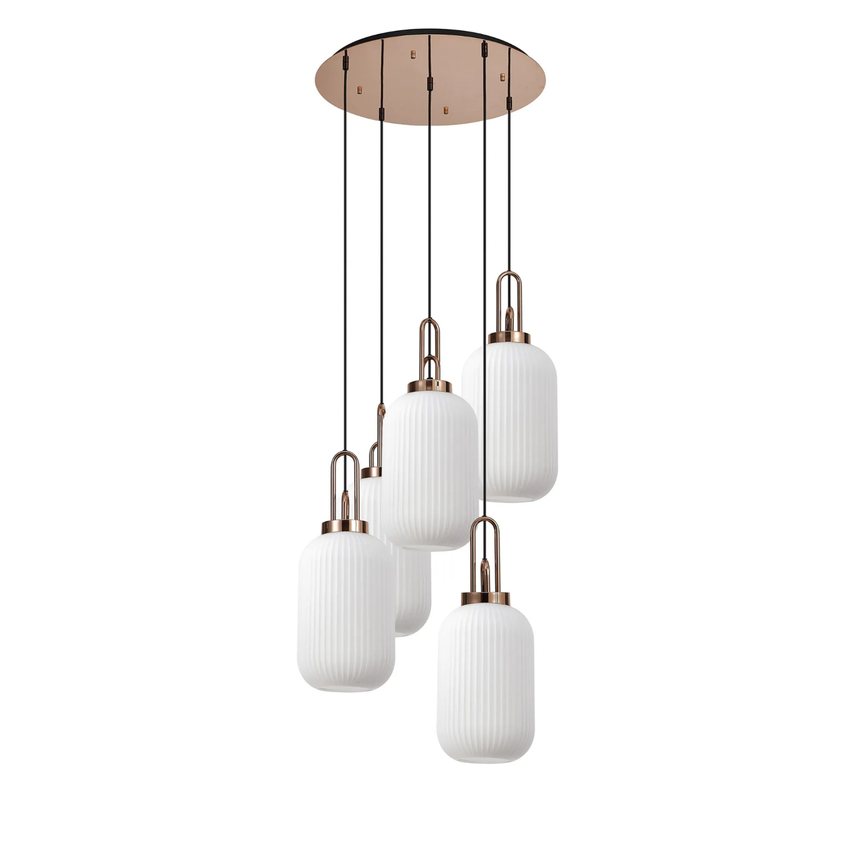 Idolite Camille Round 5 Light Pendant With 20cm Tubular Ribbed Glass, Copper/Matt Black Opal | IDOK7370