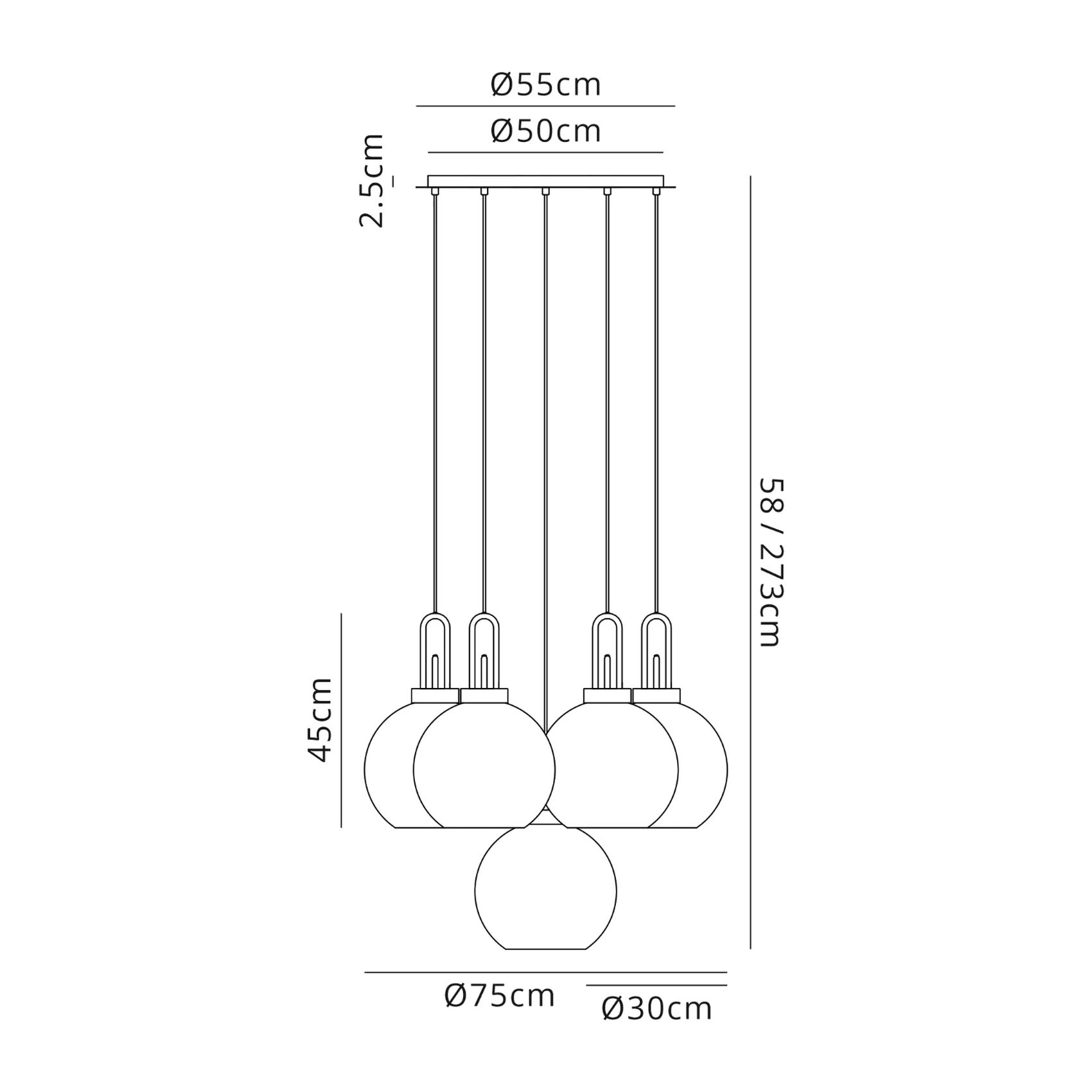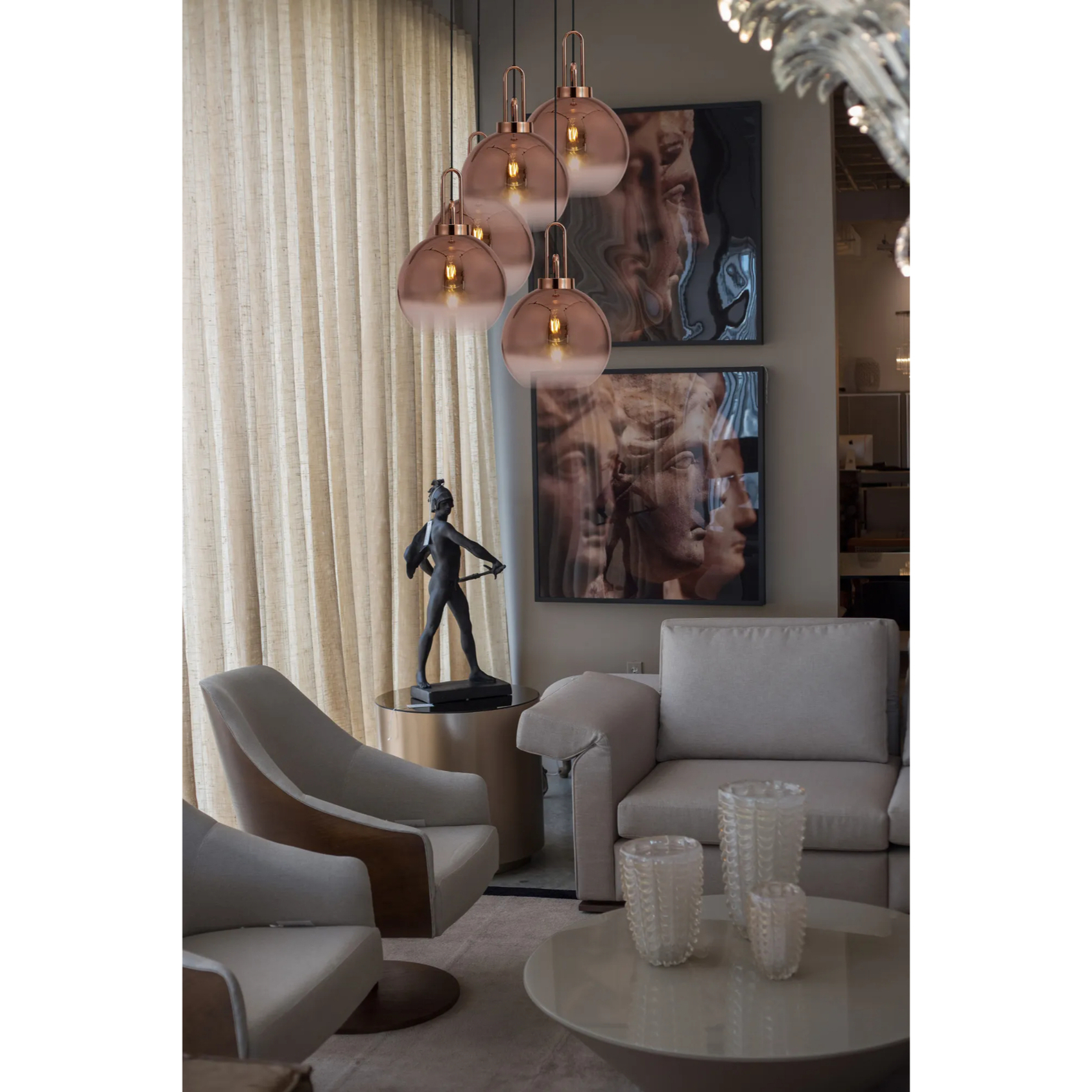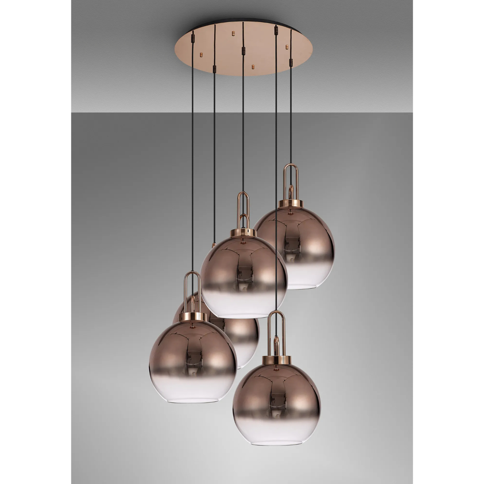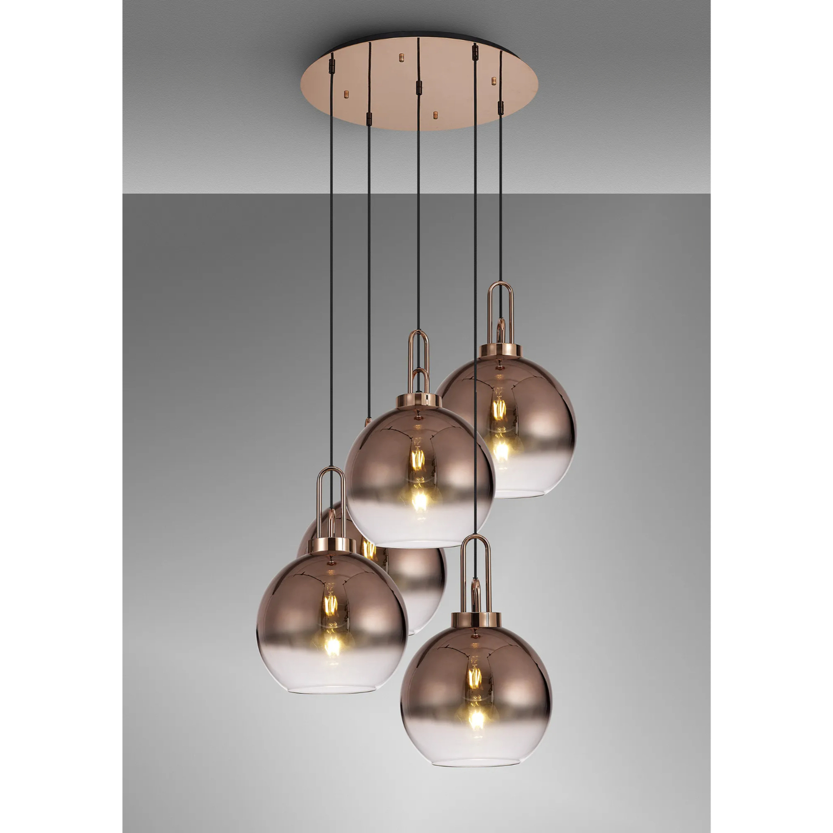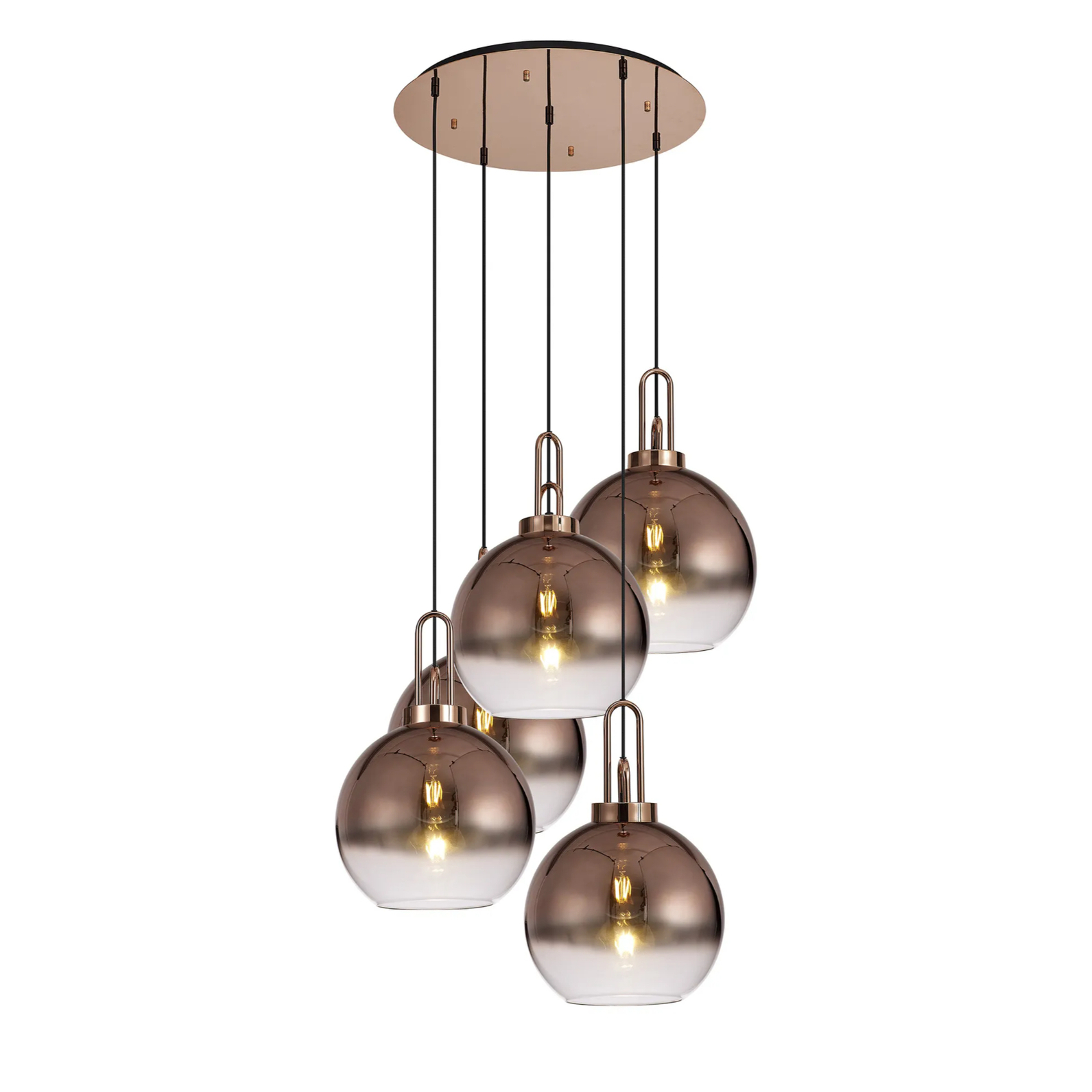 Idolite Camille Round 5 Light Pendant With 30cm Globe Glass, Copper/Matt Black Copper/Clear | IDOK0460