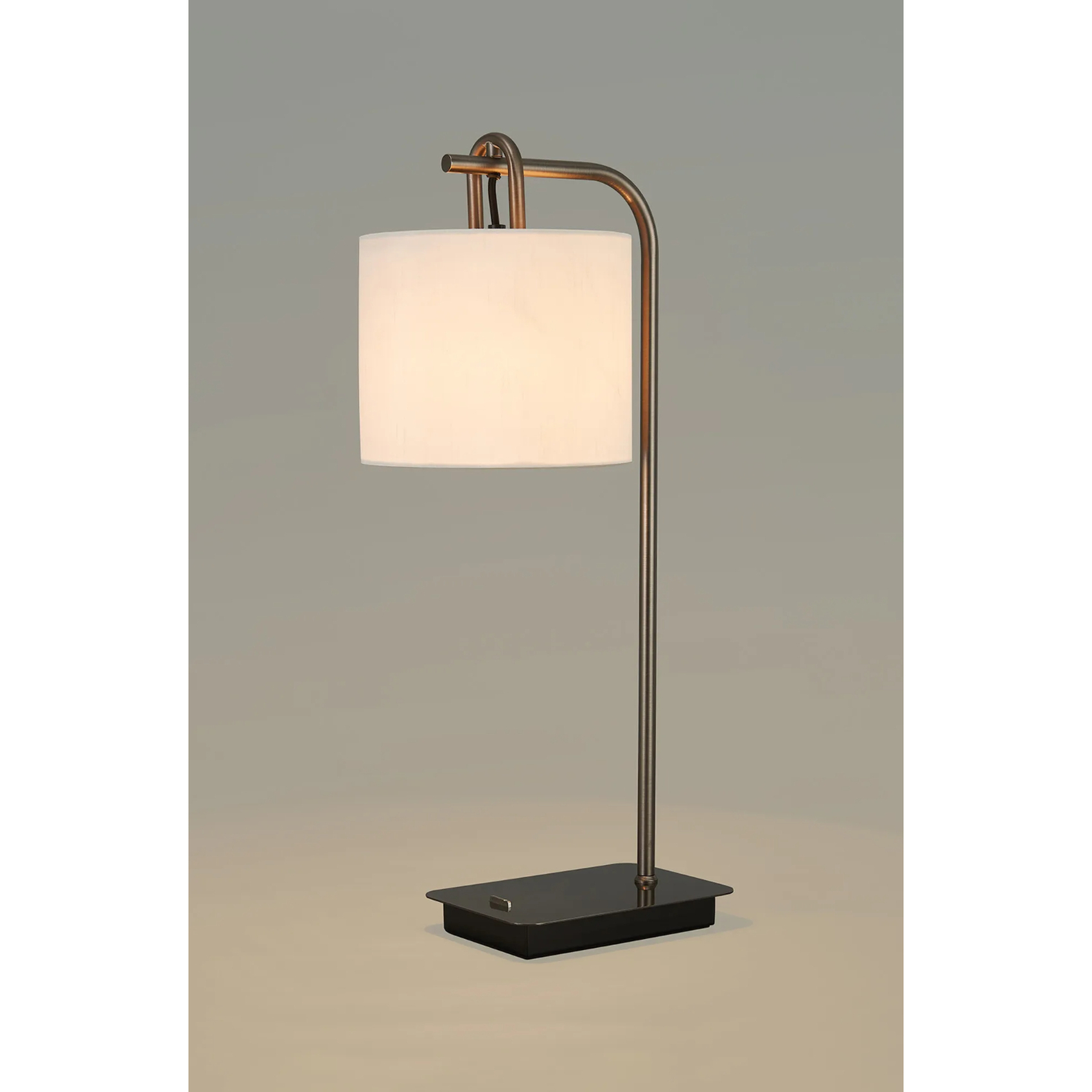 Idolite Camille Table Lamp, 1 Light E27, Antique SIlver/Matt Black/Ivory 20x16.5cm Faux Silk Shade | IDOK8973