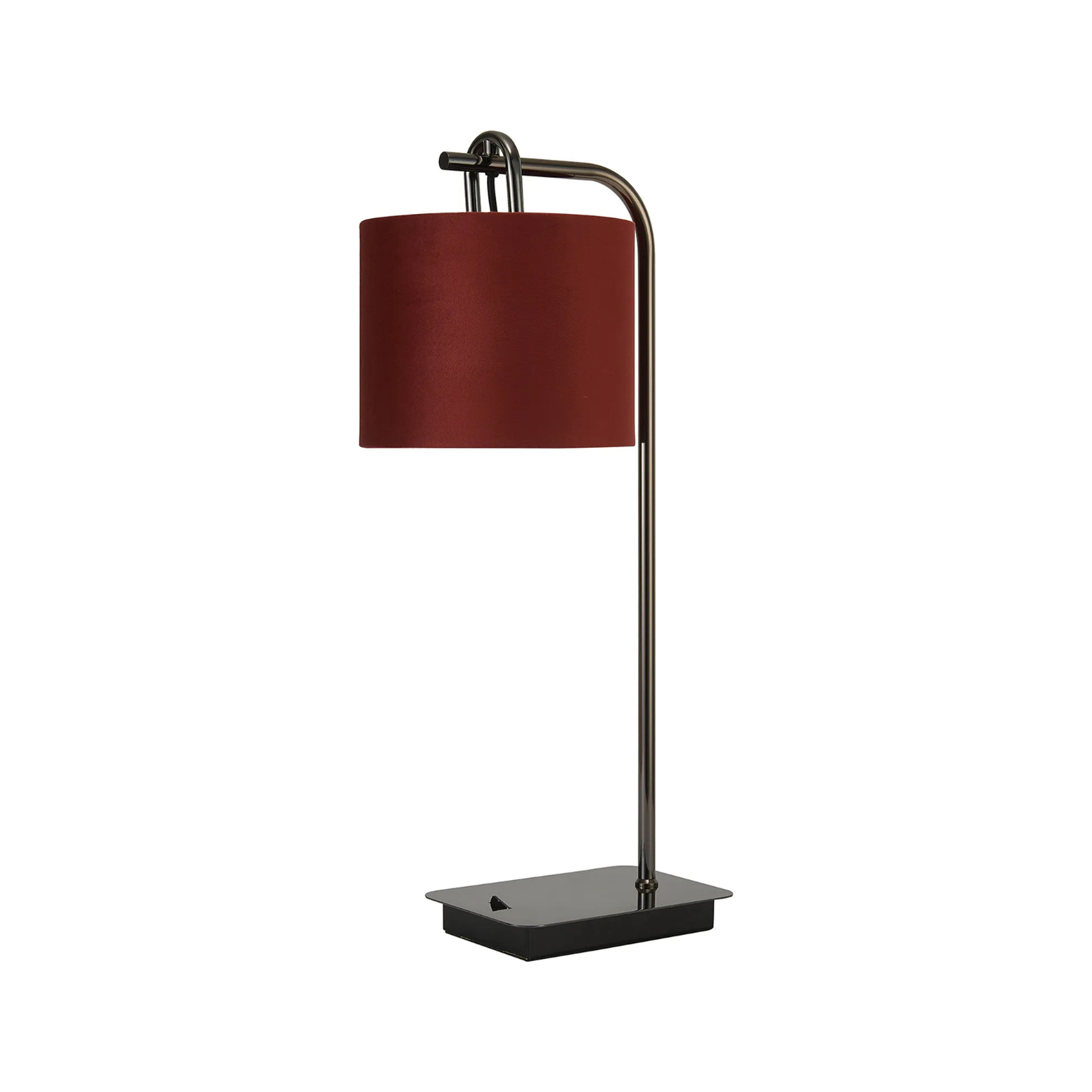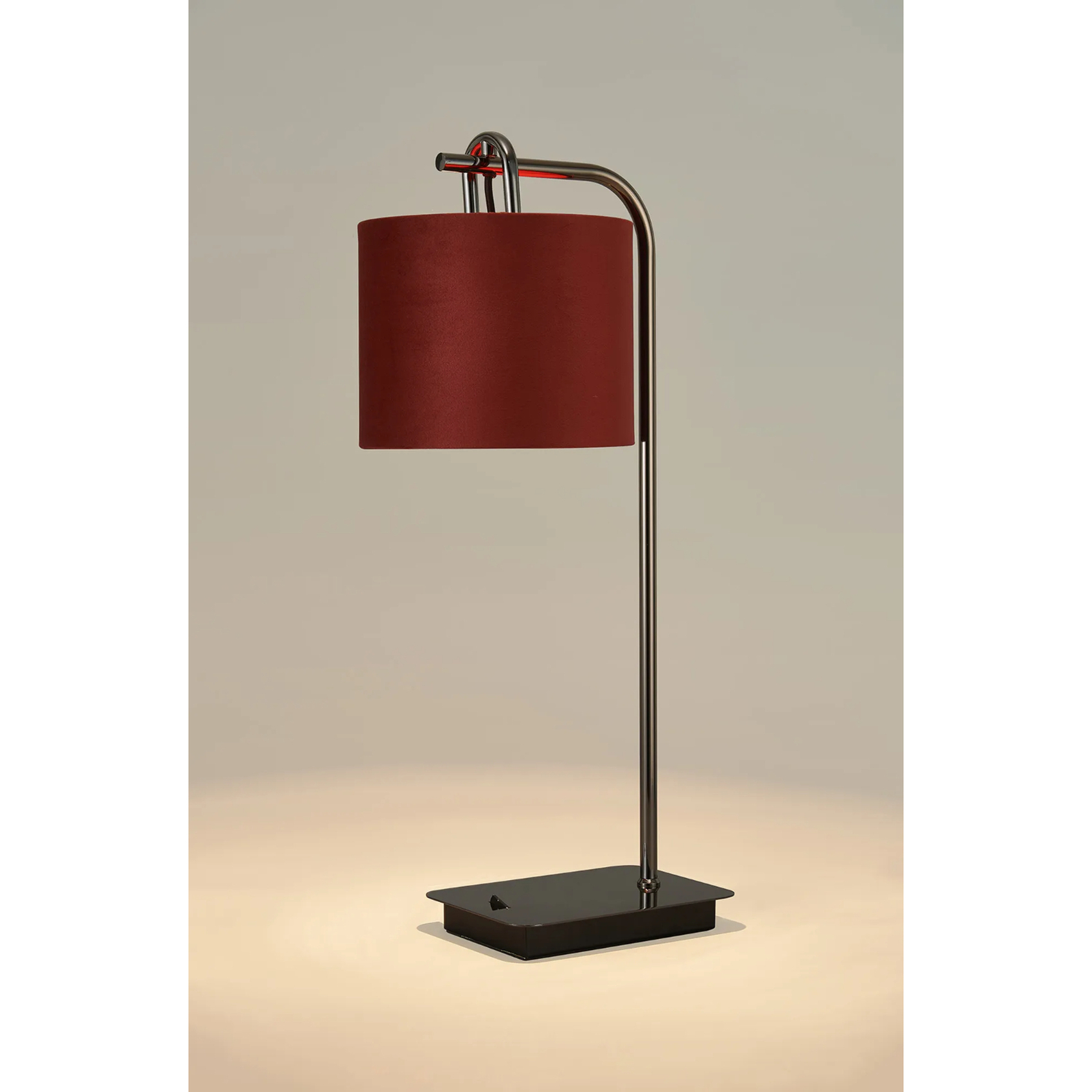 Idolite Camille Table Lamp, 1 Light E27, Black Chrome/Matt Black/Oxblood 20x16.5cm Velvet Shade | IDOK2083