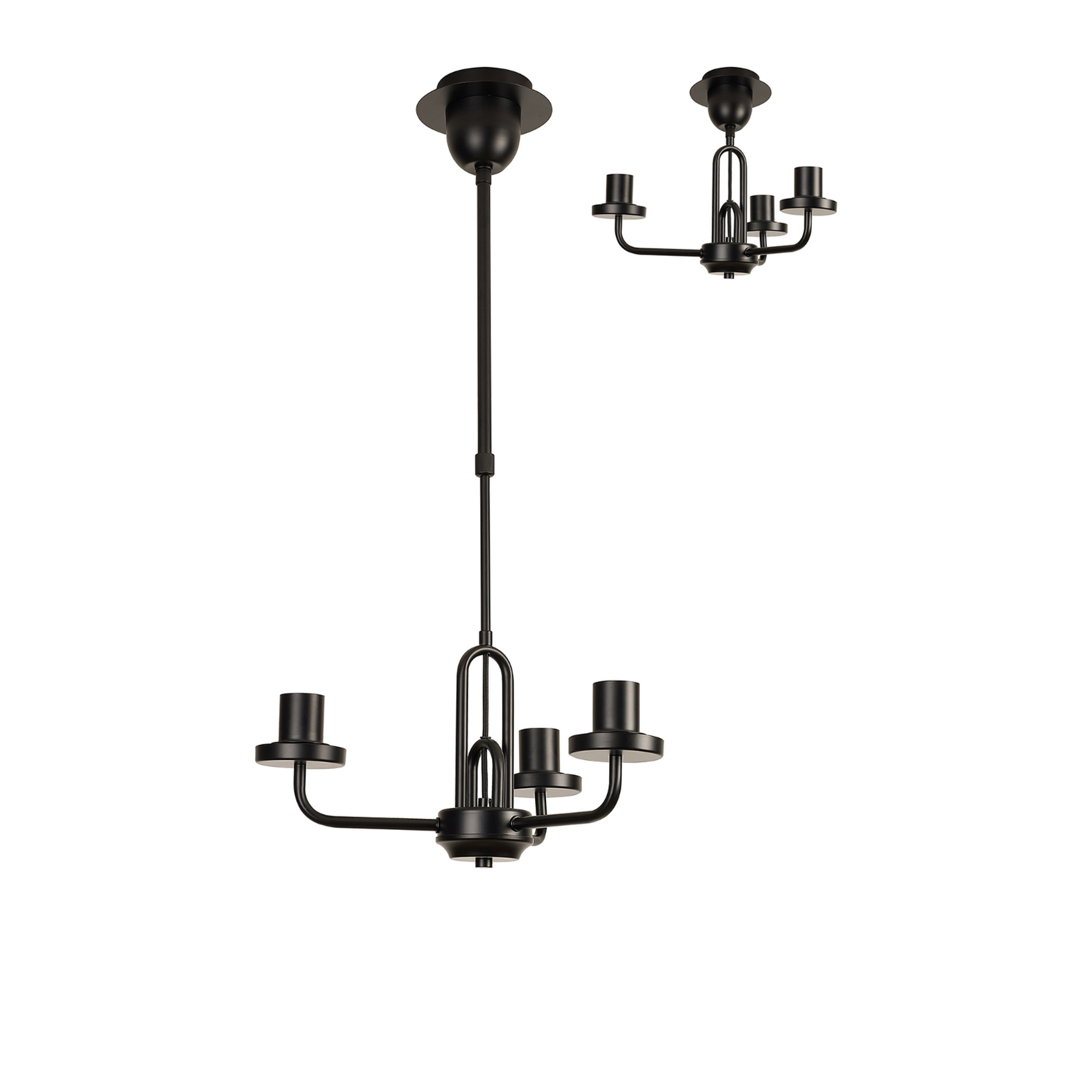 Idolite Camille Telescopic Pendant/Semi Flush Light, 3 x E27, Matt Black | IDOKBM9759