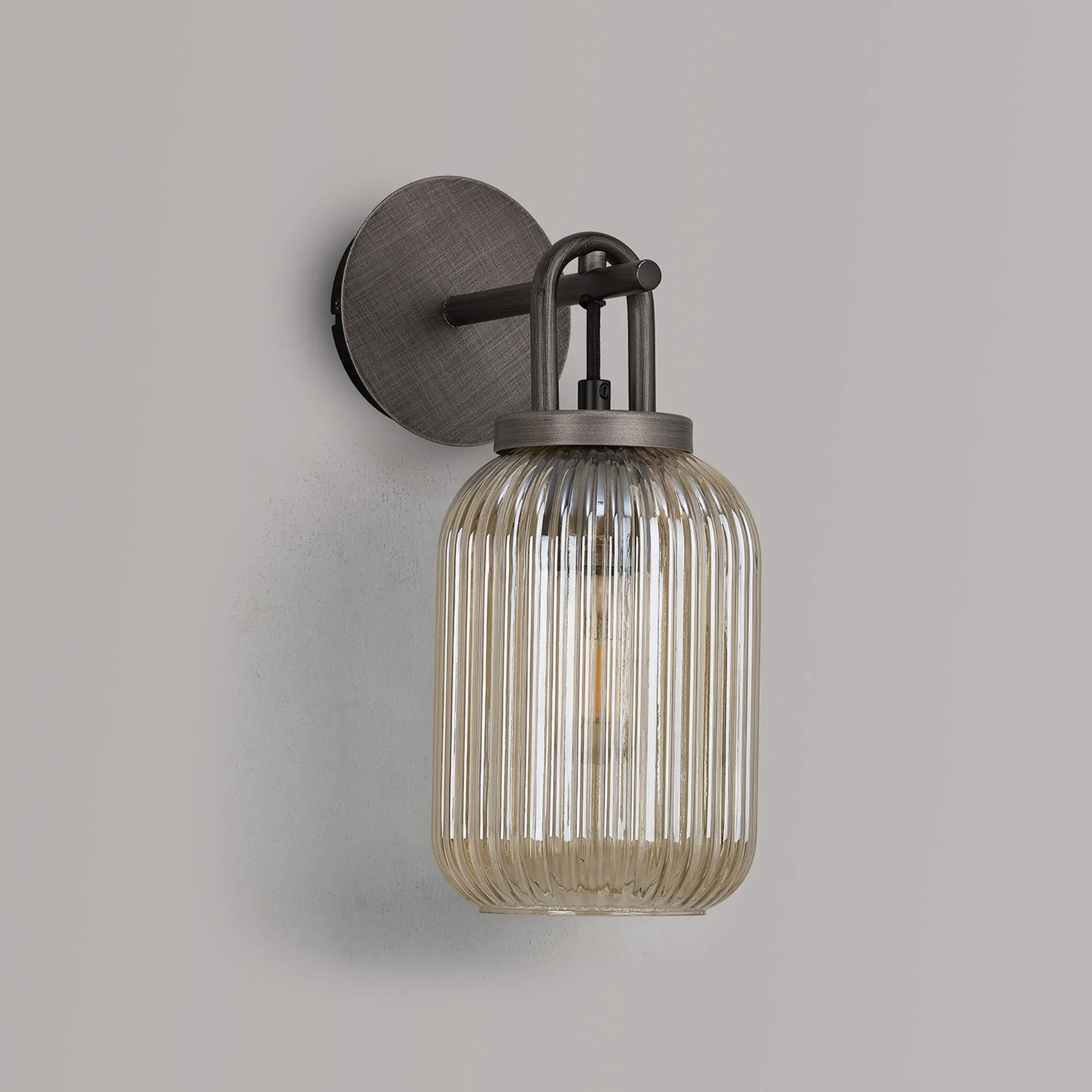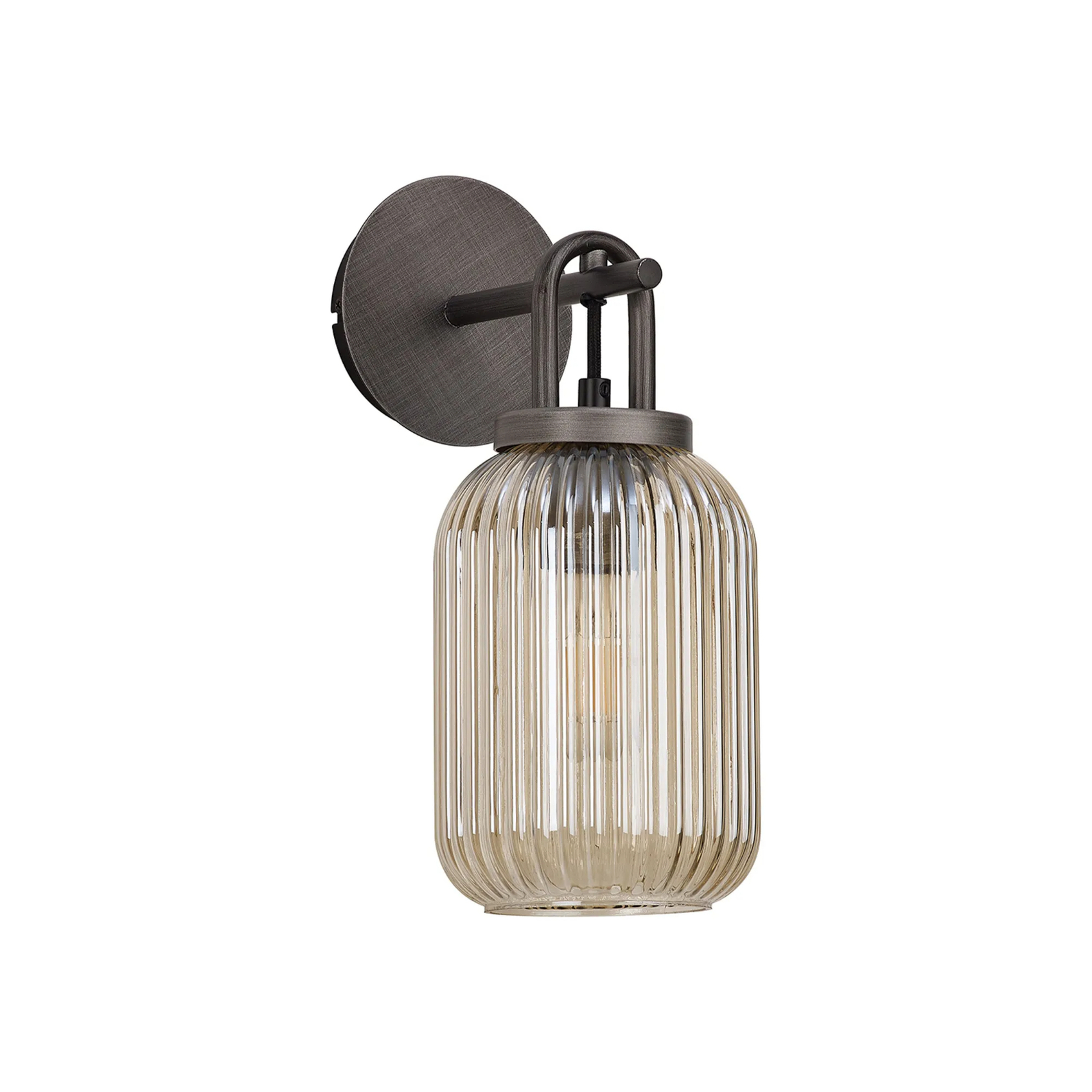 Idolite Camille Wall Light Switched, 1 x E27, Aged Pewter With 14cm Tubular Ribbed Glass, Champagne | IDOK3522