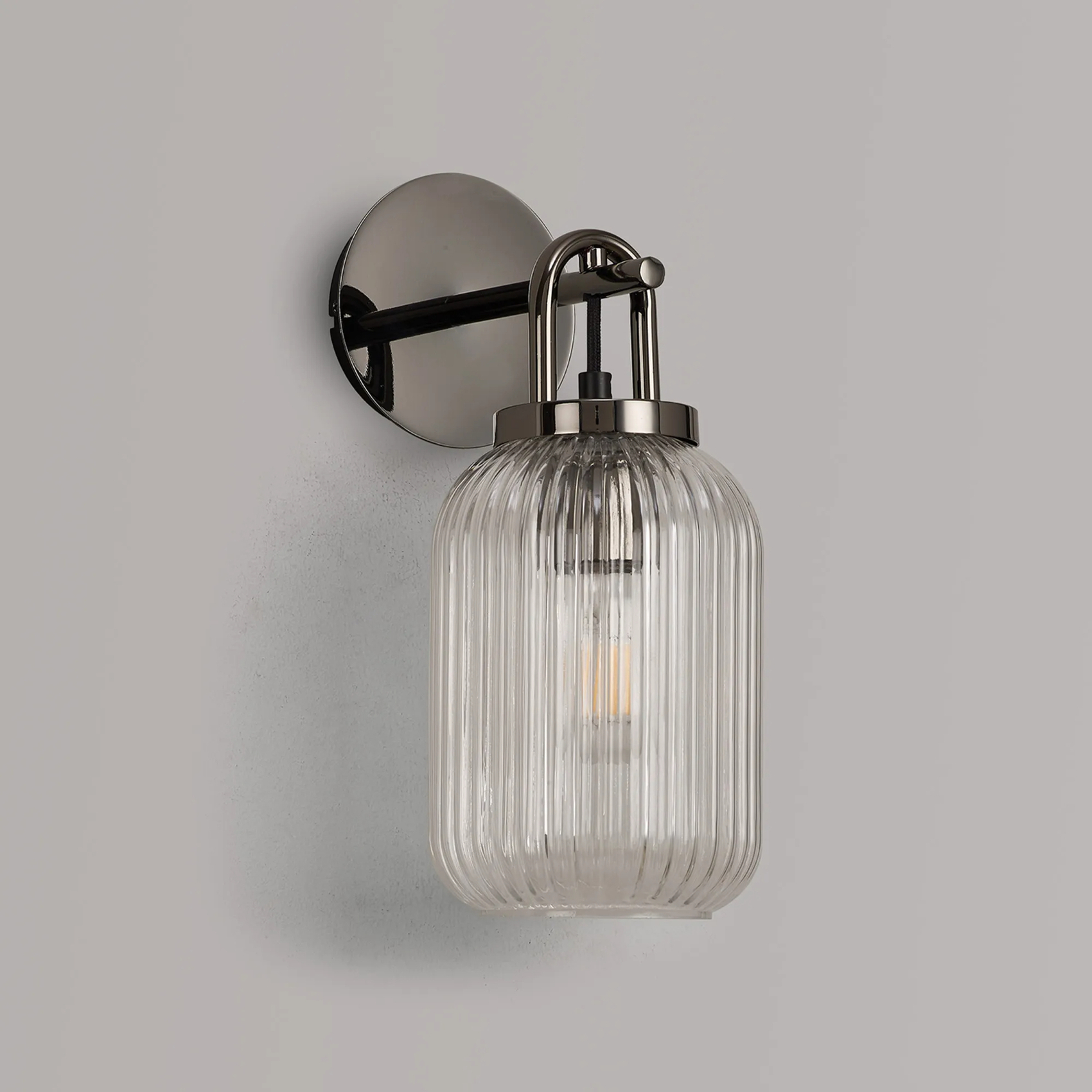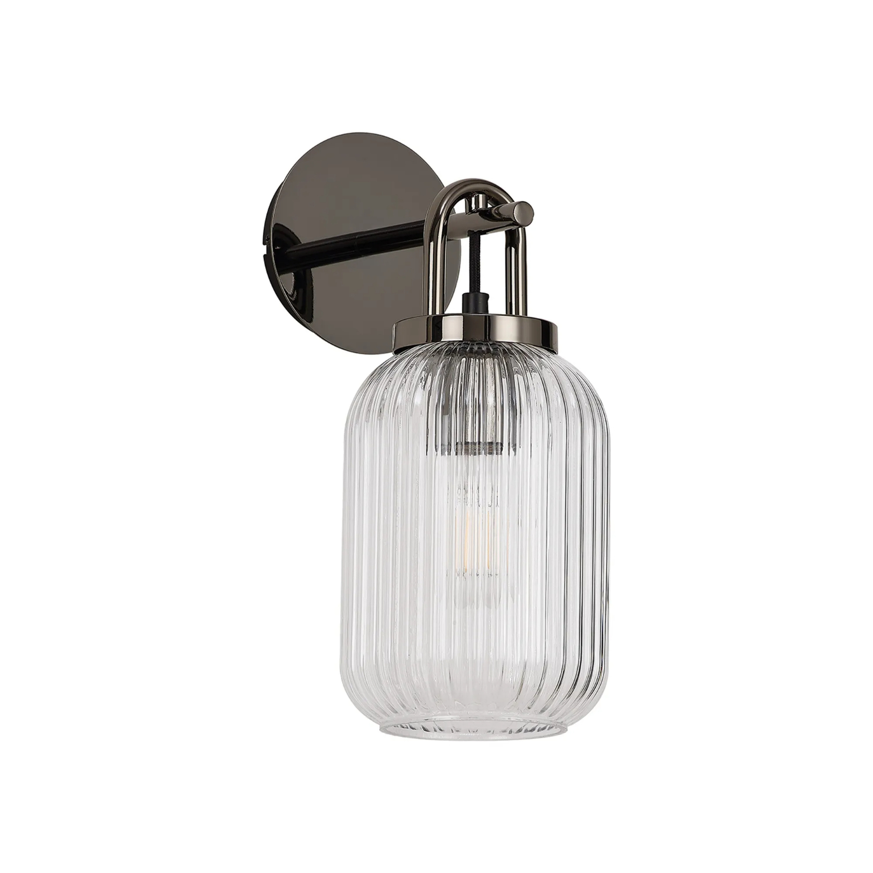 Idolite Camille Wall Light Switched, 1 x E27, Black Chrome With 14cm Tubular Ribbed Glass, Clear | IDOK4622