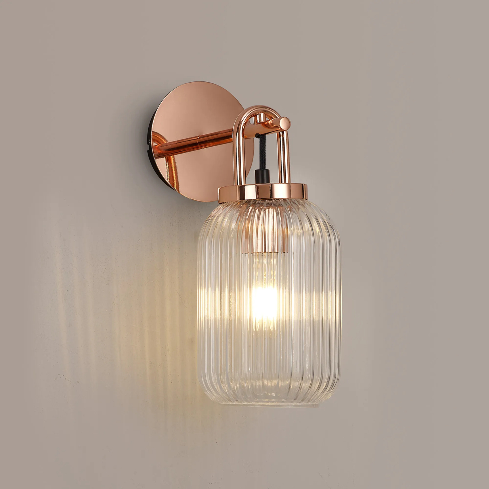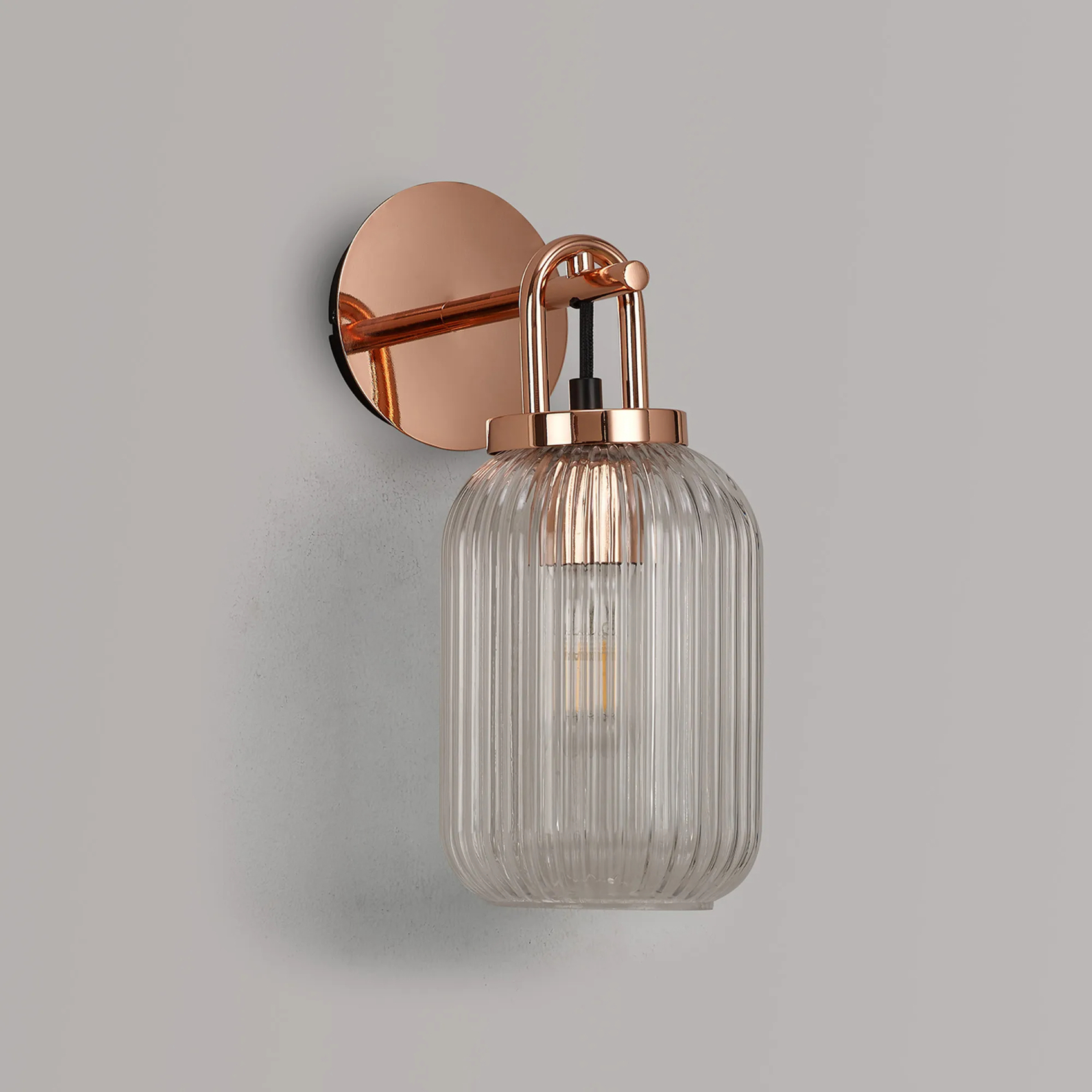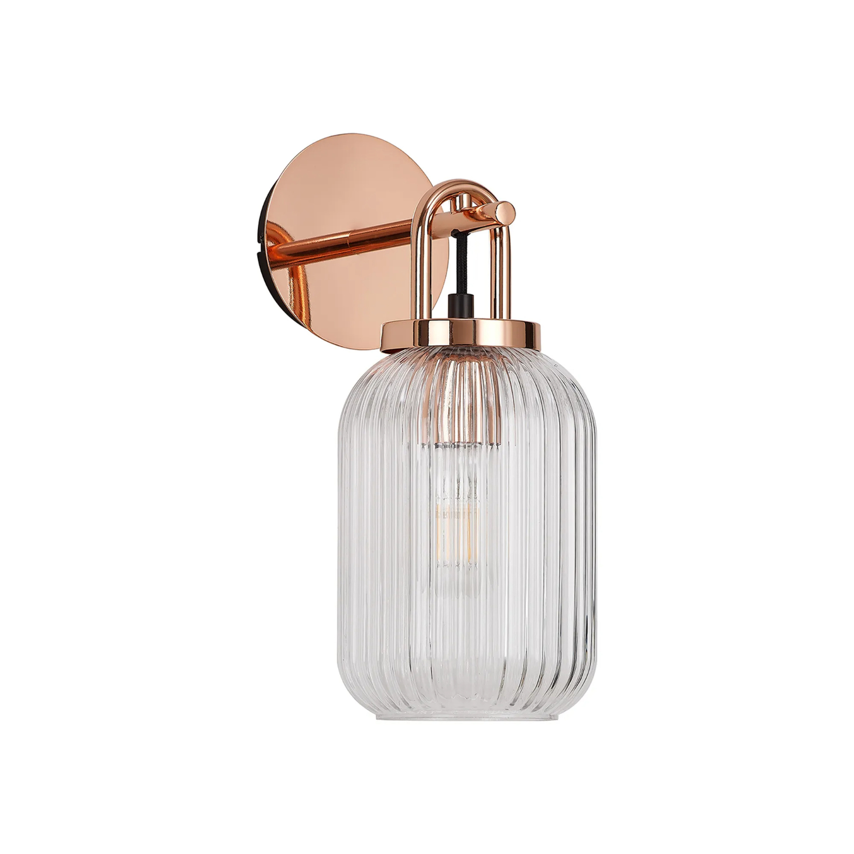 Idolite Camille Wall Light Switched, 1 x E27, Copper With 14cm Tubular Ribbed Glass, Clear | IDOK0722