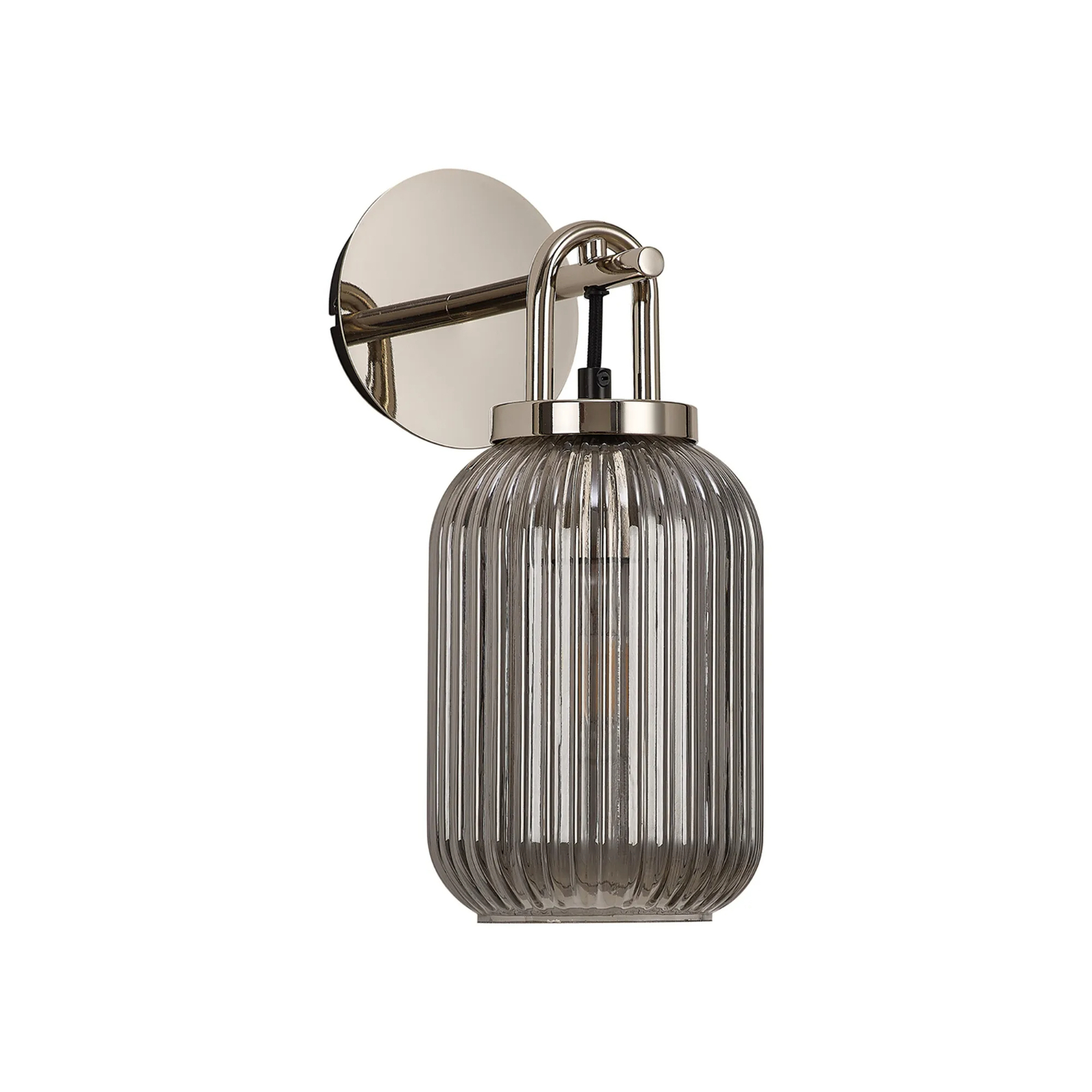 Idolite Camille Wall Light Switched, 1 x E27, Polished Nickel With 14cm Tubular Ribbed Glass, Smoked | IDOK8722