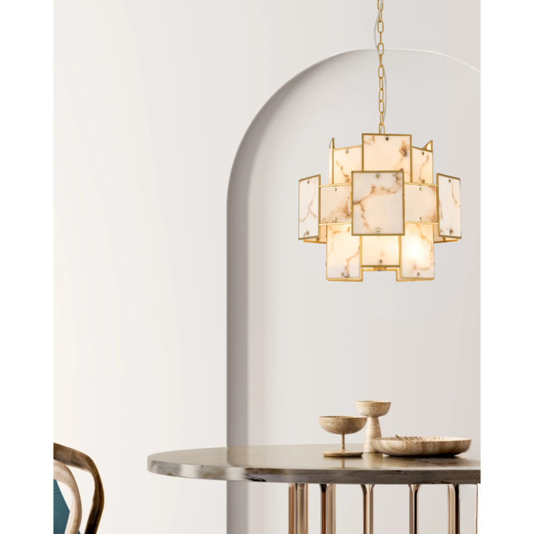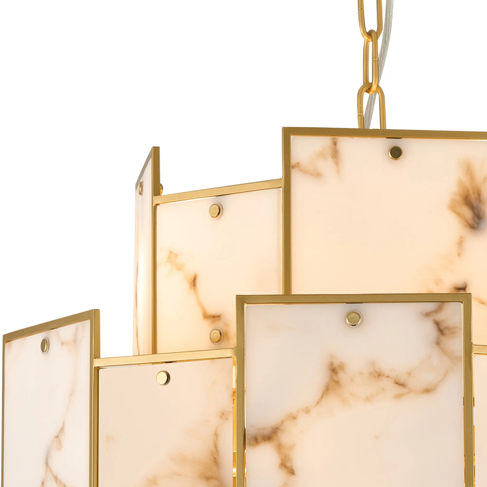 Idolite Natron 45cm Round Pendant/Semi Flush Faux Alabaster: 7 x E14: 1m Chain: Gold/Brown | IDONB/OG0495