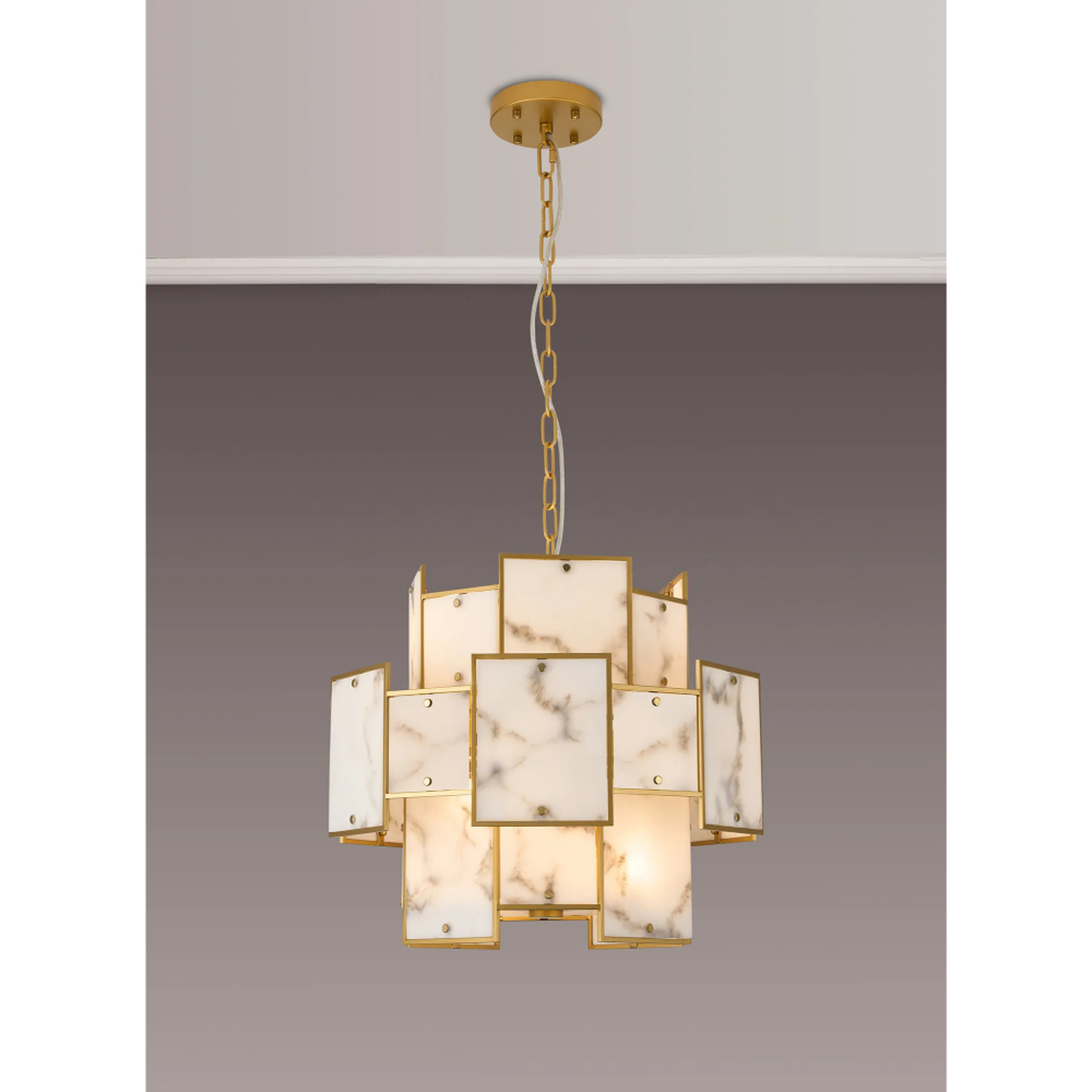 Idolite Natron 45cm Round Pendant/Semi Flush Faux Alabaster: 7 x E14: 1m Chain: Gold/Grey | IDOYG/OG0495