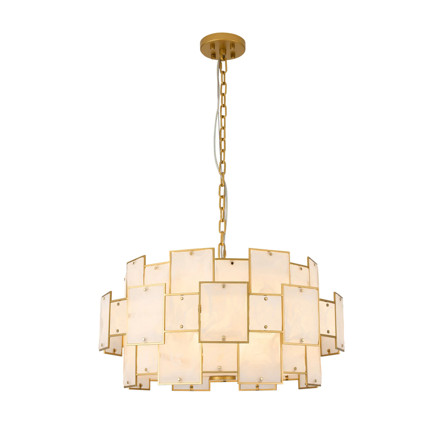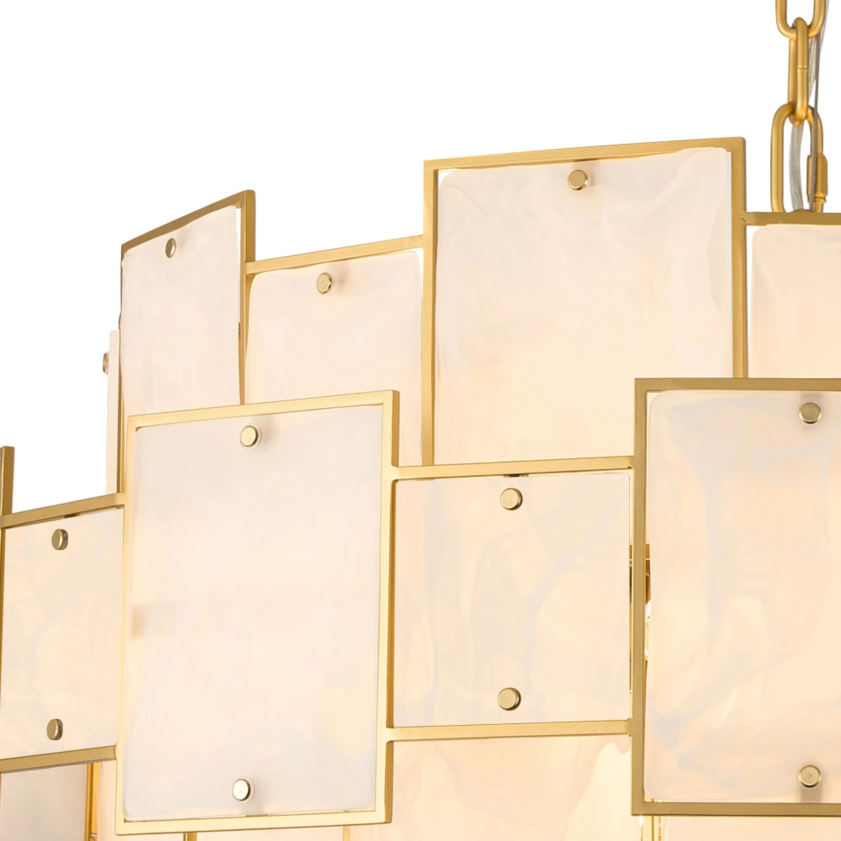Idolite Natron 74cm Round Pendant/Semi Flush White Glass Alabaster: 17 x E14: 2m Chain: Gold/White Frosted | IDORF/OG4495