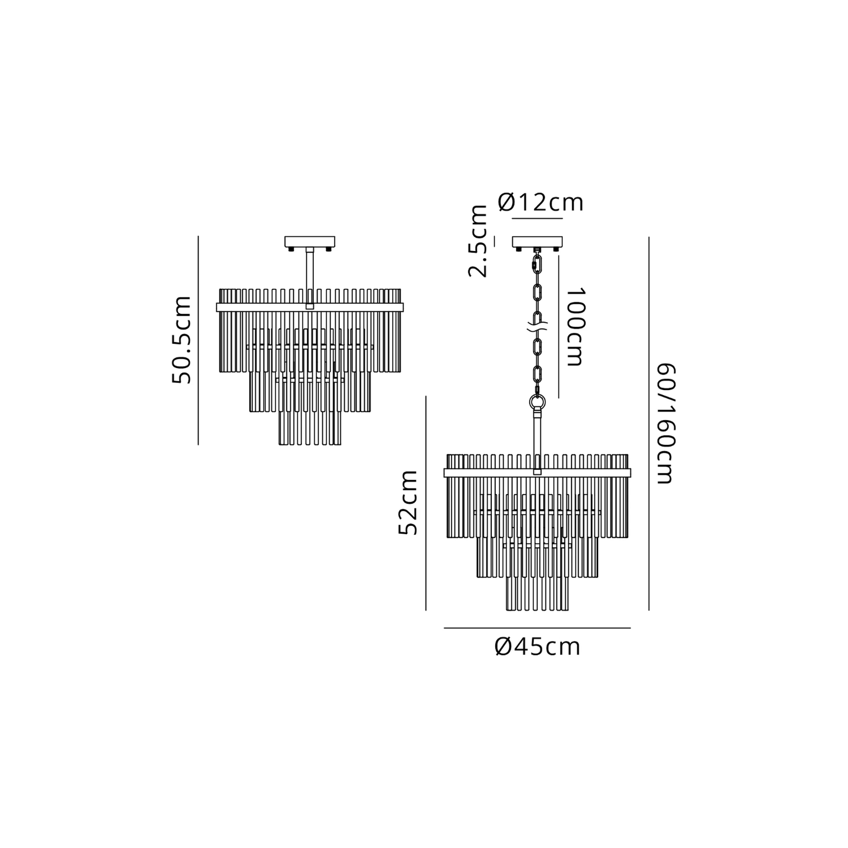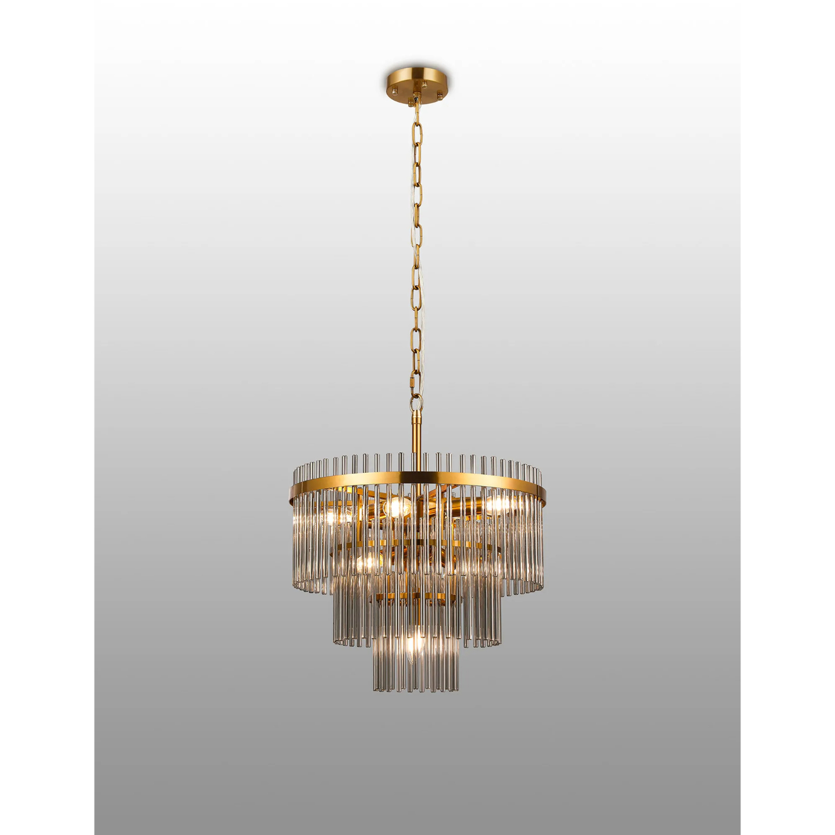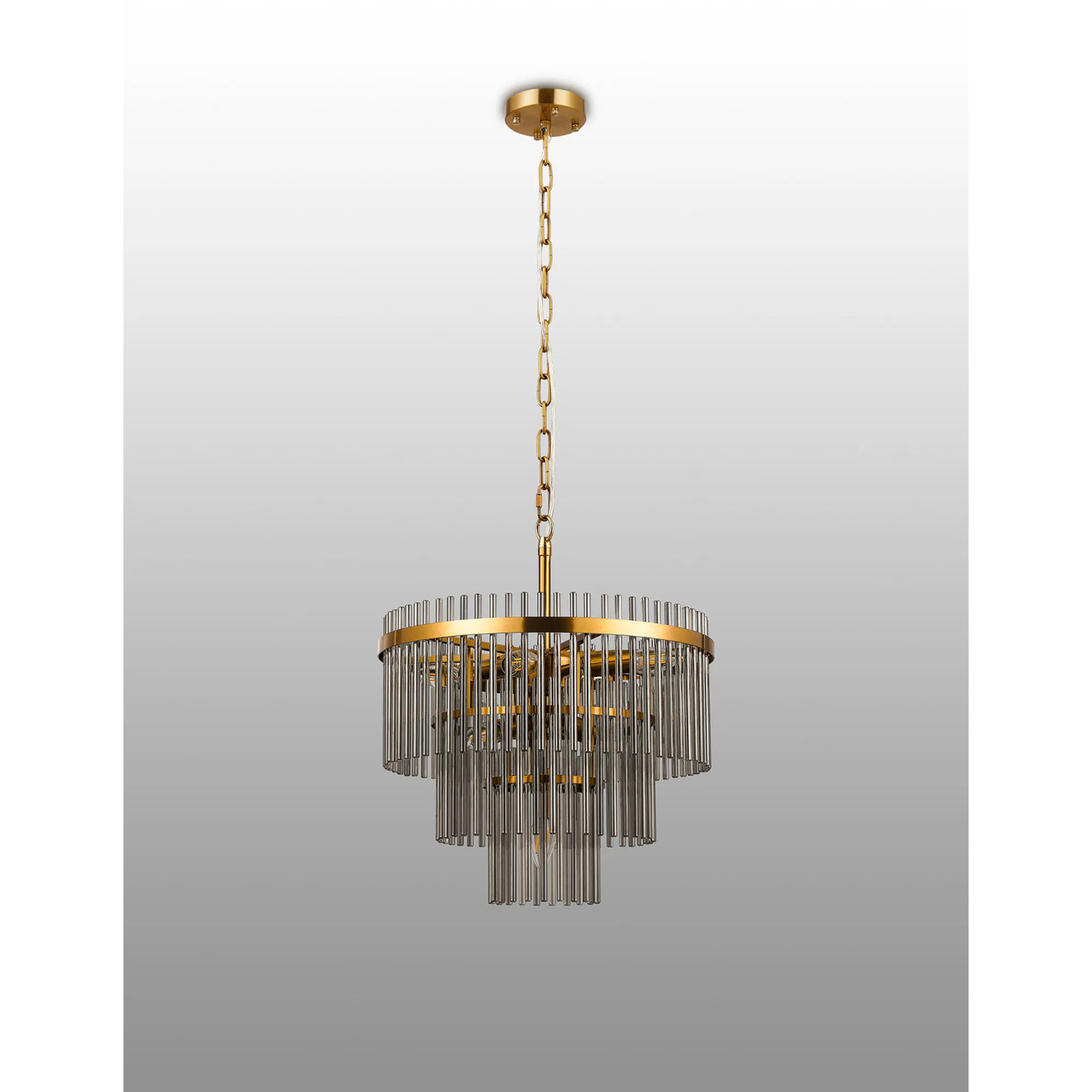 Idolite Ronan 45cm Pendant/Semi Ceiling 7 Light E14, Brass/Smoke Glass Rods | IDOMS/RB6235
