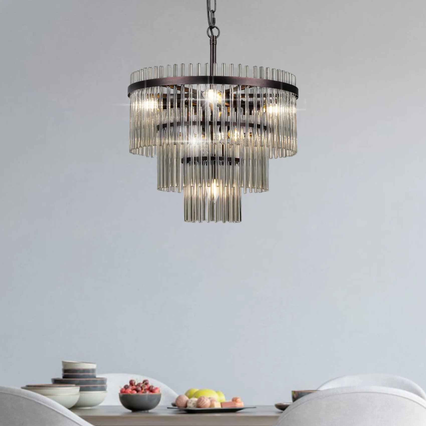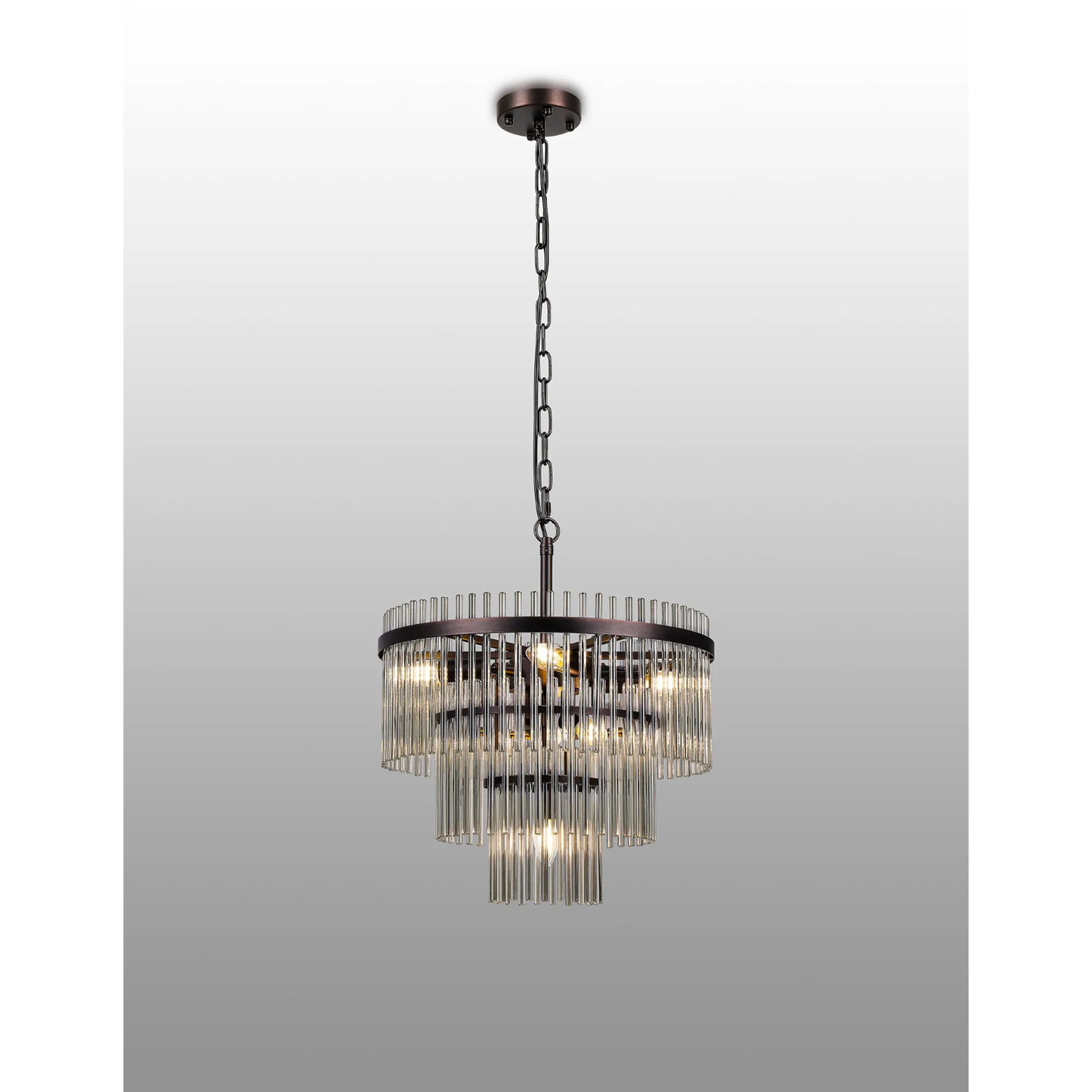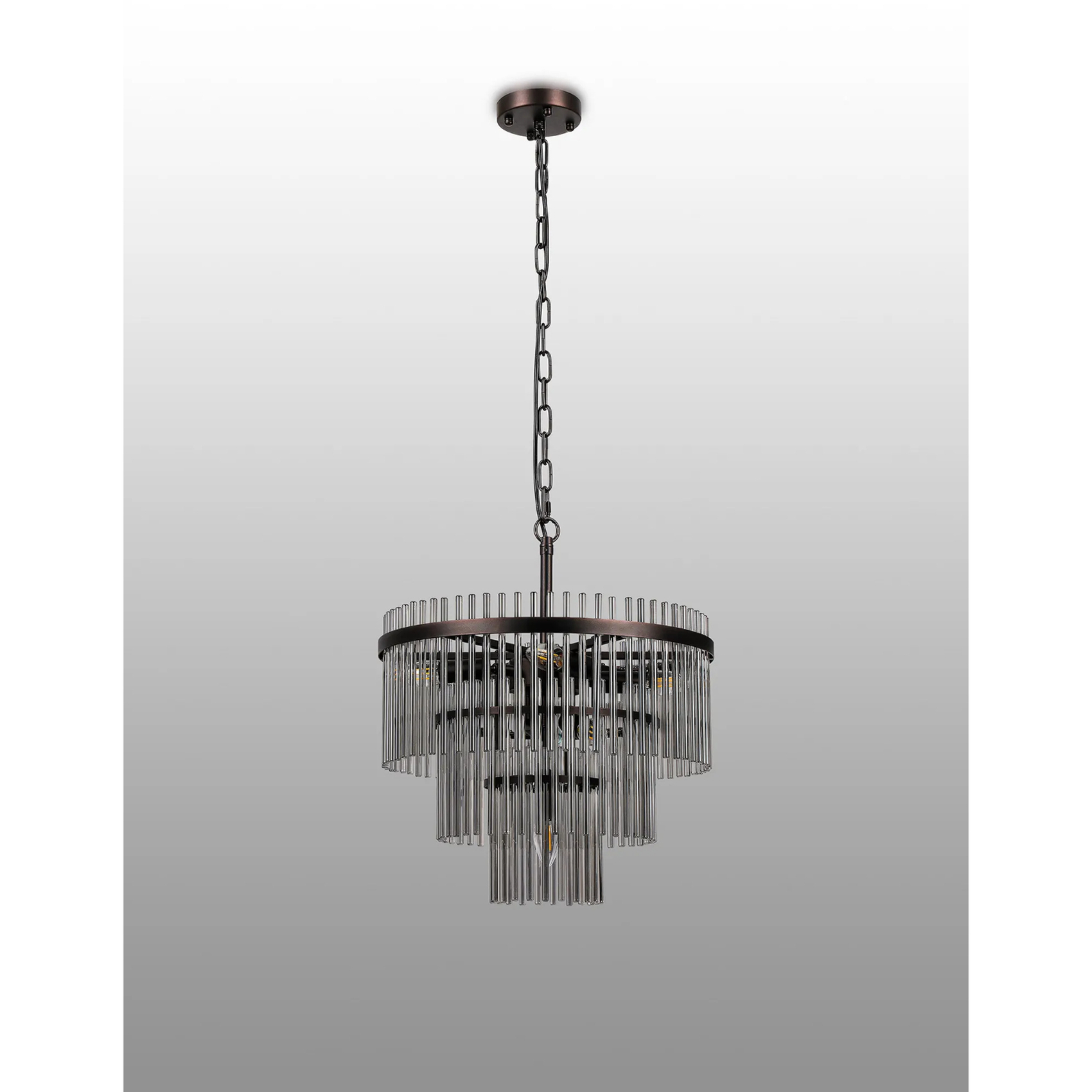 Idolite Ronan 45cm Pendant/Semi Ceiling 7 Light E14, Brown Oxide/Smoke Glass Rods | IDOMS/OB6235