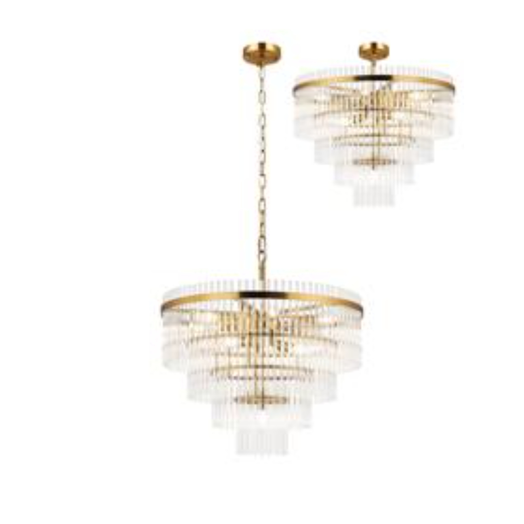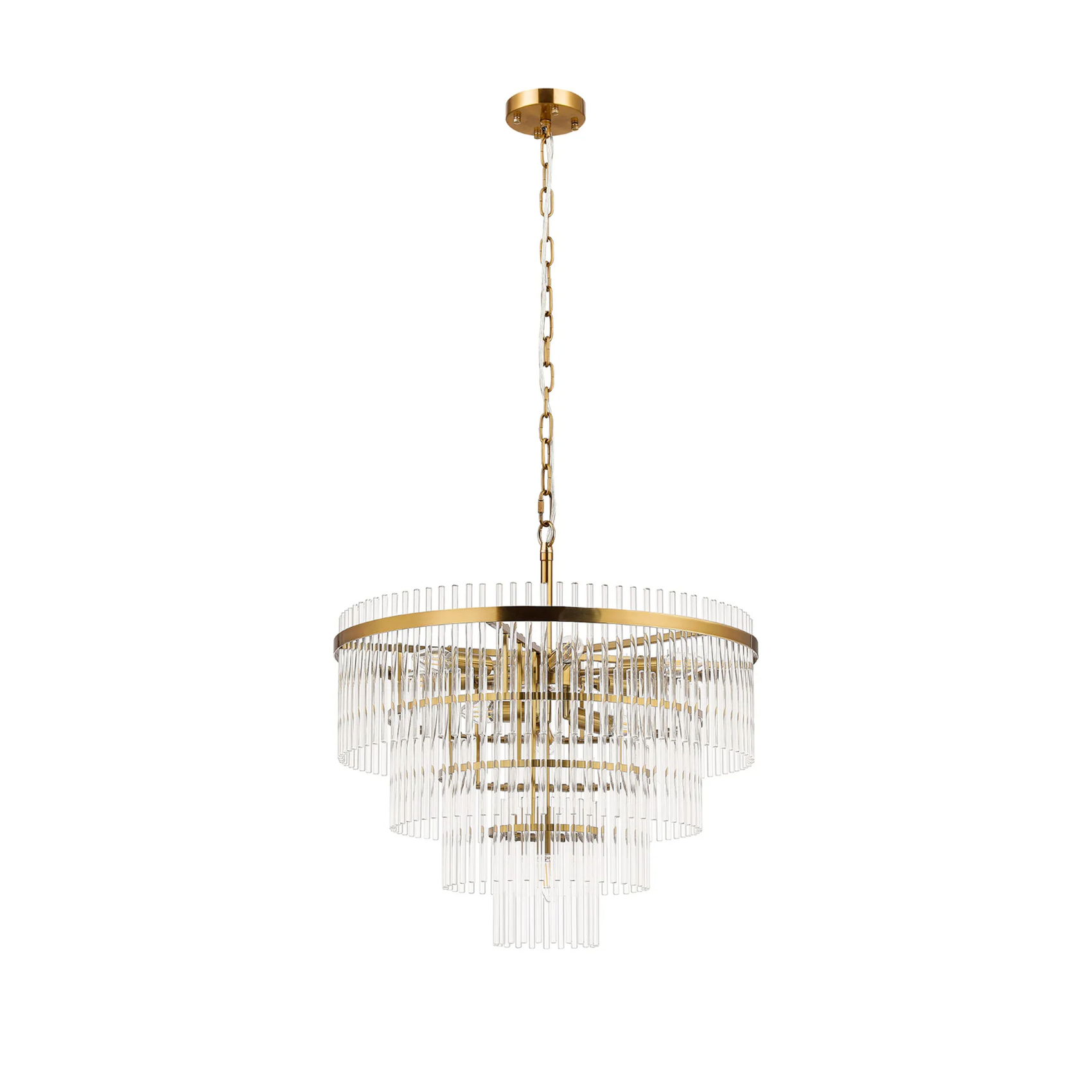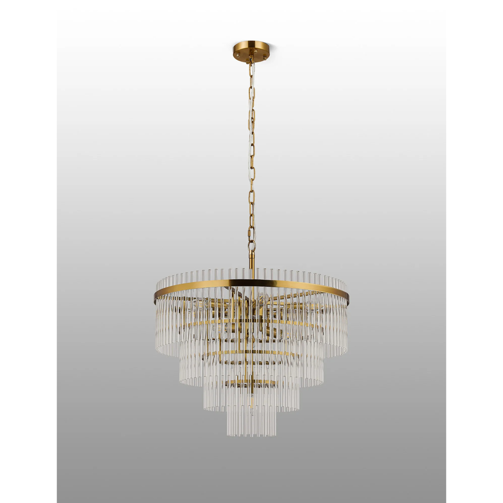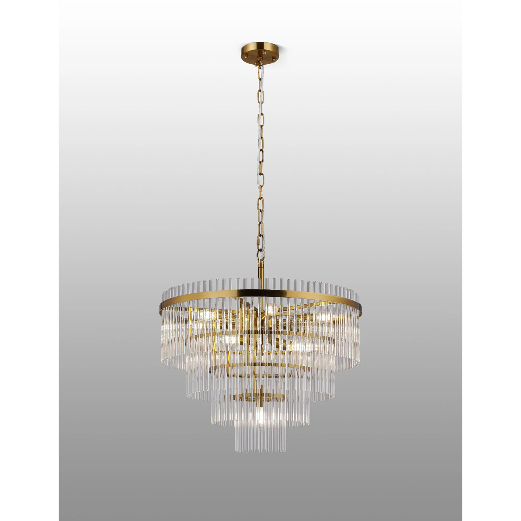 Idolite Ronan 60cm Pendant/Semi Ceiling 10 Light E14, Brass/Clear Glass Rods | IDOLC/RB8235