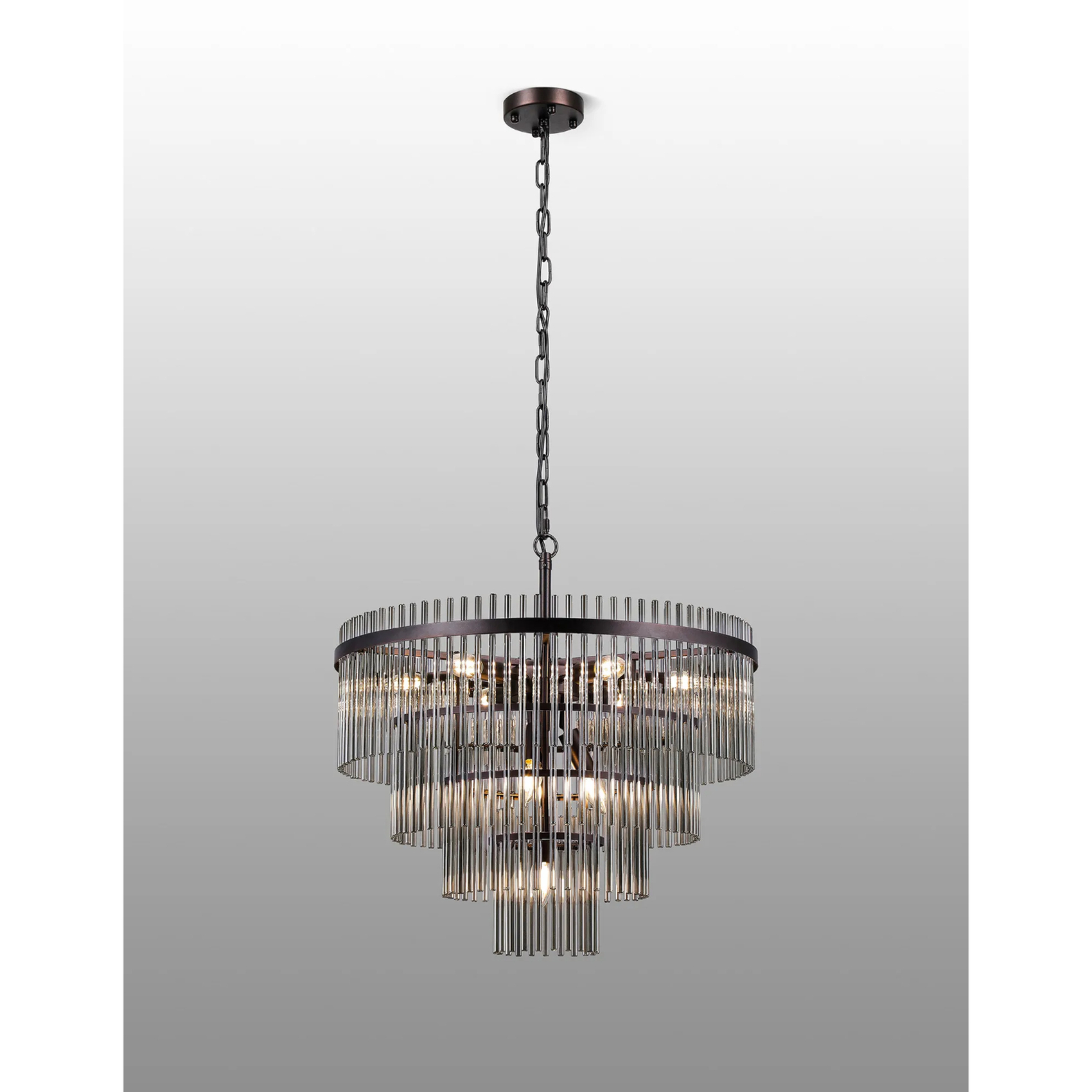 Idolite Ronan 60cm Pendant/Semi Ceiling 10 Light E14, Brown Oxide/Smoke Glass Rods | IDOMS/OB8235