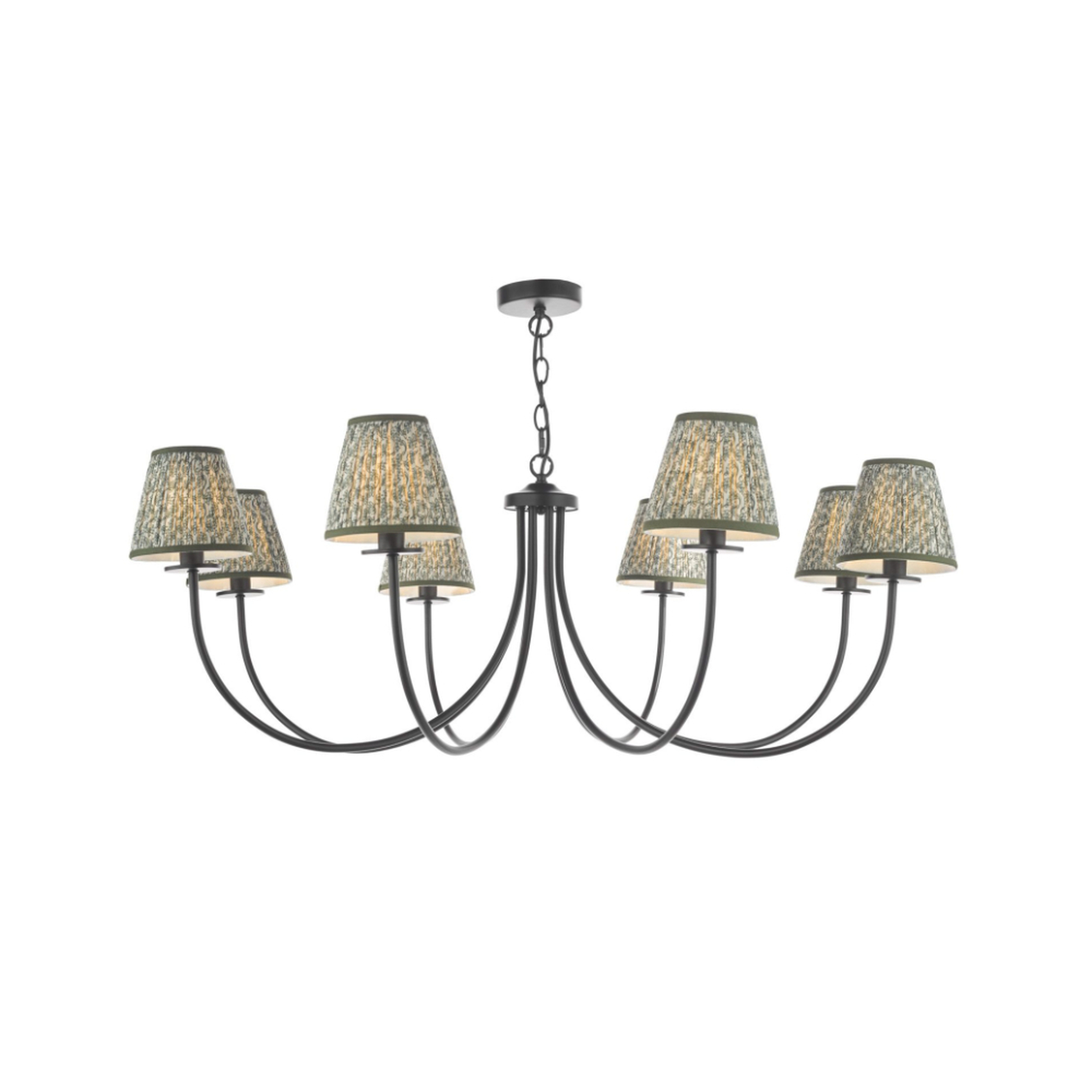 Dar Becca 8 Light Multi-Arm Chandelier Complete With Green Patterned Shades | BEC0822-EST2624