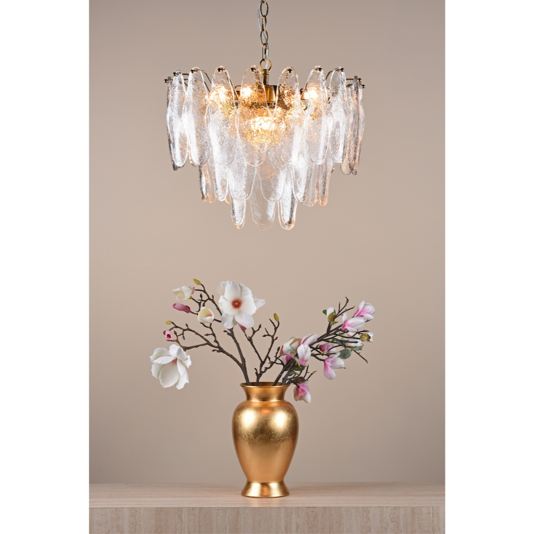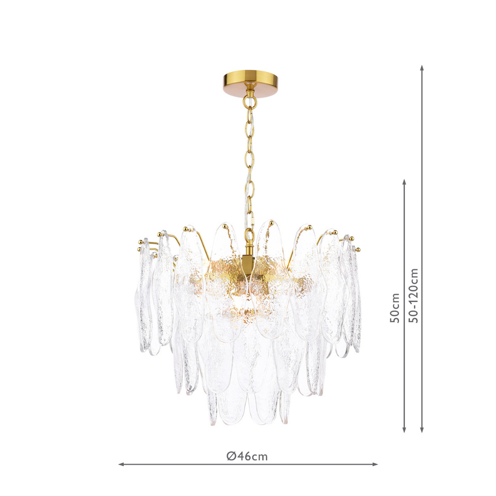 Dar Kimmia Natural Brass 6 Light Pendant Complete With Textured Glass Drops | KIM0642