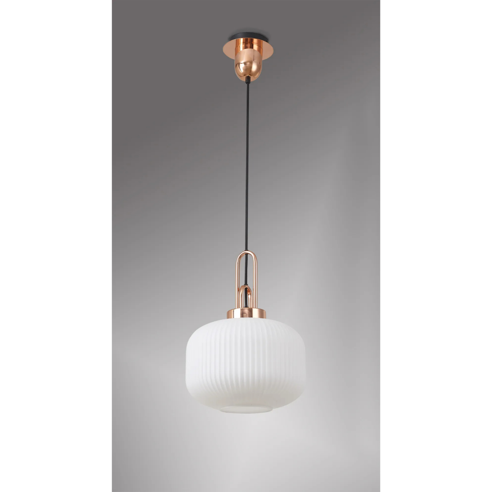 Idolite Camille Copper Single Pendant Light With Opal Ribbed Glass | IDOK6250