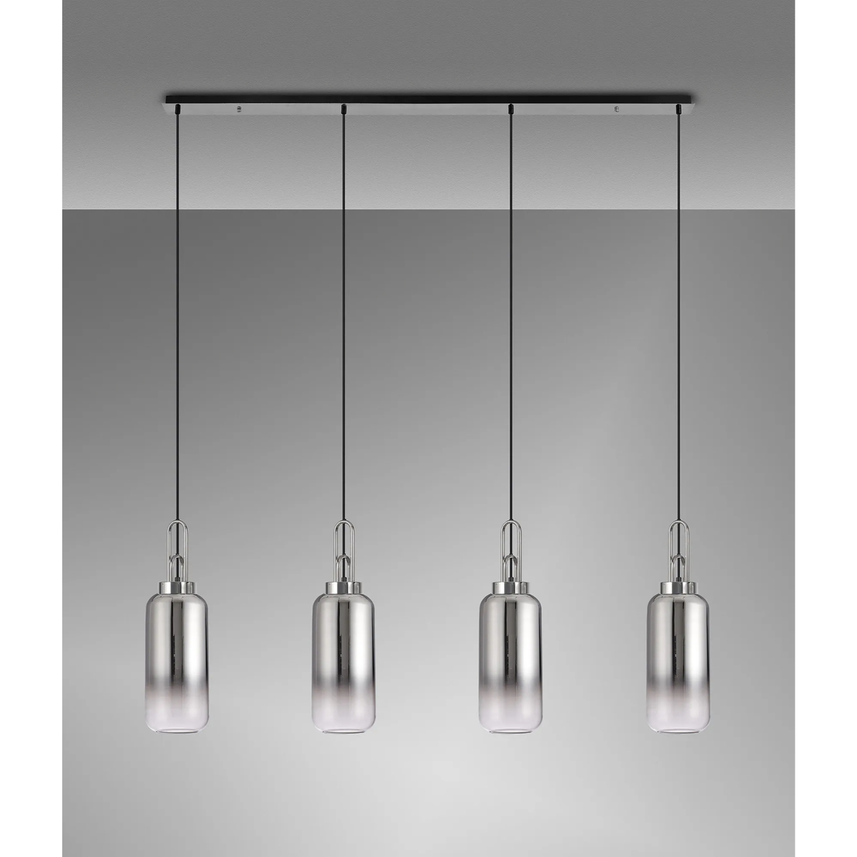 Idolite Camille Polished Nickel 4 Light Linear Bar Pendant With Smoked/Clear Ombre Glasses | IDOK6260