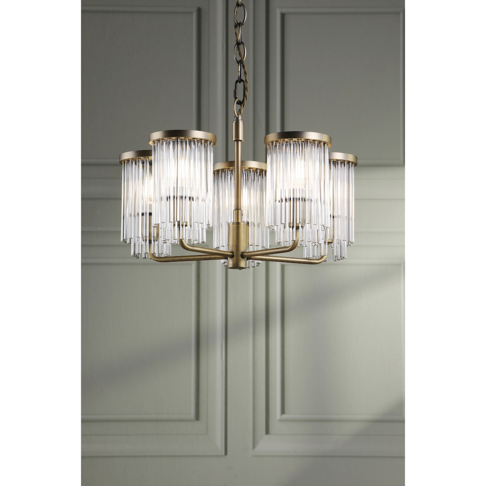 Laura Ashley Hilcote Matt Antique Brass 5 Light Multi-Arm Ceiling Light Complete With Clear Glass Decoration | LA3756650-Q