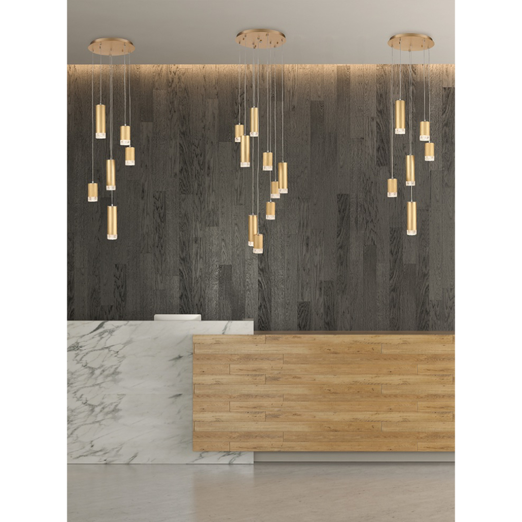 Franklite Cordelia Satin Brushed Gold 6 Light Cluster Pendant Light Complete With Clear Textured Glasses | FL2415-6