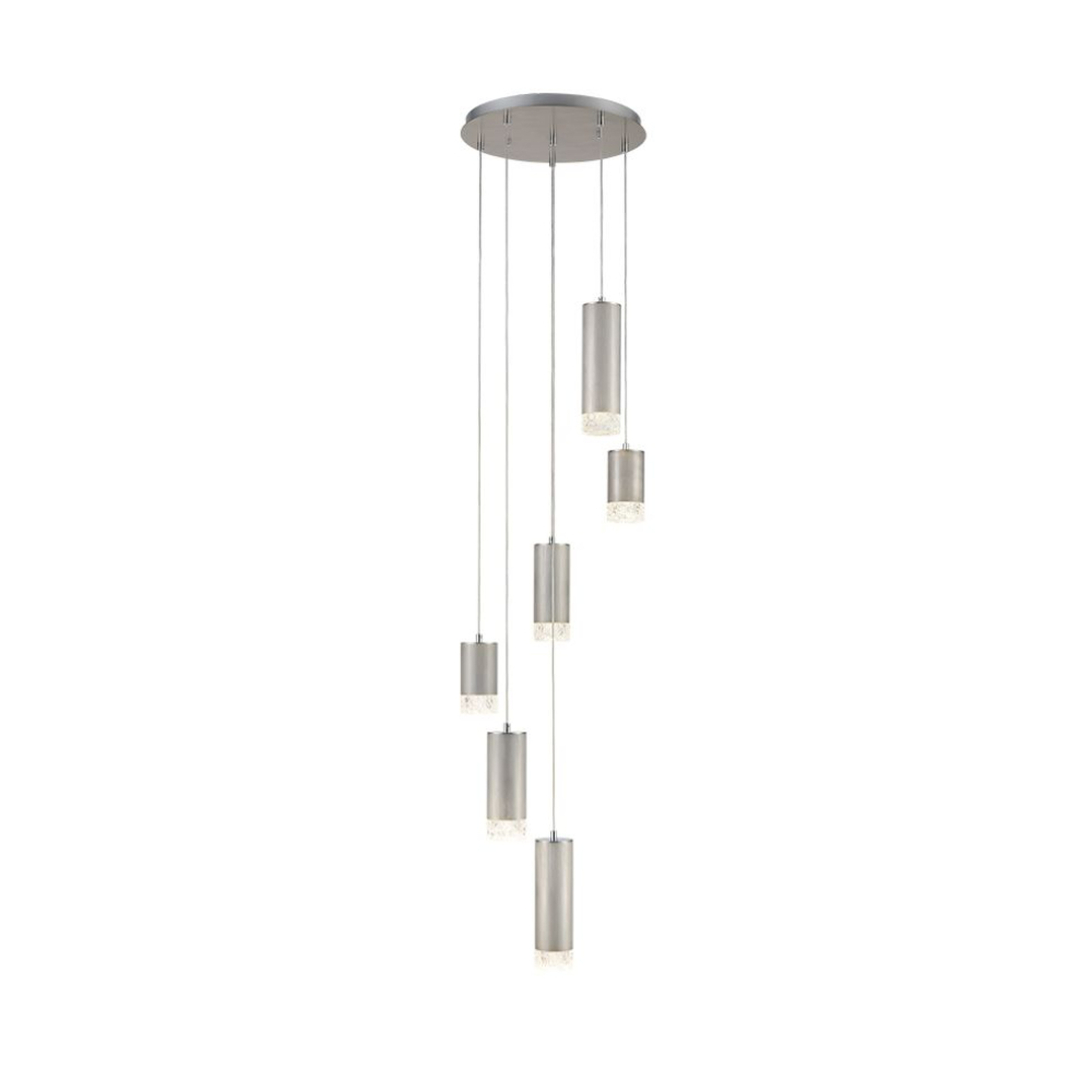 Franklite Cordelia Satin Brushed Silver 6 Light Cluster Pendant Light Complete With Clear Textured Glasses | FL2414-6