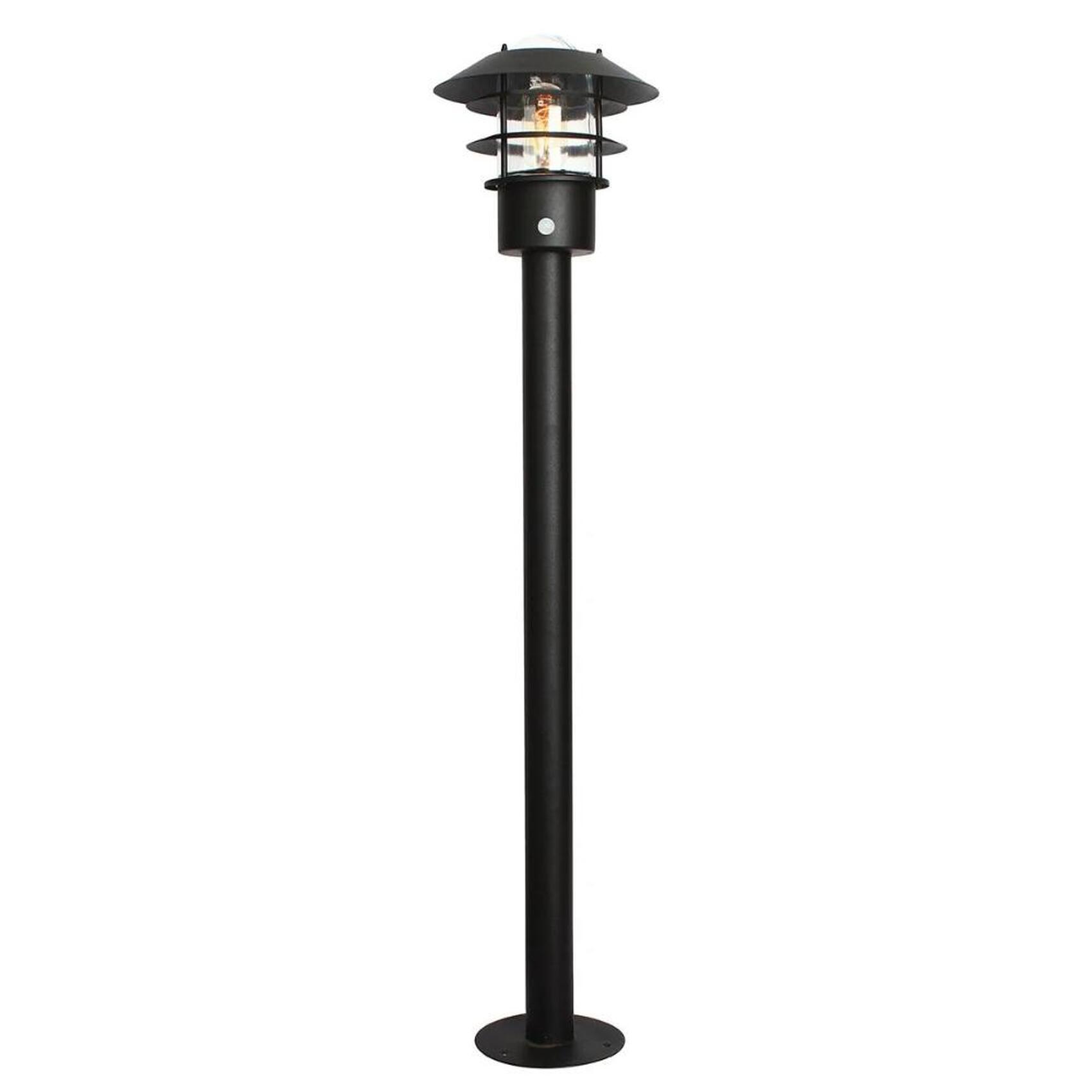 Elstead Helsingor Black Bollard Light With Pir Sensor And Clear Glass- IP44 - Coastal Suitable | HELSINGOR-PIR-BOL-BK