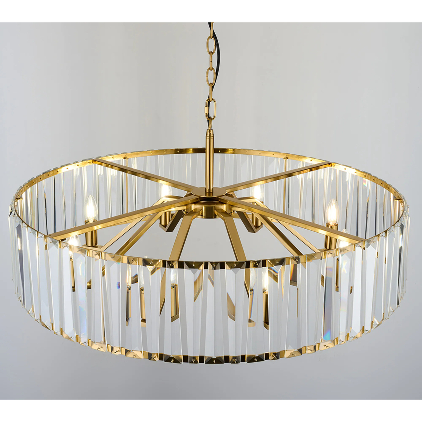 Idolite Windsor Brass Round 8 Light Crystal Pendant Light - 90cm | IDORB8906