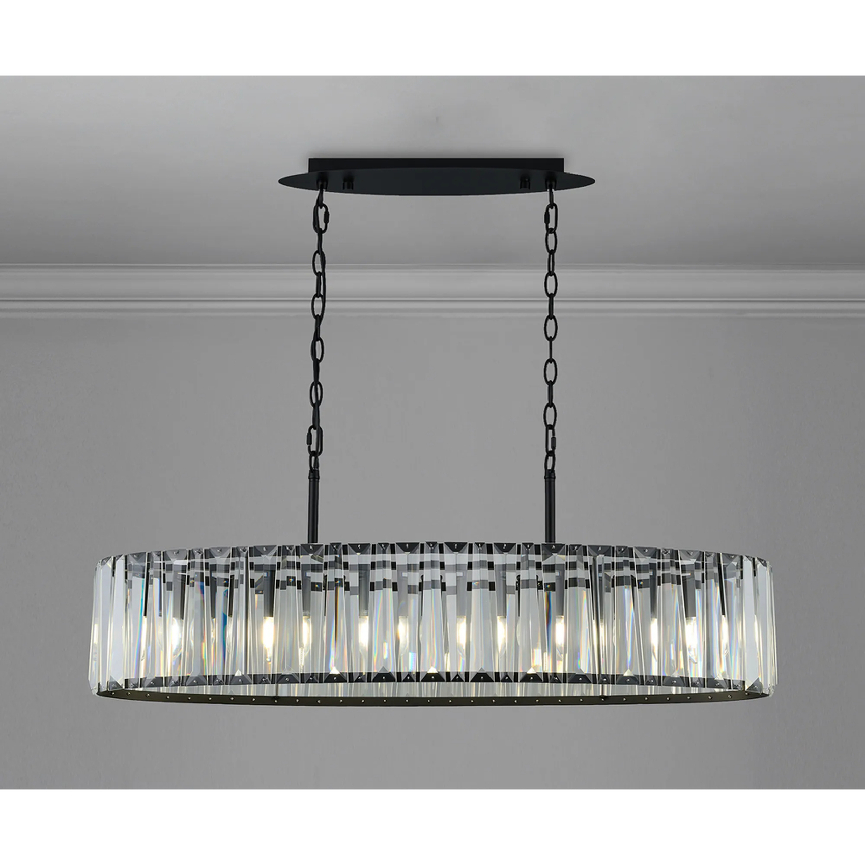 Idolite Windsor Satin Black Linear 7 Light Crystal Pendant Light - 90cm | IDOLB9906
