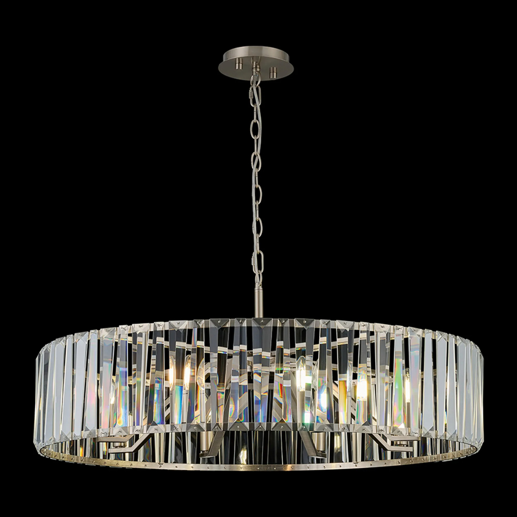 Idolite Windsor Satin Nickel Round 8 Light Crystal Pendant Light - 90cm | IDONS8906