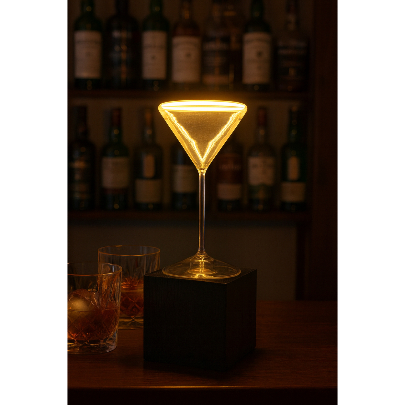 Elevate your space with this stylish Clear Cocktail Glass LED Table Lamp, designed to bring a warm, modern ambiance to any room. Featuring a sleek black base and a unique smoked wine-glass shade, this lamp adds a touch of sophistication while diffusing light beautifully. The included clear cocktail glass E27 LED bulb produces a soft, atmospheric glow, perfect for living rooms, bedrooms, bars, or dining areas.