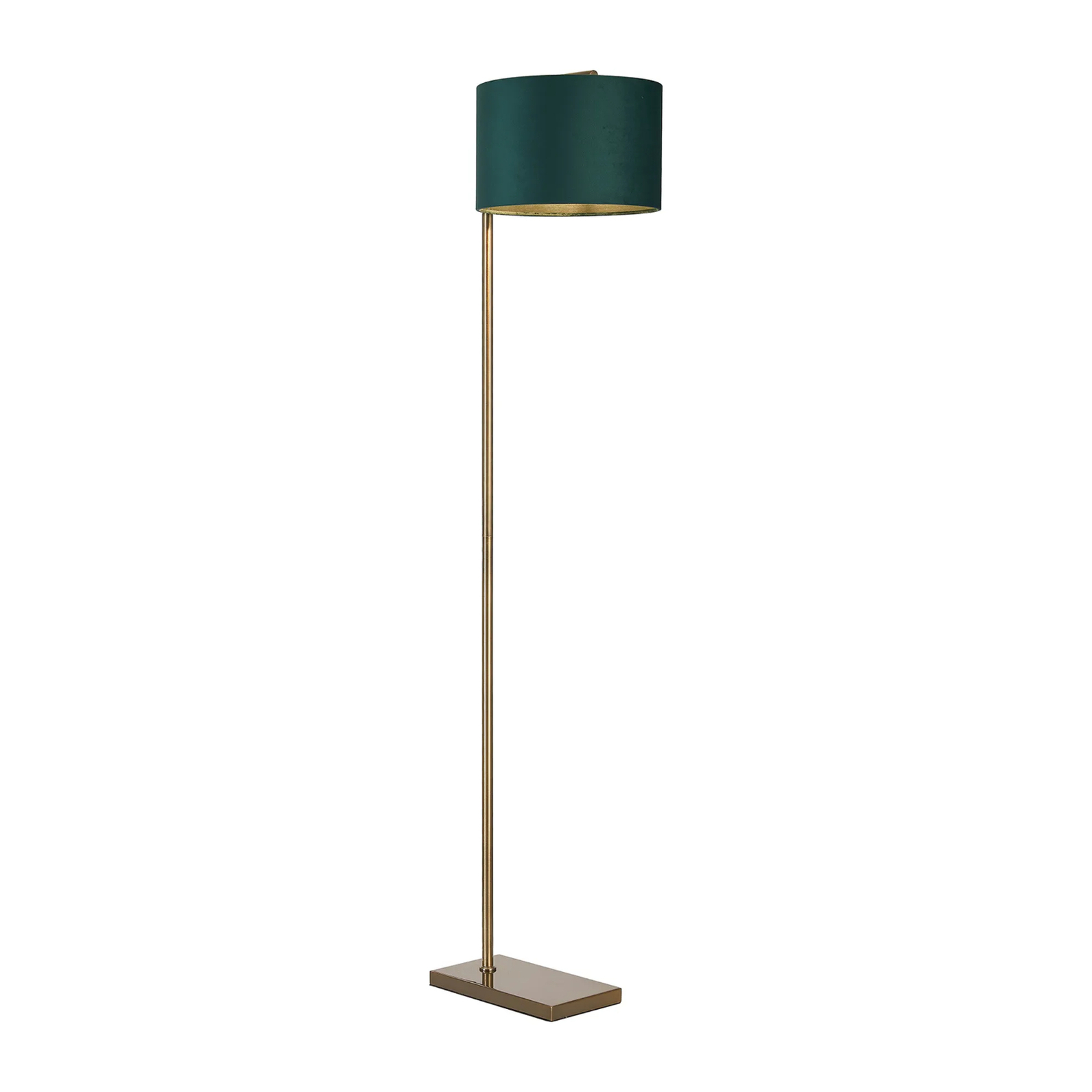Idolite Devine Floor Lamp, 1 Light E27, Antique Brass/Forest Green 30x20cm Velvet Shade | IDOK5393