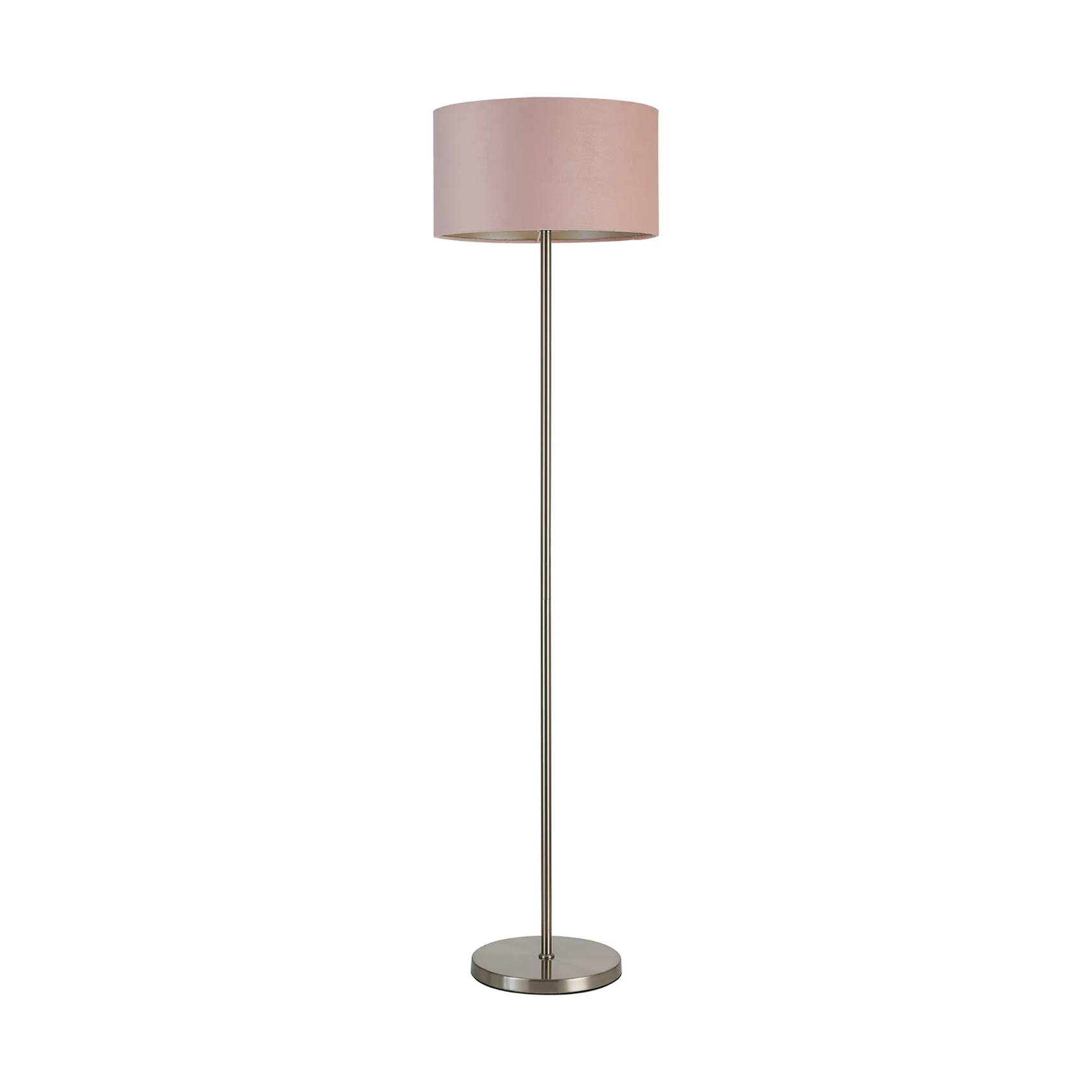 Idolite Devine Floor Lamp, 1 Light E27, Satin Nickel/Blush Pink/Prosecco 40x22cm Velvet Shade | IDOK6493